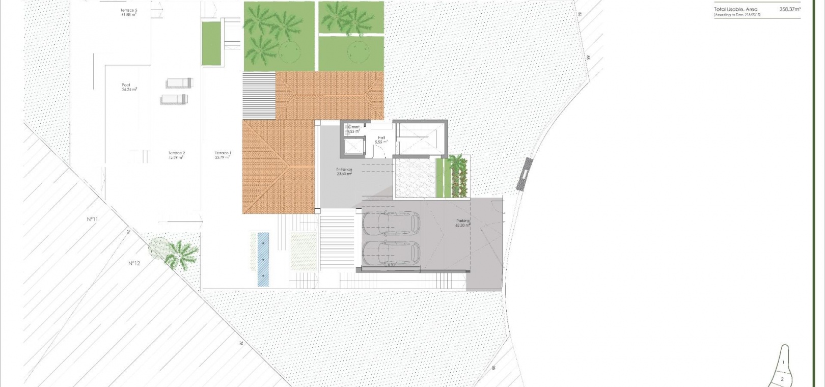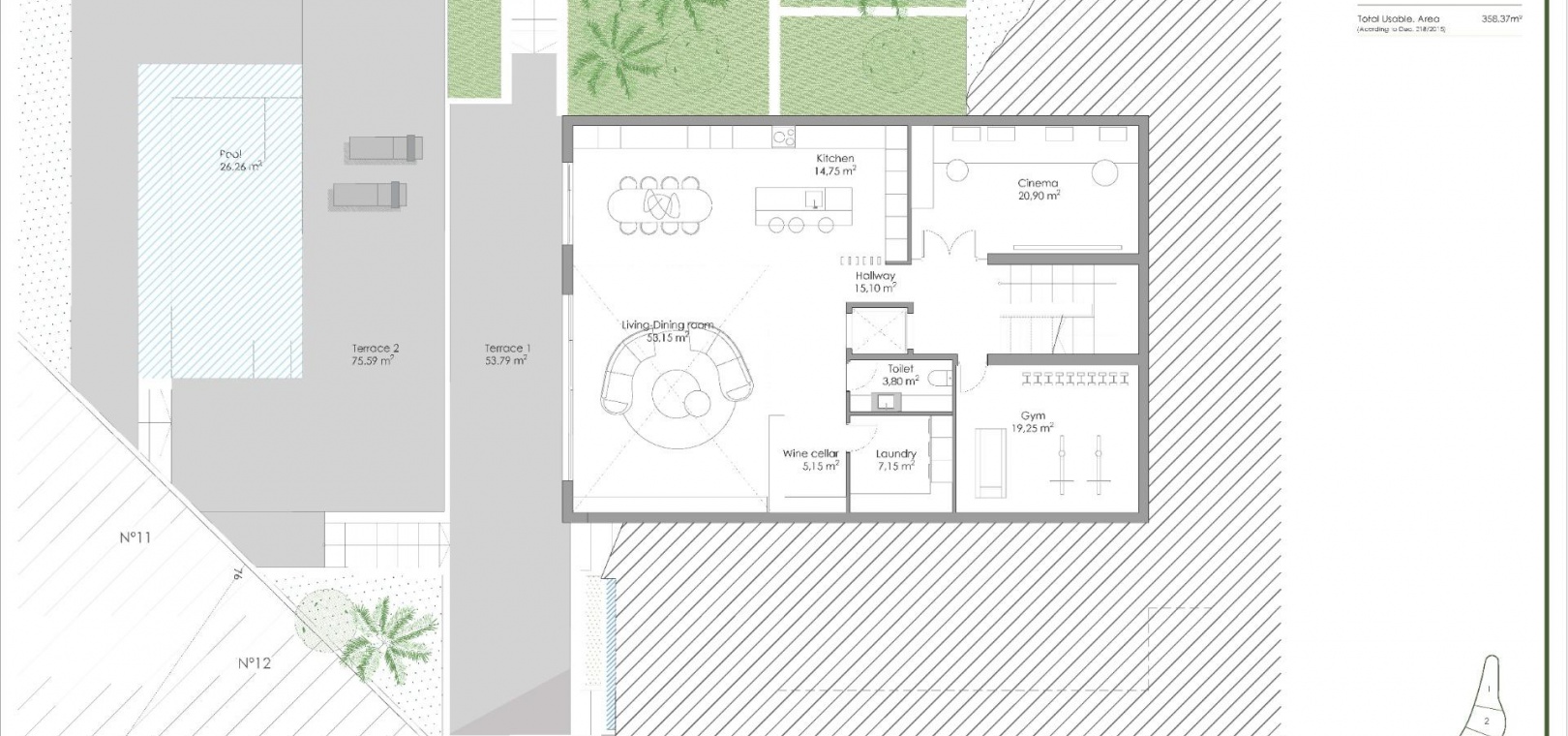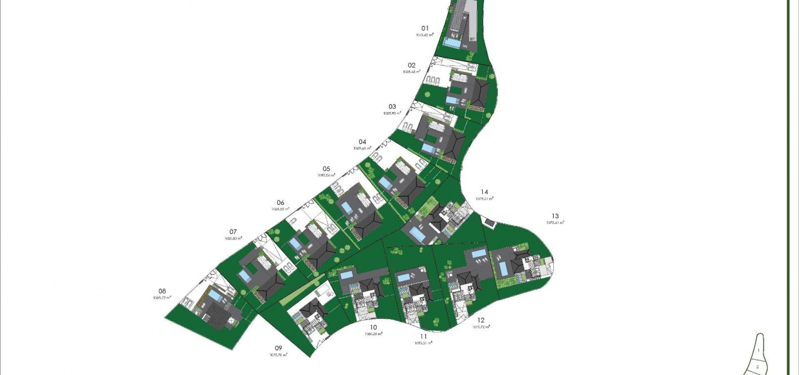 The villas offer generous plots of over 1100 m2 and spacious interiors distributed over two levels. Each home includes four bedrooms, four bathrooms and one guest toilet, providing comfort and privacy for residents and guests alike.