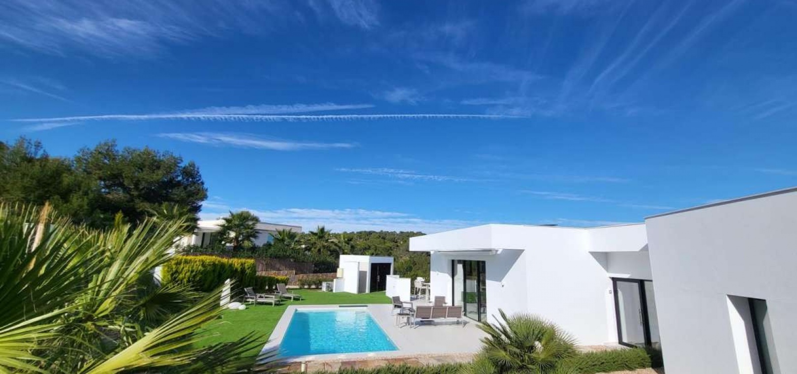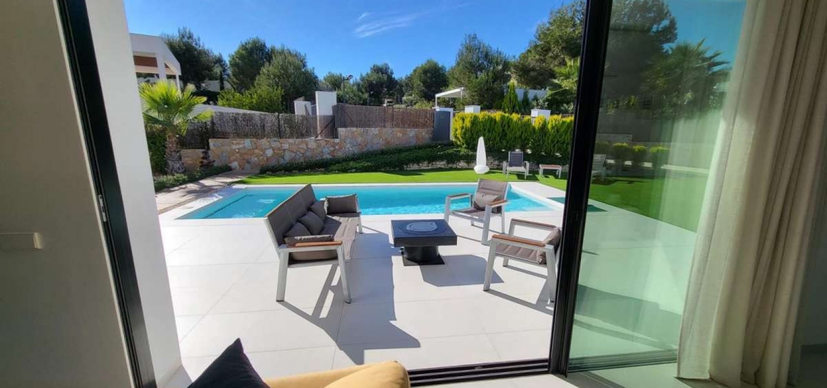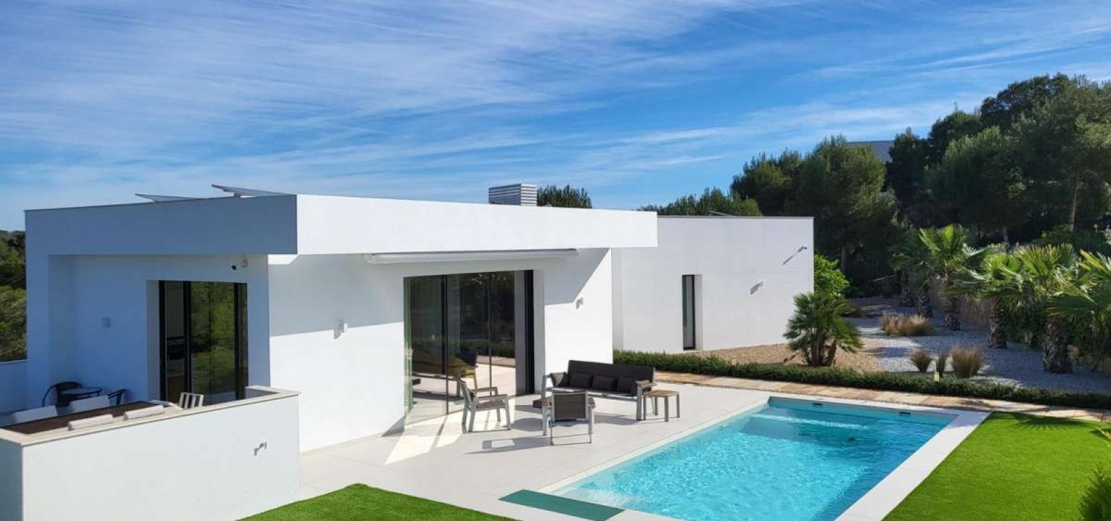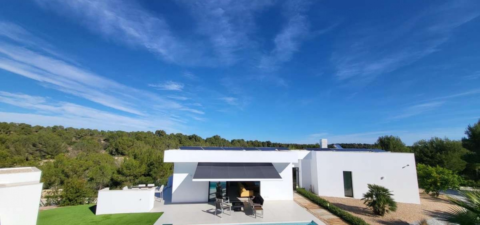 Located within the internationally acclaimed Las Colinas Golf & Country Club on the Costa Blanca, this refined villa epitomizes luxury living. Surrounded by a protected natural park, the property offers unparalleled privacy and tranquility. The seamless access to one of Europe's top golf destinations makes it a favorite among discerning golfers and lifestyle enthusiasts.Sitting on a generous 1,700 m² plot, this villa is designed for elegant Mediterranean living. The outdoor space boasts a swimming pool, jacuzzi, sauna building, and beautifully landscaped areas perfect for relaxation and entertainment. After a round on the award-winning golf course, residents can unwind in their private oasis.Inside, the villa exudes calm Scandinavian elegance with open-plan living spaces flooded with natural light. The three en-suite bedrooms are strategically placed in a private wing, each offering direct garden access for utmost comfort and privacy. Thanks to underfloor heating and solar energy, this residence is not only high-quality but also energy-efficient.Ideal for those who appreciate understated luxury, international prestige, and world-class golf, this villa is located in one of Southern Europe's most celebrated resort communities.