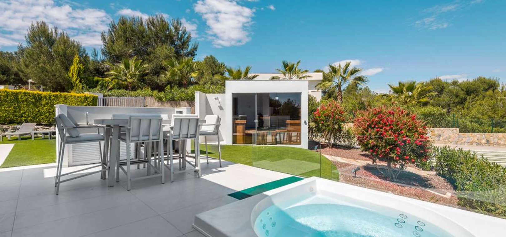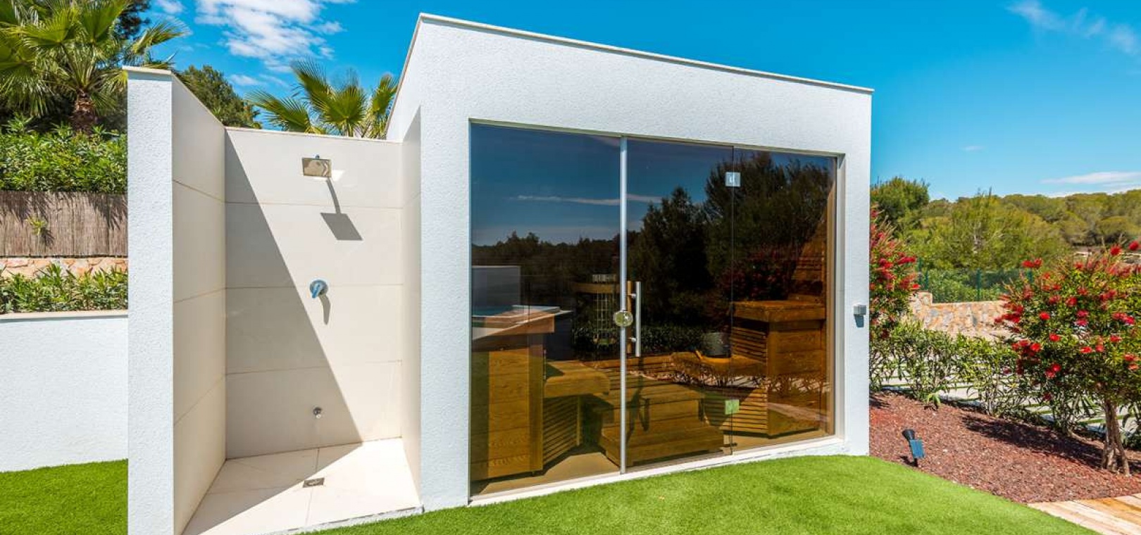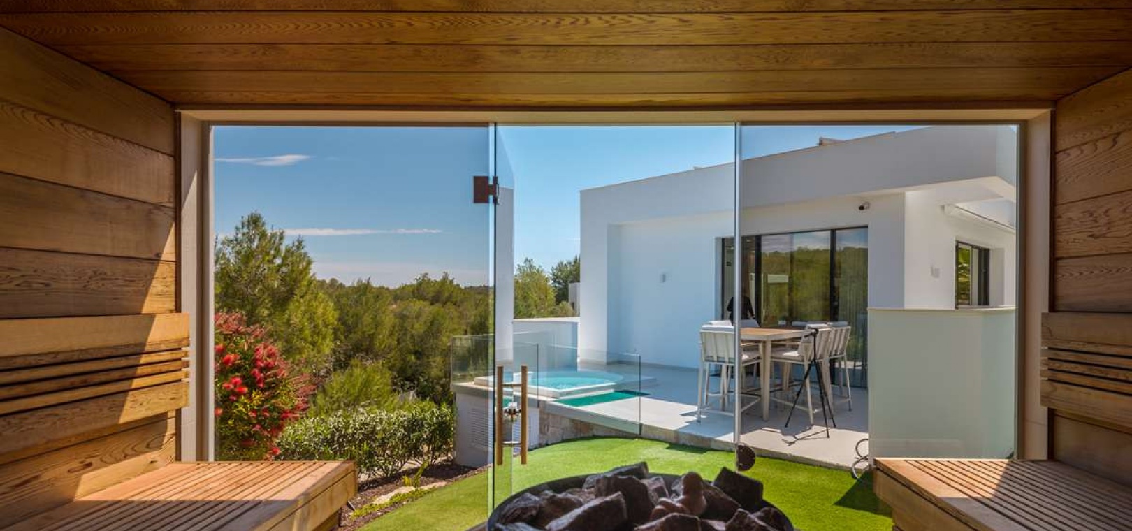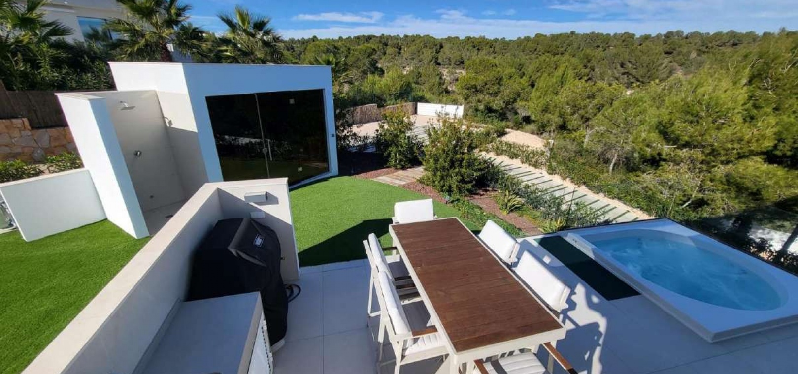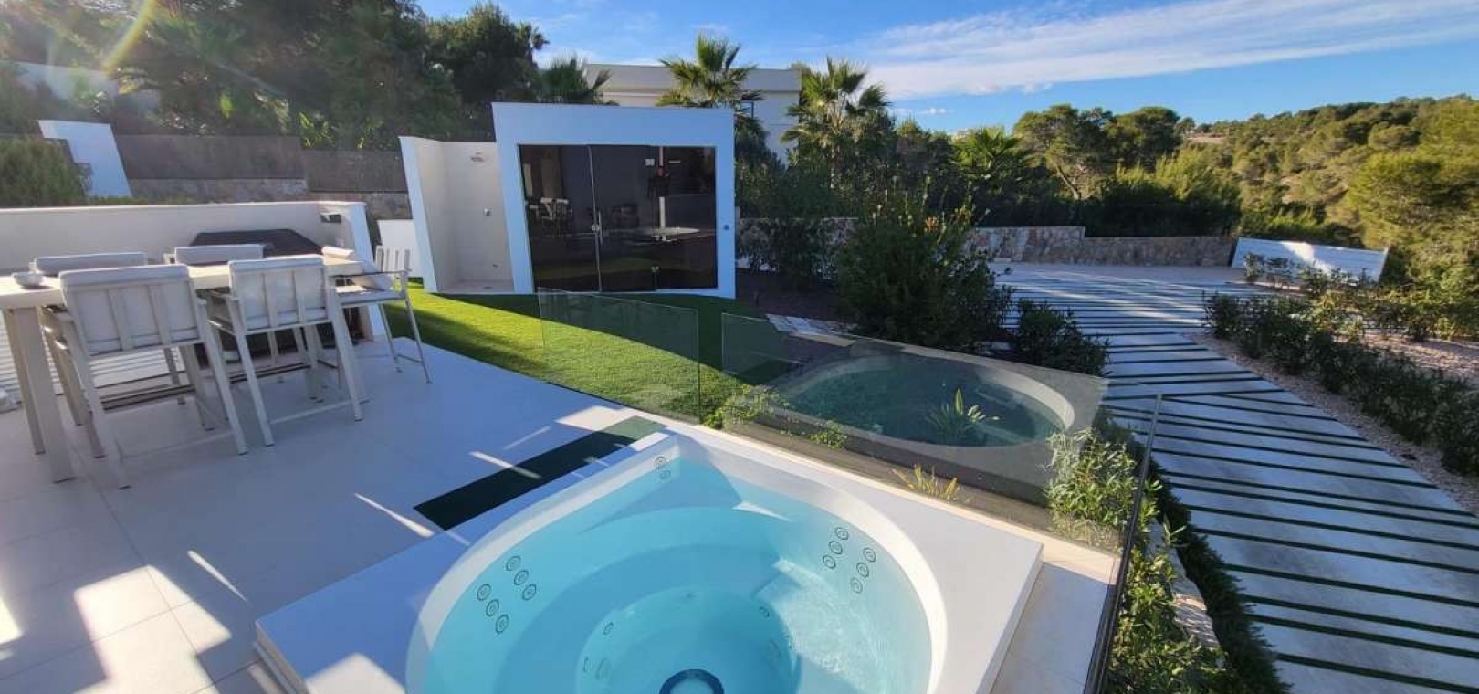 Located within the internationally acclaimed Las Colinas Golf & Country Club on the Costa Blanca, this refined villa epitomizes luxury living. Surrounded by a protected natural park, the property offers unparalleled privacy and tranquility. The seamless access to one of Europe's top golf destinations makes it a favorite among discerning golfers and lifestyle enthusiasts.Sitting on a generous 1,700 m² plot, this villa is designed for elegant Mediterranean living. The outdoor space boasts a swimming pool, jacuzzi, sauna building, and beautifully landscaped areas perfect for relaxation and entertainment. After a round on the award-winning golf course, residents can unwind in their private oasis.Inside, the villa exudes calm Scandinavian elegance with open-plan living spaces flooded with natural light. The three en-suite bedrooms are strategically placed in a private wing, each offering direct garden access for utmost comfort and privacy. Thanks to underfloor heating and solar energy, this residence is not only high-quality but also energy-efficient.Ideal for those who appreciate understated luxury, international prestige, and world-class golf, this villa is located in one of Southern Europe's most celebrated resort communities.