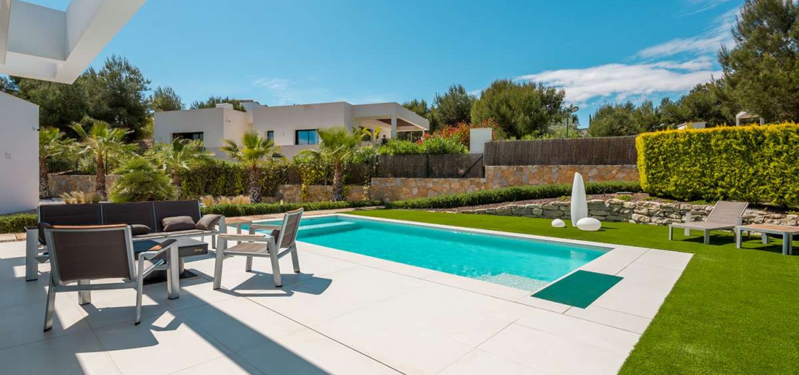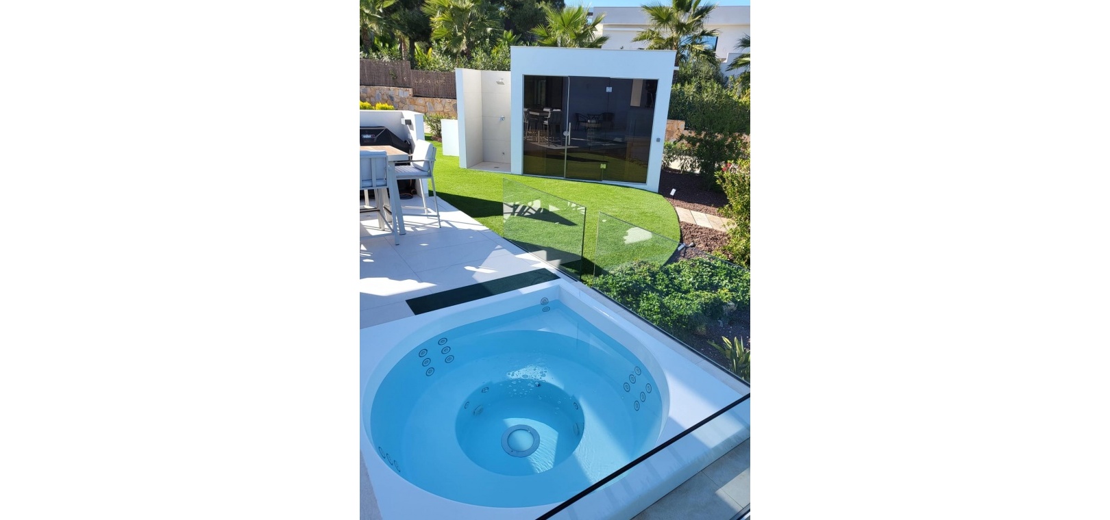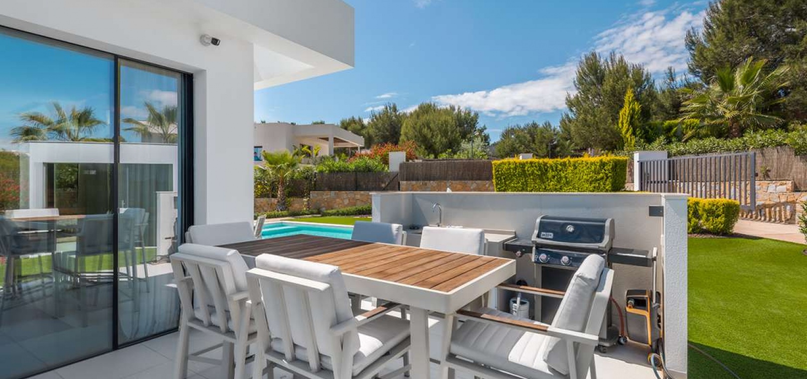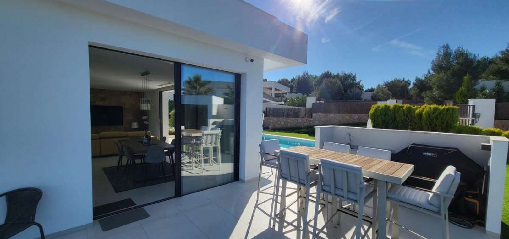Located within the internationally acclaimed Las Colinas Golf & Country Club on the Costa Blanca, this refined villa epitomizes luxury living. Surrounded by a protected natural park, the property offers unparalleled privacy and tranquility. The seamless access to one of Europe's top golf destinations makes it a favorite among discerning golfers and lifestyle enthusiasts.Sitting on a generous 1,700 m² plot, this villa is designed for elegant Mediterranean living. The outdoor space boasts a swimming pool, jacuzzi, sauna building, and beautifully landscaped areas perfect for relaxation and entertainment. After a round on the award-winning golf course, residents can unwind in their private oasis.Inside, the villa exudes calm Scandinavian elegance with open-plan living spaces flooded with natural light. The three en-suite bedrooms are strategically placed in a private wing, each offering direct garden access for utmost comfort and privacy. Thanks to underfloor heating and solar energy, this residence is not only high-quality but also energy-efficient.Ideal for those who appreciate understated luxury, international prestige, and world-class golf, this villa is located in one of Southern Europe's most celebrated resort communities.