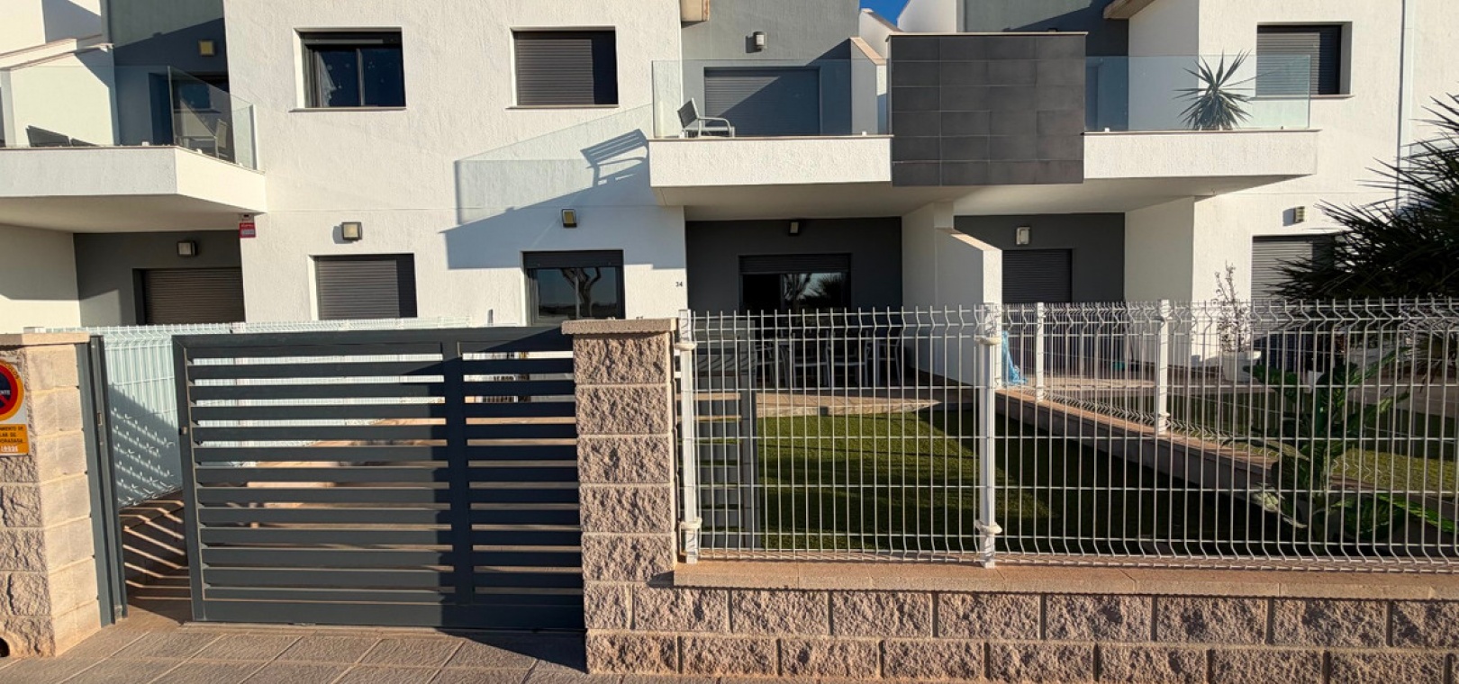This Modern West Facing Ground Floor, Two Bedroom Apartment in Pilar de la Horadada is located in the beautiful Costa Blanca, offering a comfortable and stylish lifestyle just minutes from local amenities. Built in 2020, the property boasts a 70m² build on a 112m² plot, featuring two double bedrooms with air conditioning and free-standing wardrobes and a modern shower room. The open-plan kitchen flows seamlessly into the lounge, which is fitted with air conditioning and opens through double-glazed patio doors onto the private garden. The garden is partly tiled with artificial grass, providing a low-maintenance and relaxing outdoor space with peaceful countryside and private garden views. Residents can enjoy a communal pool, perfect for sunny days and the location is ideal—just a 10-minute walk to shops, bars and restaurants or only a 2-minute drive. The beach is also easily accessible, just a 3-minute drive (approximately 3km) combining convenience with the charm of coastal living in the Costa Blanca.