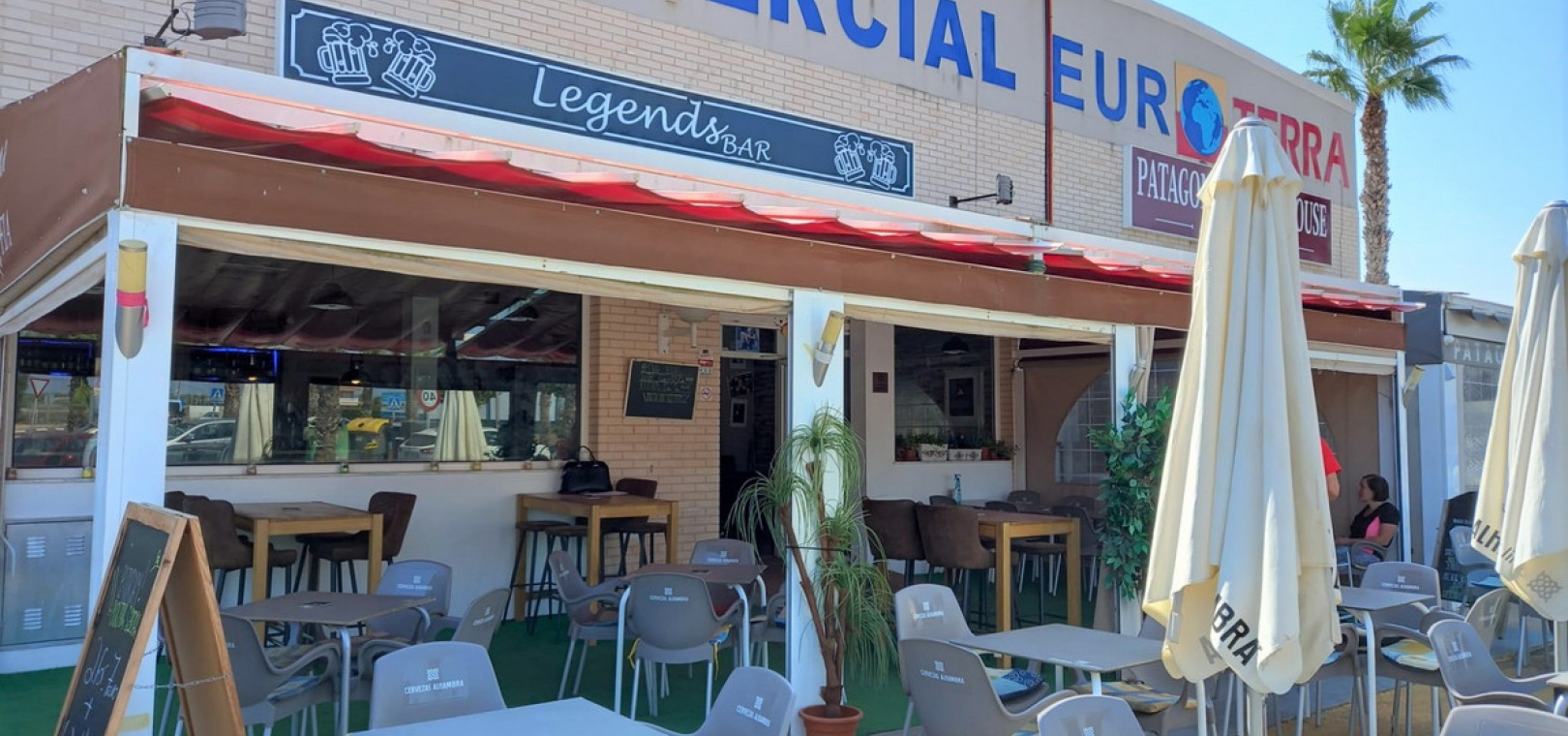 Two commercial units currently used as a successful bar located on El Raso with sitting tenants. There is a good size, fully fitted professional kitchen, 2 client bathrooms (male and female), a large bar area with ample room for a pool table and space for 48 covers inside in this area of 95m2. Outside is a large terrace with sun awnings and seating for a minimum of 30 covers and plenty of car parking space for clients.