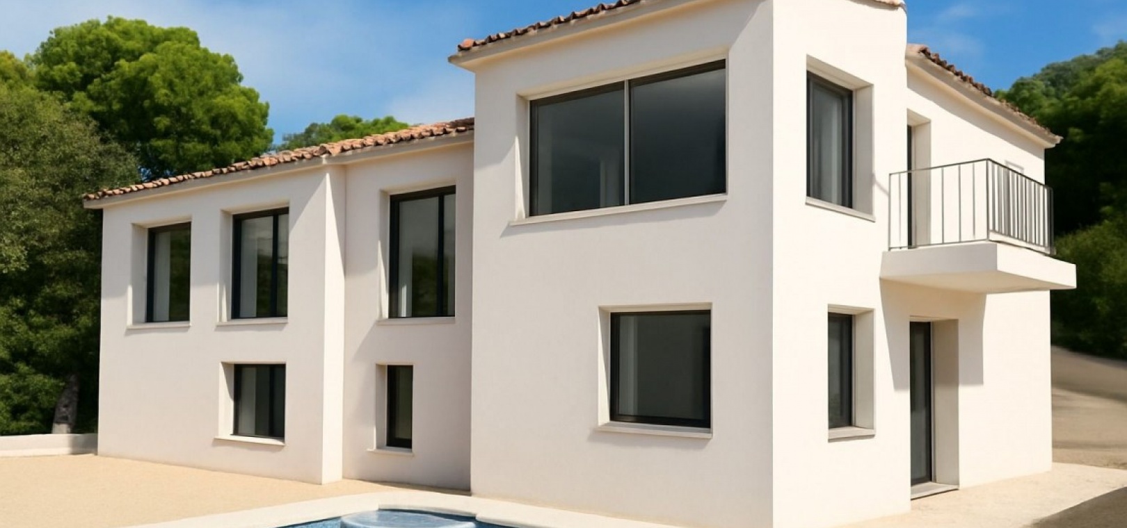 This villa sits on an 850 m² plot and offers 190 m² of constructed space with sea and mountain views, a private swimming pool and a garage. The layout includes four bedrooms and four bathrooms and the house will be fully renovated and finished to a high standard. The builder is inviting the new owner to choose final fixtures and finishes so you can put your own stamp on the property.