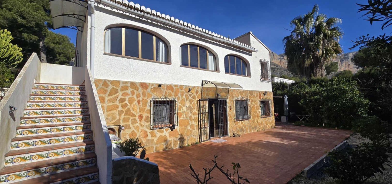 This quietly and sunny located villa offers a beautiful view of Montgó and impresses, among other things, with its location near the La Sella golf course as well as its good connections to Jávea, Jesús Pobre, and Denia. The house offers plenty of space, privacy, and flexible usage options – ideal for families, guests, or for combining living and renting.
