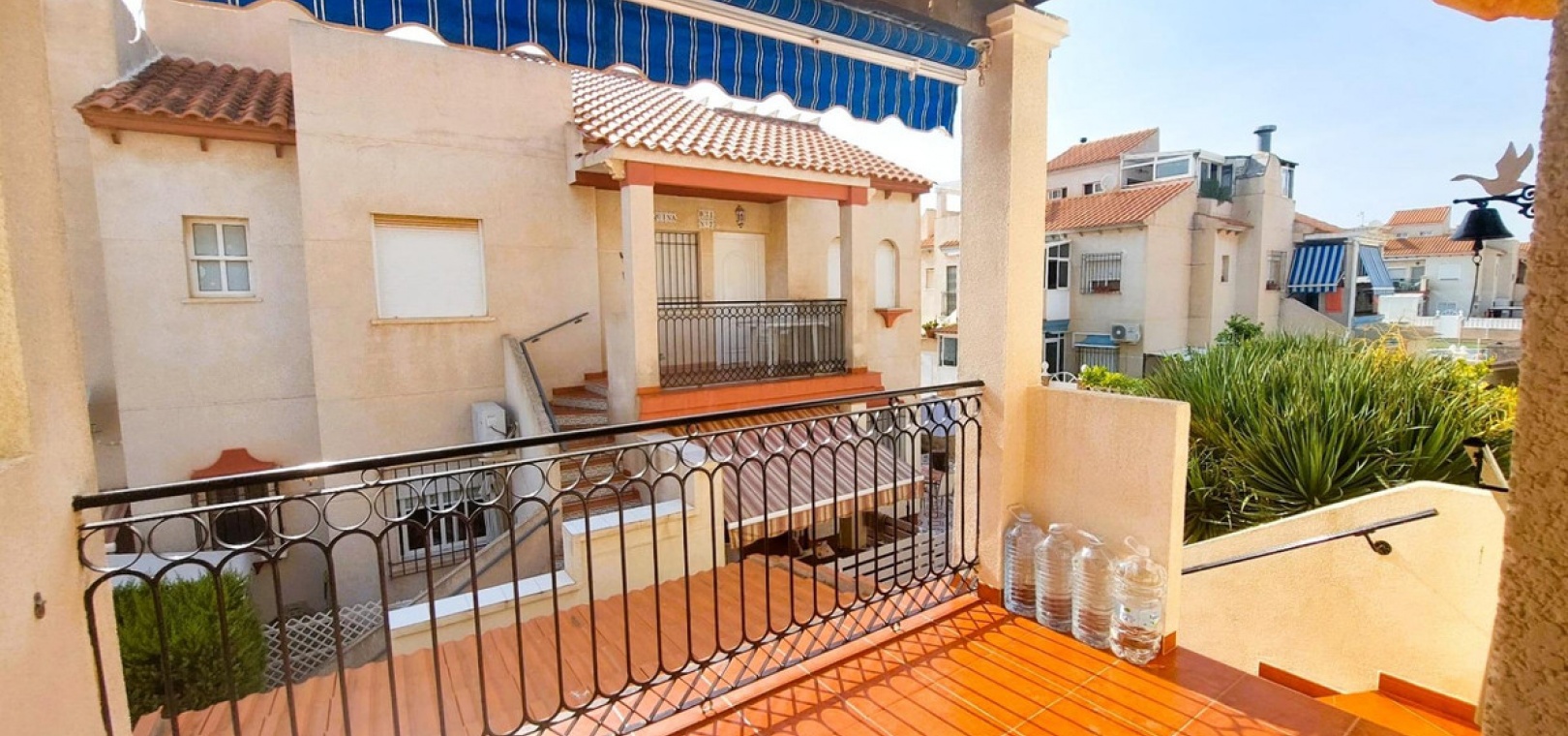 Top floor bungalow, located in the sought-after area of Playa Flamenca.. . With two double bedrooms, a bathroom with a renovated shower, and an open-plan kitchen leading to the bright living-dining room. Enjoy the sun all day long on your south-facing porch, ideal for outdoor breakfasts, and relax on your private solarium with sea views. . . In addition, it has new air conditioning and a new refrigerator, renovated windows and is very well maintained. The property includes a storage space, perfect for storing beach equipment, terrace furniture or anything else you may need (some neighbours have closed it off as a storage room).. . This property offers the perfect space to enjoy your holidays by the sea. . . Located in a well-maintained gated community with a communal swimming pool, gardens and several outdoor parking areas, it offers security, tranquillity and an excellent quality of life.. . All this just a few minutes' drive from the beach, a short walk from the Municipal Sports Centre, and very close to the popular La Zenia Boulevard shopping centre. In addition, supermarkets, bars, restaurants and other services are within walking distance, in a quiet but well-connected residential area.