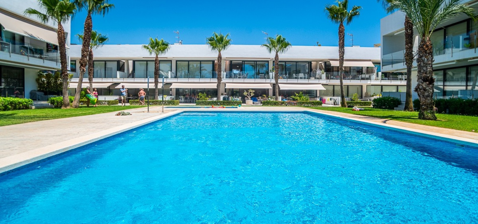 Step out onto your huge private terrace overlooking the lush communal gardens and shimmering pool. Whether it's a long lunch in the sun or an evening glass of wine, this is your daily front-row seat to the Mediterranean vibe.