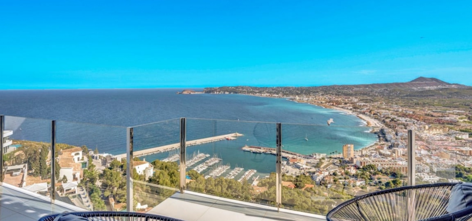 h3>OverviewModern and spacious luxury villa of 795 m² set on a 1,760 m² plot, positioned in the sought-after La Corona area overlooking the Port of Jávea. The property offers spectacular sea and mountain views, two swimming pools (both heated), a jacuzzi with Mediterranean vistas and extensive leisure facilities. Offered in good condition at €2,600,000 (reduced from €2,995,000).Interior & FeaturesThis villa comprises five double bedroom suites, each with uninterrupted sea views, and six bathrooms. The vast living space is contemporary and practical, featuring an American-style fully equipped open kitchen, multiple seating areas and direct access to the main terrace. The home includes hot & cold air conditioning, double glazing, motorised blinds, an intelligent system for shutters and lighting, a storage room and technical inspection approved documentation.Entertainment is exceptional: a fully equipped cinema room, a bar/games area, a yoga/stretch space, two saunas (Turkish steam and Finnish) and a heated indoor pool. Practical comforts include a four-person lift serving all floors, garaging for two cars and an automated car turntable for easy parking. A sports court is also available on the grounds.Outdoor Space & ViewsThe villa enjoys several terraces, including a main terrace with a private pool, exterior shower and toilet, plus a shady rear terrace that remains cool in summer. The architecture integrates the natural rock in several locations as striking focal points, adding unique character to the home. The landscaped garden and parking complete the outdoor offering.Living in La CoronaLa Corona provides a premium coastal lifestyle with close proximity to the Port of Jávea, beaches, marinas, fine dining and local shops. The area combines tranquillity with excellent connectivity to regional amenities and international airports, making it ideal for year-round living or exclusive holiday use.