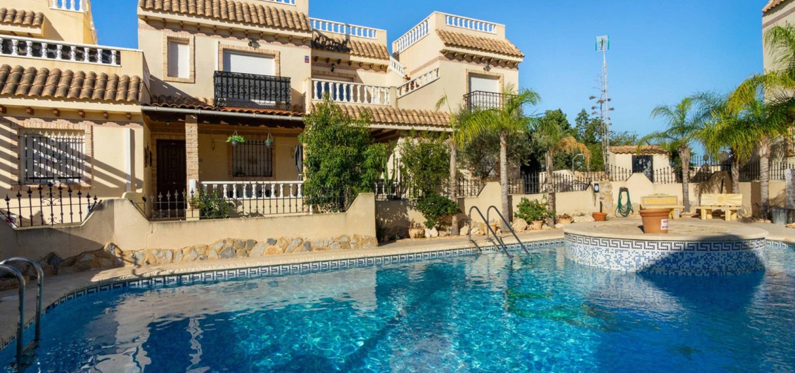 Welcome to your new home in Orihuela Costa, in the charming area of Las Mimosas!~~This spectacular house is presented as the opportunity you have been waiting for to live the life of your dreams in a paradisiacal environment. With a generous area of 161 square meters and a plot of more than 300 square meters, this home is an oasis of space and privacy . In addition, its location just 3000 meters from the beach guarantees you the pleasure of the sea and the sun always at your fingertips.Enjoy the spaciousness of this 5 bedroom home, with the advantage of a room on the ground floor for added comfort. On this floor we also find a bathroom. The first floor offers 3 bedrooms and 2 bathrooms, 1 en suite. On the top floor we find the fifth bedroom very bright.~~This property is ready for you to move in and feel at home from the first moment. The equipped kitchen will allow you to give free rein to your culinary creativity, and the south-east orientation provides you with incomparable natural luminosity throughout the day. The additional amenities of this house are countless. Enjoy the convenience of running water, the comfort of air conditioning and the security of an alarm system. Built-in wardrobes, a pantry and a laundry room make it easy to organize your daily life. The house comes fully furnished, meaning you can move in without complications and start enjoying your spaces from day one. The garden, with its trees and a barbecue area, becomes the perfect setting for your family gatherings and outdoor moments. Relax and immerse yourself in the waters of your private pool or join the community in the community pool.~~The solarium offers you a corner of tranquility for your moments of reflection, while the clear views and the Mediterranean breeze caress your soul. The location of this house is simply exceptional, with shopping centers, hospitals, parks, supermarkets and children's areas nearby , which makes everyday life extremely comfortable.Community fees are only 402 euros per year, which guarantees the impeccable maintenance of the common areas.In short, this house in Orihuela Costa is much more than a property ; It is a lifestyle.~~A life of comfort, beauty and tranquility awaits you here. Don't miss this opportunity and contact us today to visit your new home!~~Taxes and completion fees not included.