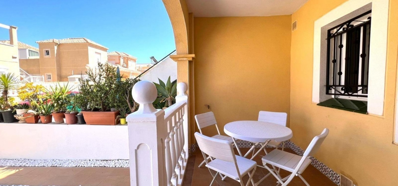 We present this charming ground floor bungalow located in the sought-after area of Los Balcones - Los Altos del Edén, ideal for those looking for a comfortable and accessible home. With a constructed area of 62 m² and a usable area of 54 m², this property features two double bedrooms that offer spaciousness and brightness. Its northeast orientation allows you to enjoy the morning sun from its large private terrace of 18 m², perfect for relaxing outdoors or sharing unforgettable moments with family and friends.The property is semi-renovated, giving new owners the opportunity to customize it to their taste. Additionally, it includes private parking, ensuring extra comfort for its residents.Located just 4000 meters from the Mediterranean Sea and integrated into a tranquil environment but close to all necessary services such as supermarkets, restaurants, and educational centers; it is the perfect place whether you are looking for your permanent residence or a vacation investment.