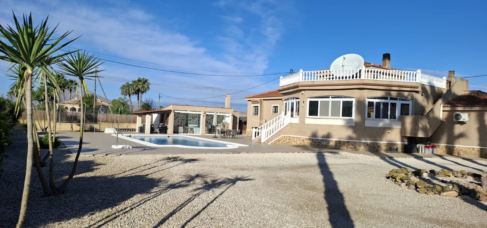 This beautifully maintained, south-facing country villa is set in peaceful open countryside just outside Catral, offering privacy, space, and stunning mountain views—yet only a five-minute drive from the town’s shops, restaurants, and everyday services.