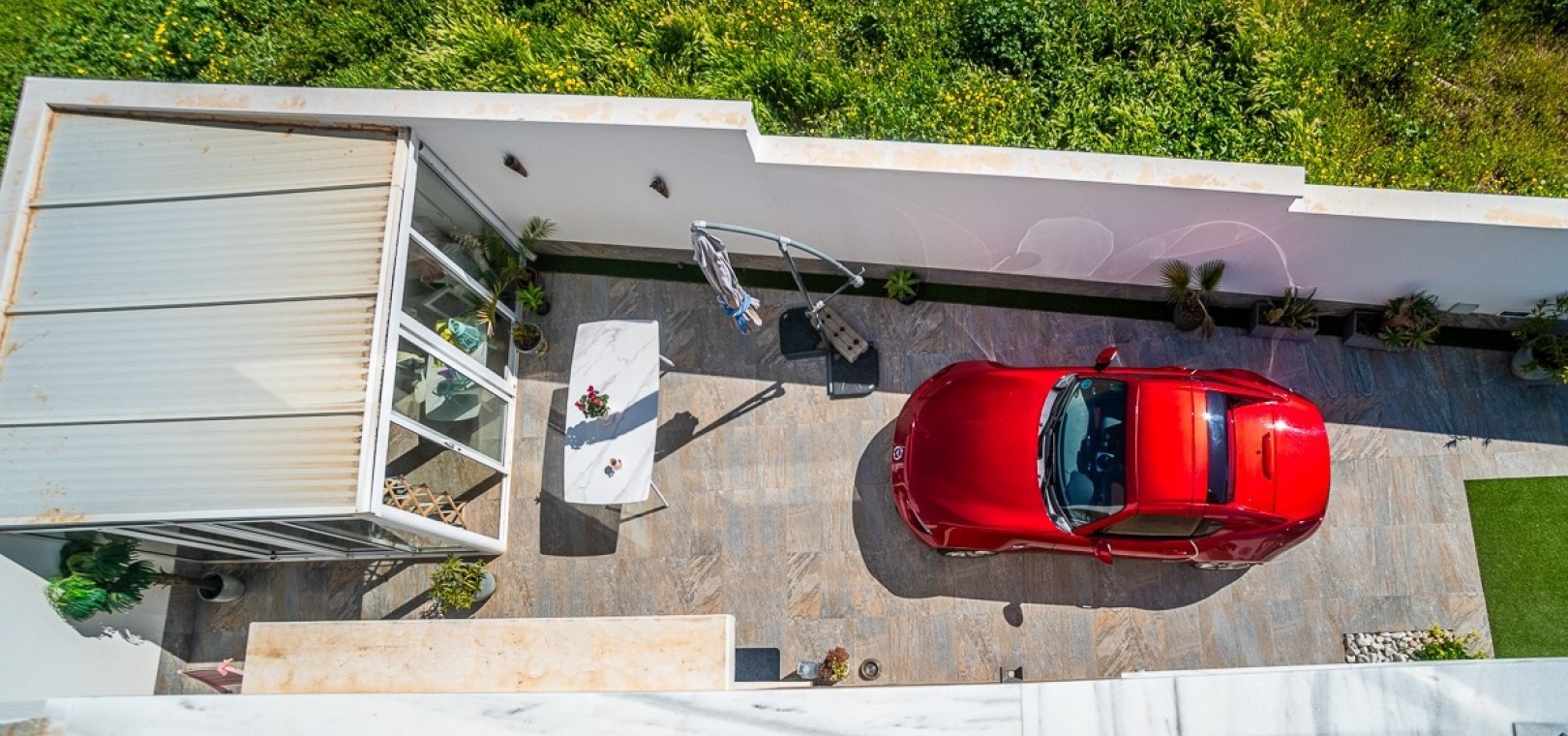 Outside, too, this villa is fully equipped to enjoy the Mediterranean climate. The beautiful garden features a cozy chill-out zone and a private swimming pool with a Jacuzzi , where you can relax in complete privacy. Additionally, an extra covered area has been created that can serve perfectly as a guest house, hobby room, or extra lounge spot . Furthermore, there is a practical storage room behind the kitchen, ideal for extra storage.