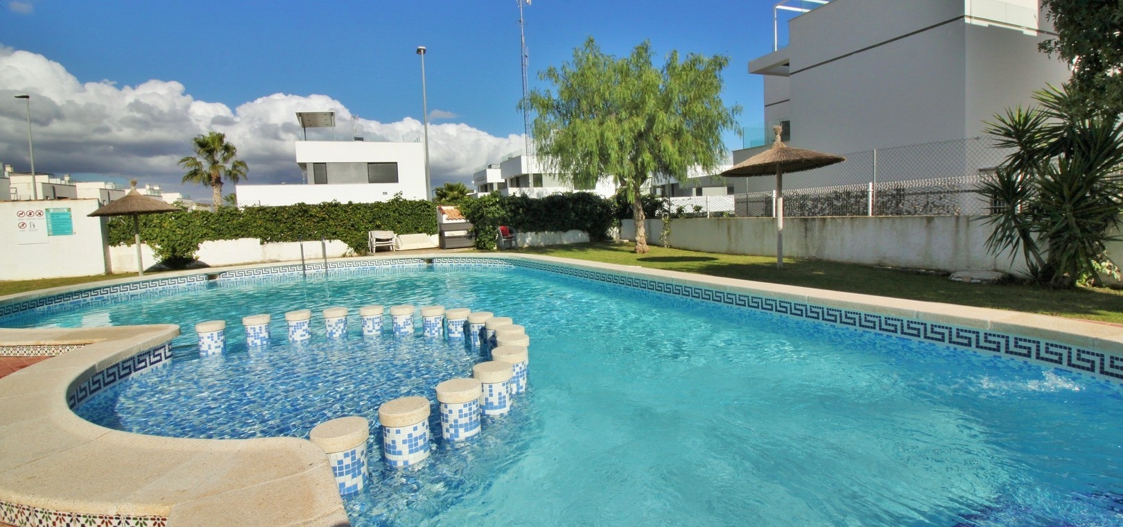 This modern 2-bedroom, 3-bathroom townhouse is located in the highly sought-after Pau 26 area of Villamartin, offering contemporary, stylish living close to excellent amenities. Built in 2019 and presented in excellent condition, the property is ideal as a permanent residence, holiday home, or investment opportunity.