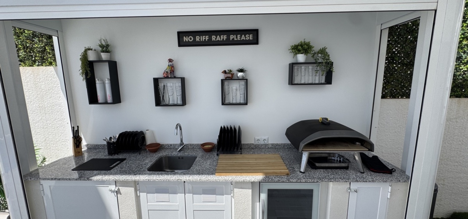 This Private Oasis allows you to enjoy relaxing afternoons around the the private pool or soaking up the sun on the sun loungers. A custom built outdoor kitchen allows you to host barbecues and gatherings in the wonderful garden.