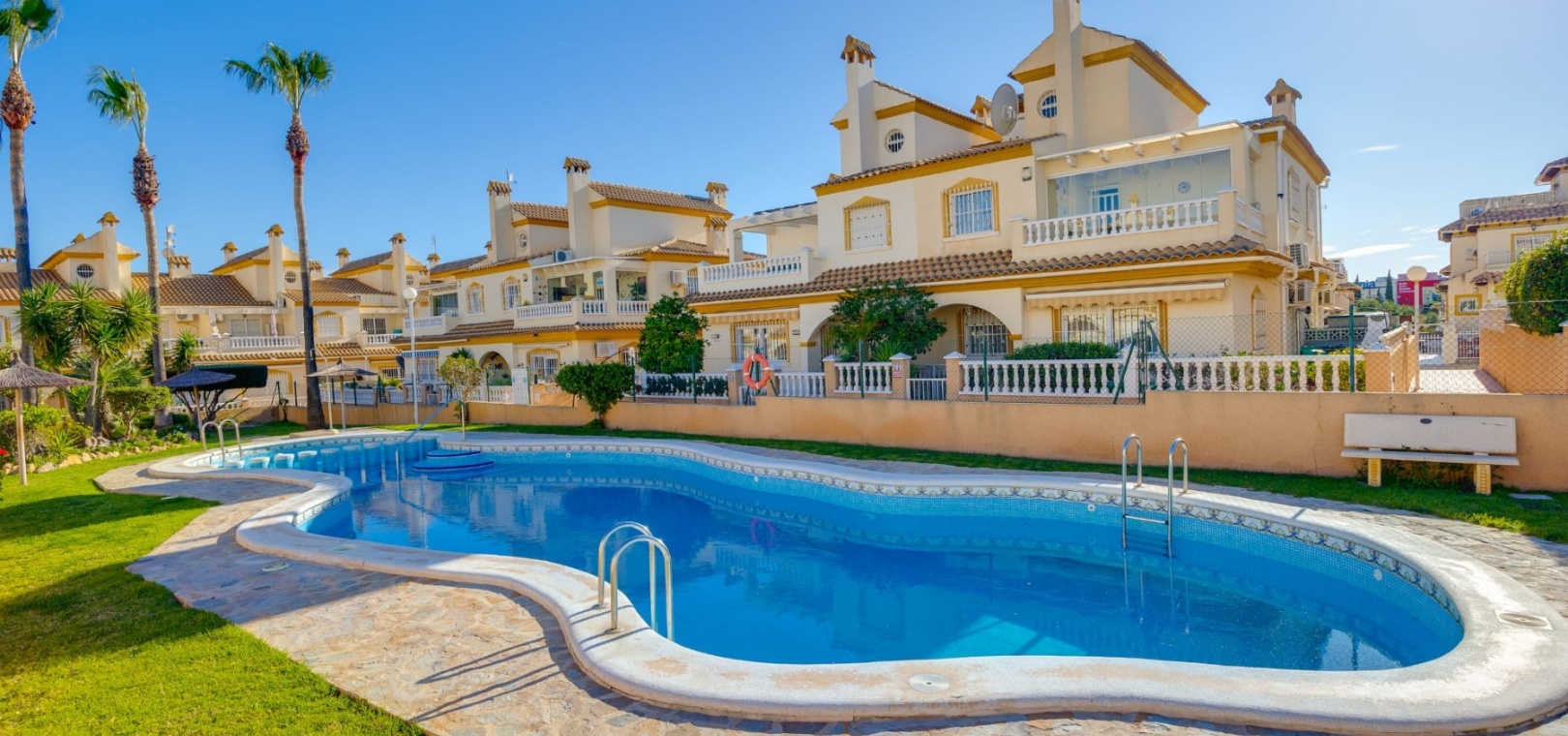 Residents benefit from beautifully maintained communal gardens and swimming pools, creating a relaxed and enjoyable environment.