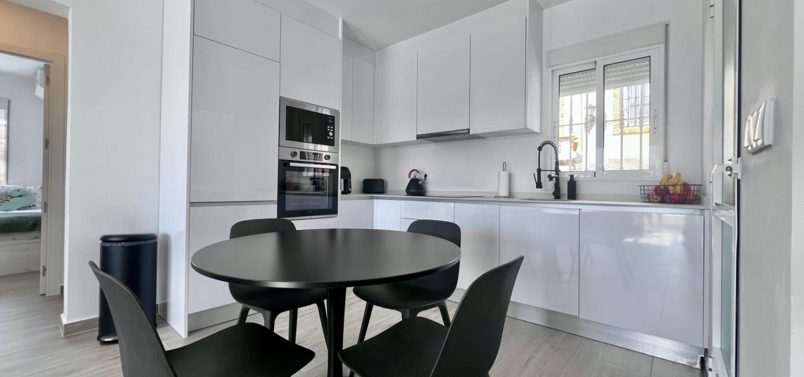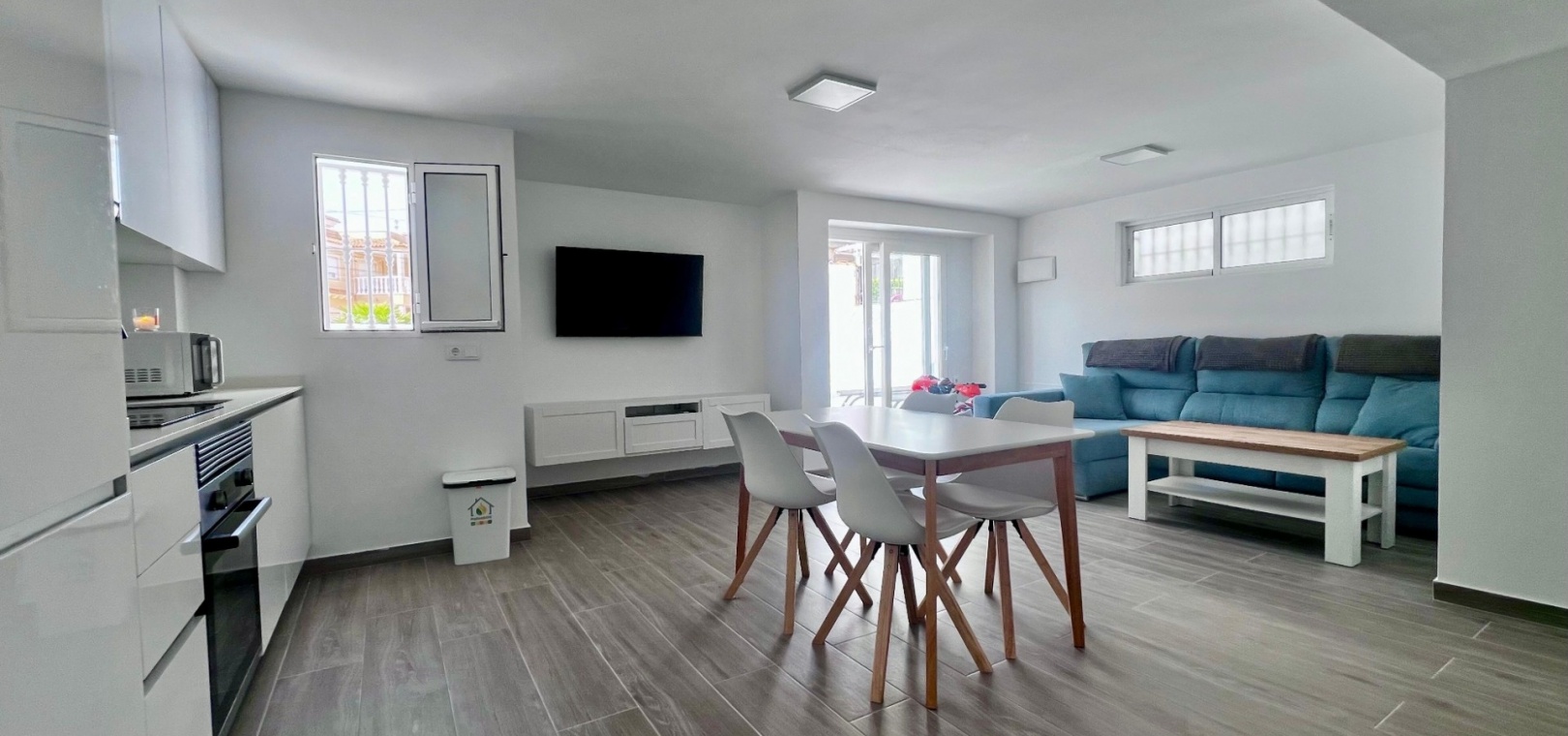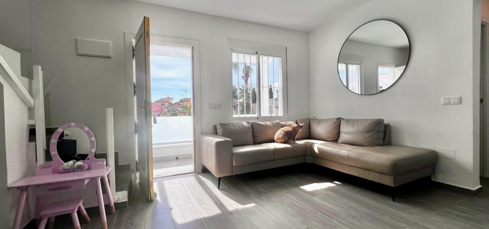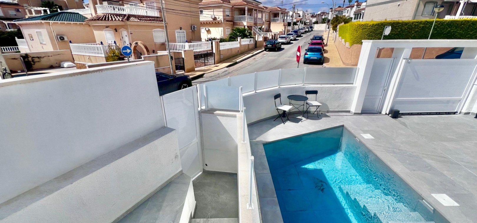 This completely renovated corner villa in Villamartin, offers a versatile layout and a peaceful residential setting with excellent connectivity. Set on a plot of approximately 300 m², the property is arranged as two independent living spaces, providing flexibility for extended family living or guest accommodation.