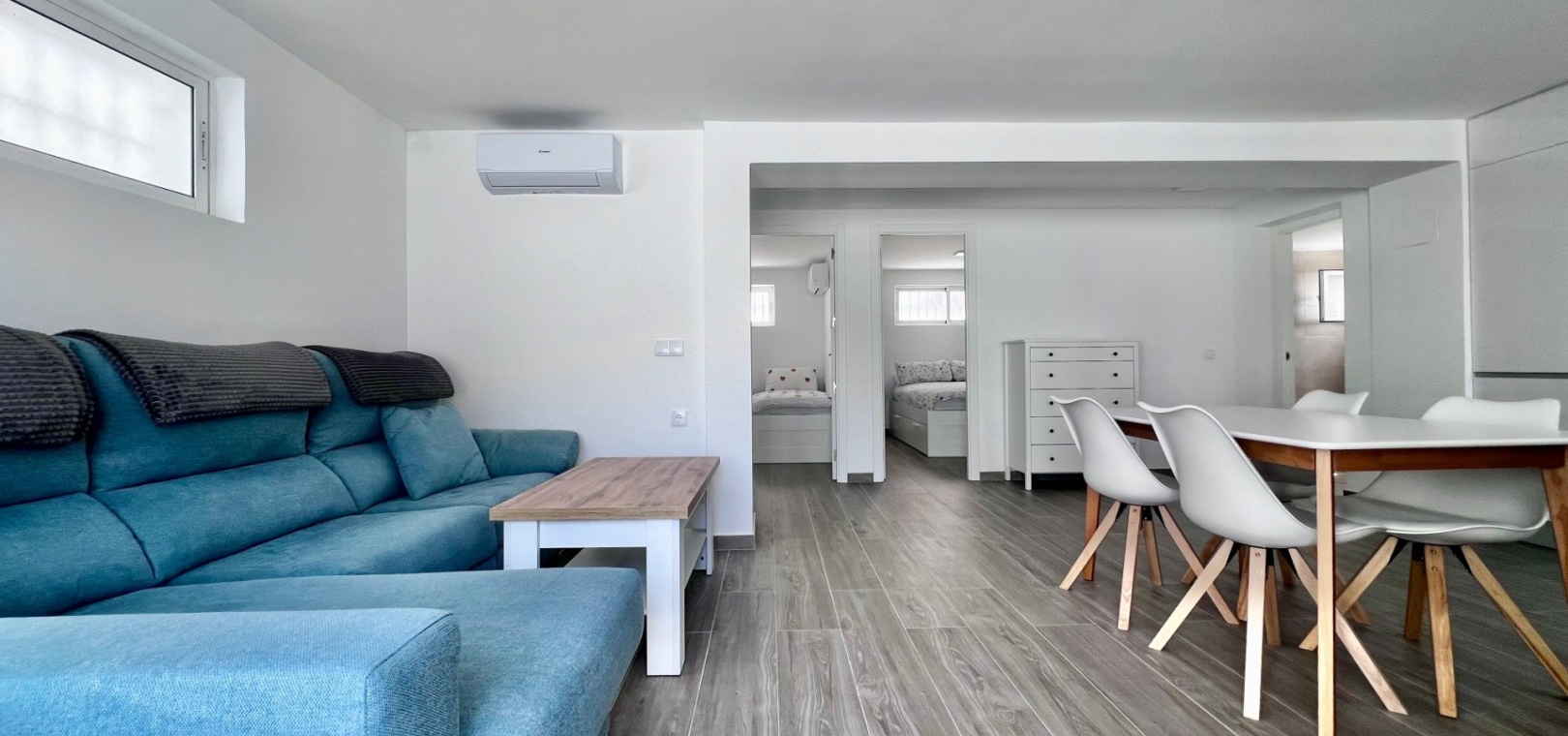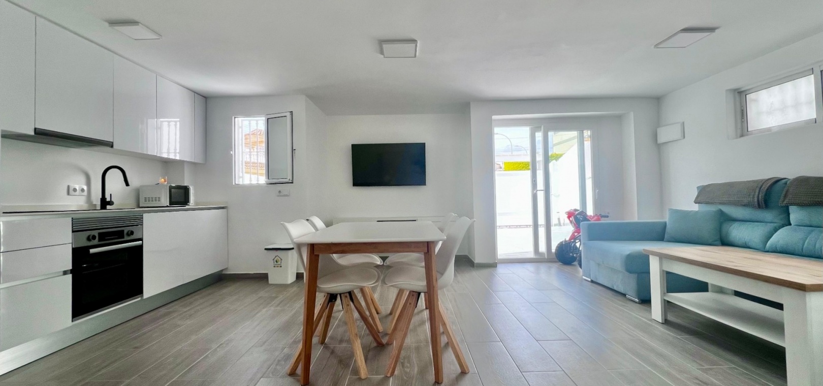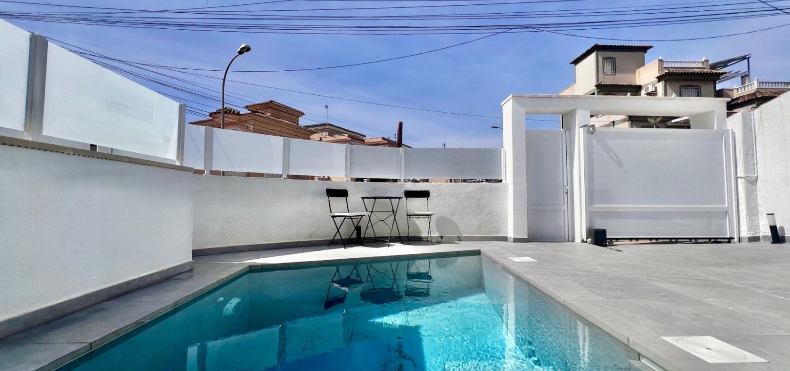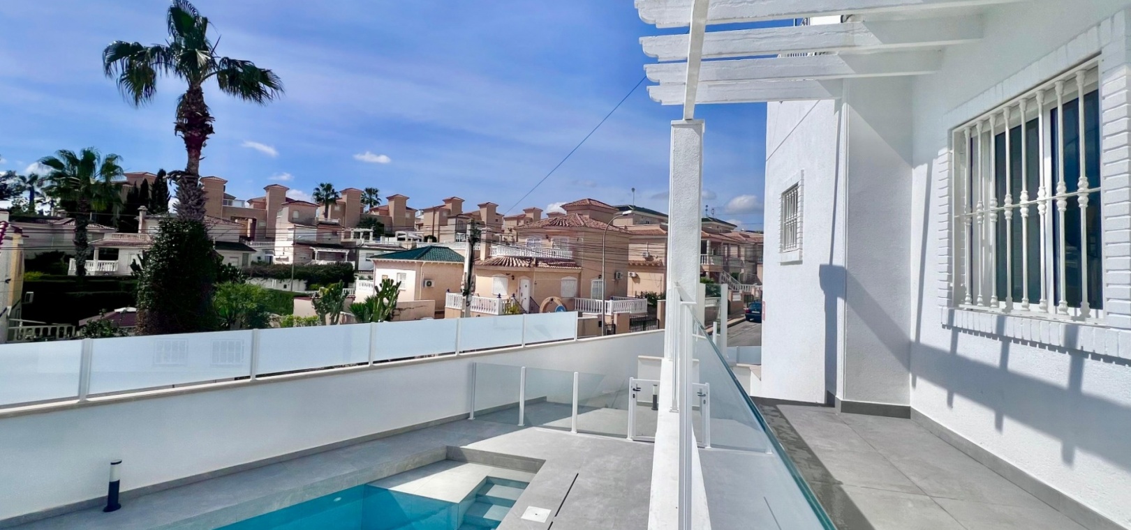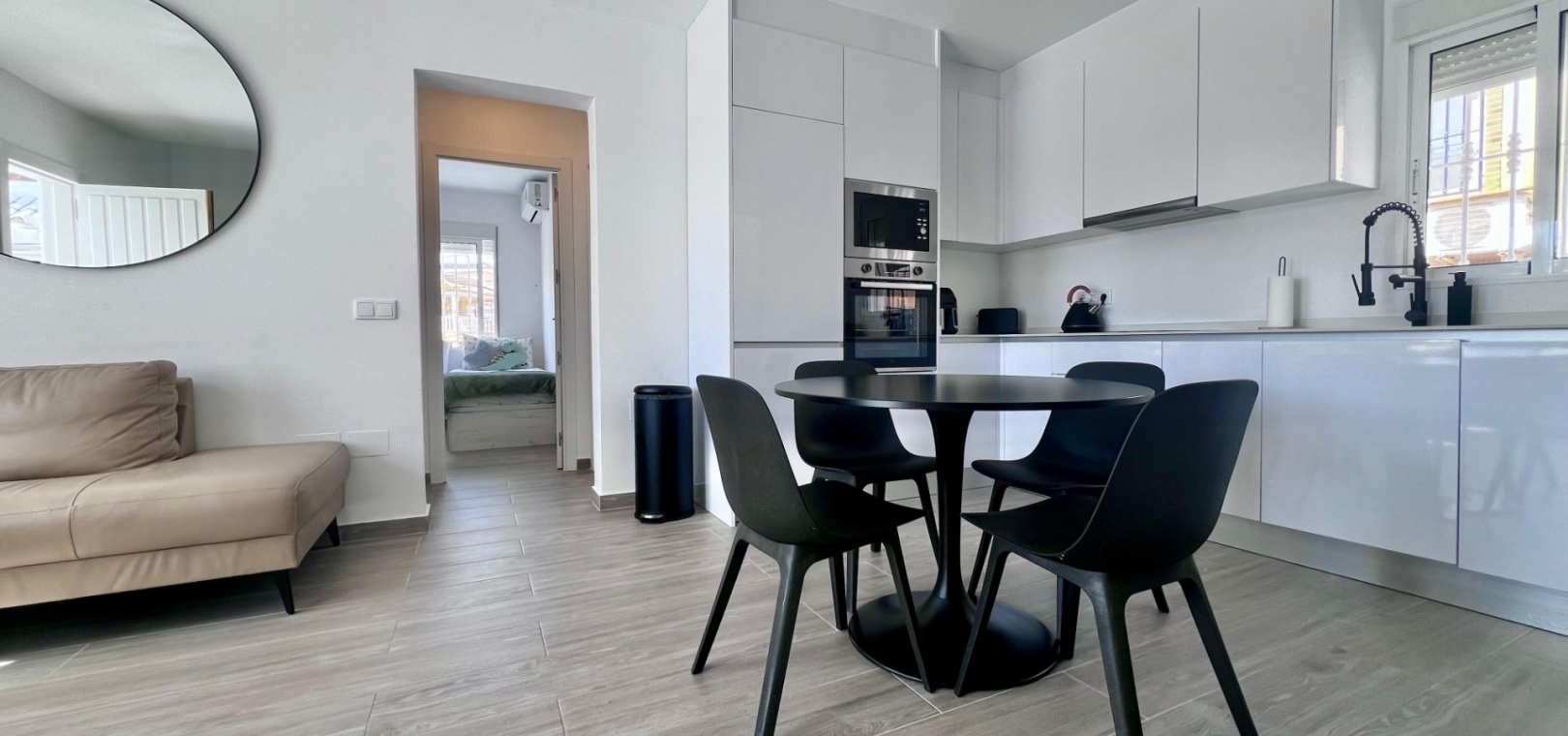 This completely renovated corner villa in Villamartin, offers a versatile layout and a peaceful residential setting with excellent connectivity. Set on a plot of approximately 300 m², the property is arranged as two independent living spaces, providing flexibility for extended family living or guest accommodation.