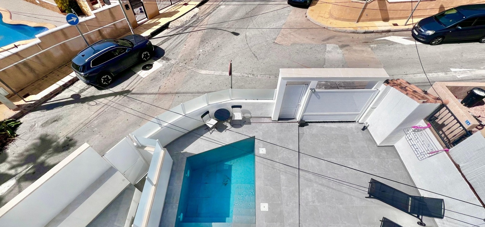 The lower floor has its own independent access via an automatic gate and includes off-road parking. This level comprises a second open-plan living and dining area with kitchen, three bedrooms, and two bathrooms, one of which is en suite. A second private pool enhances the sense of independence and comfort on this floor.