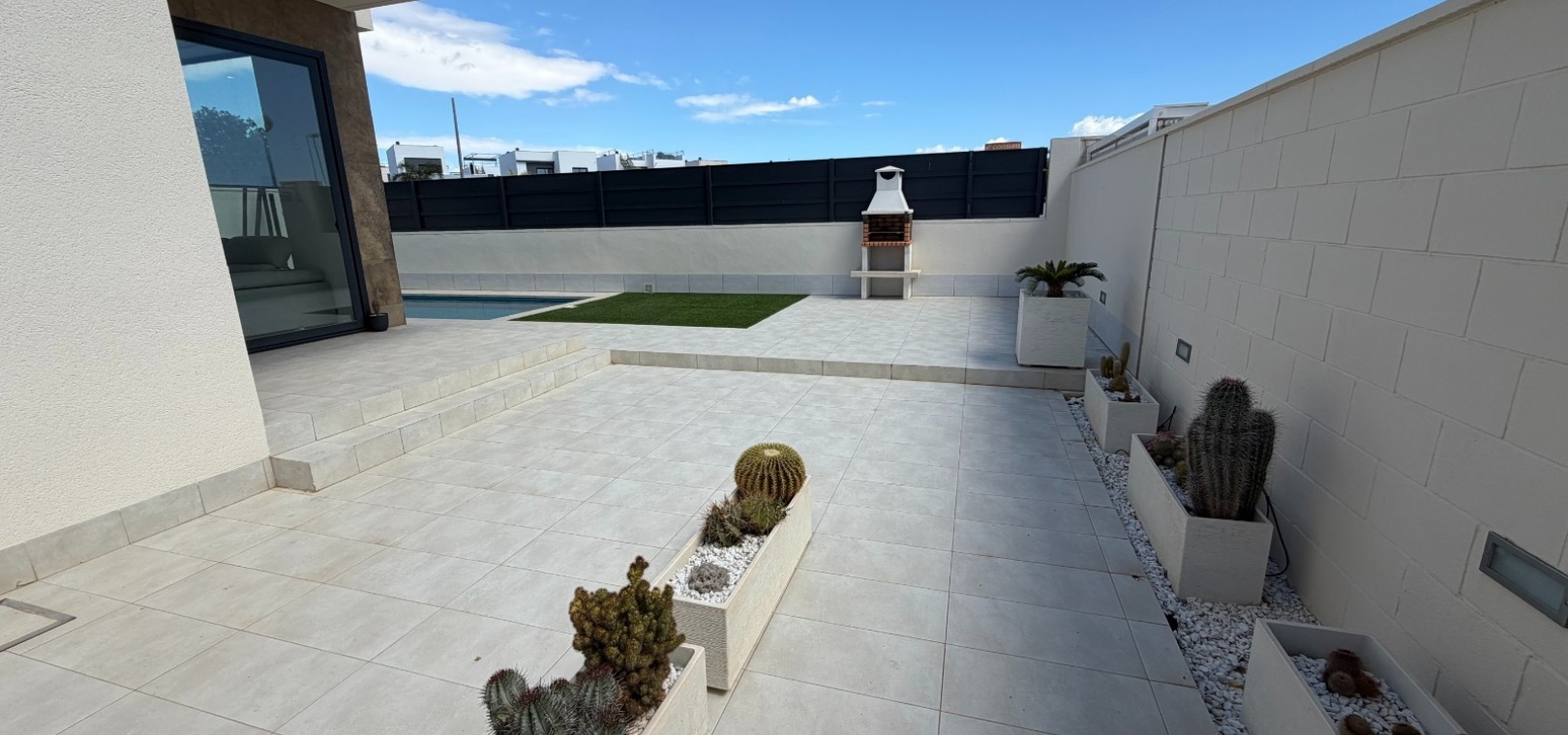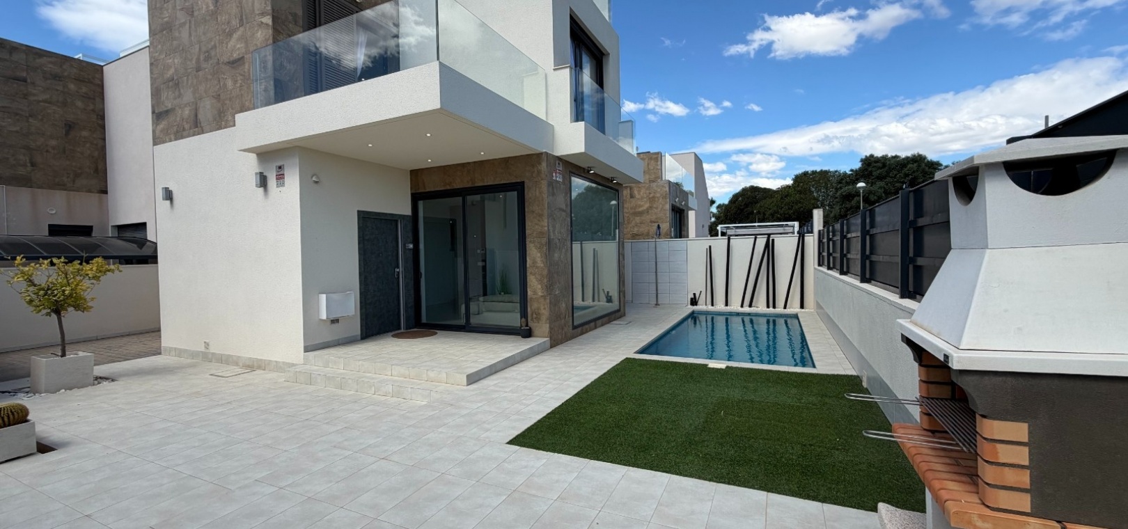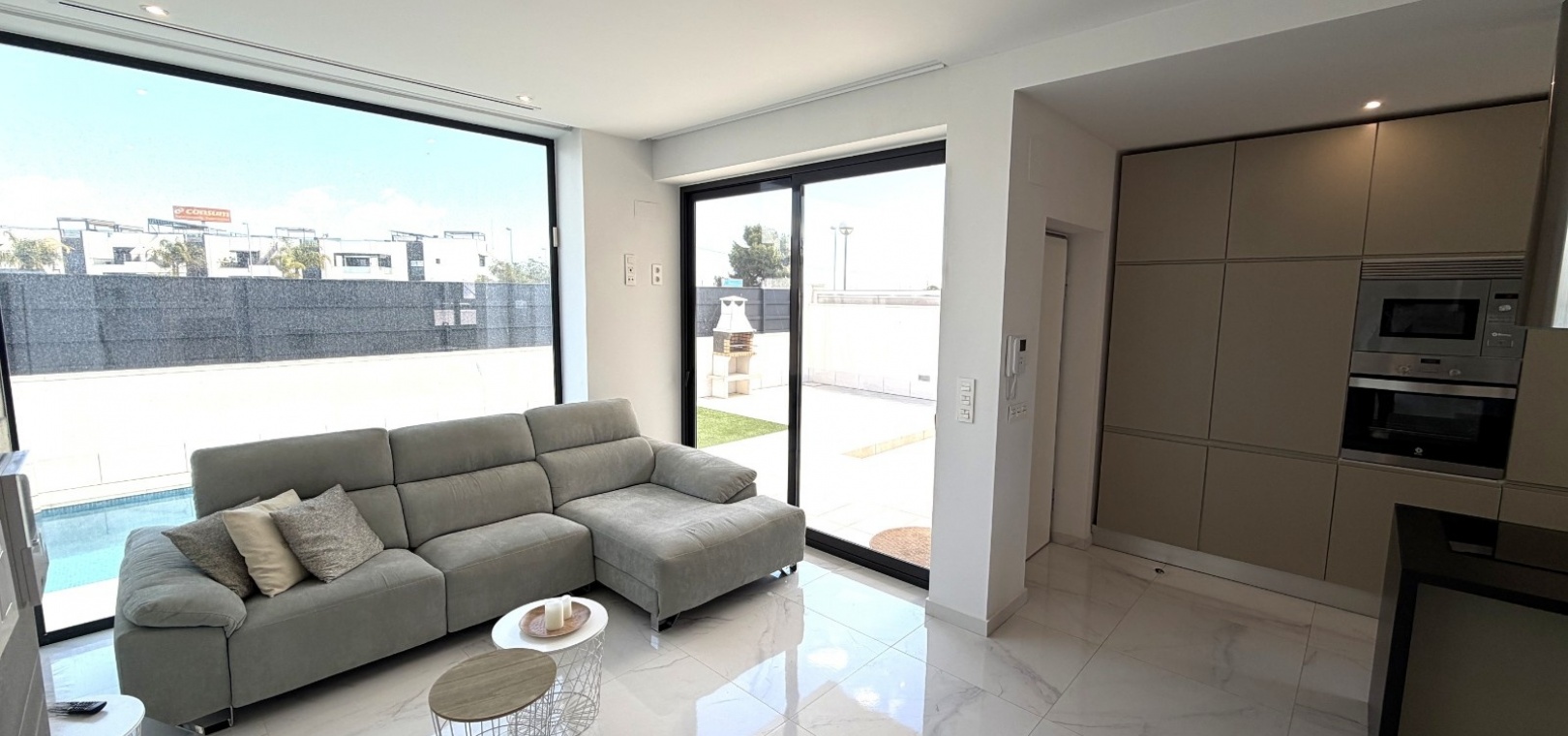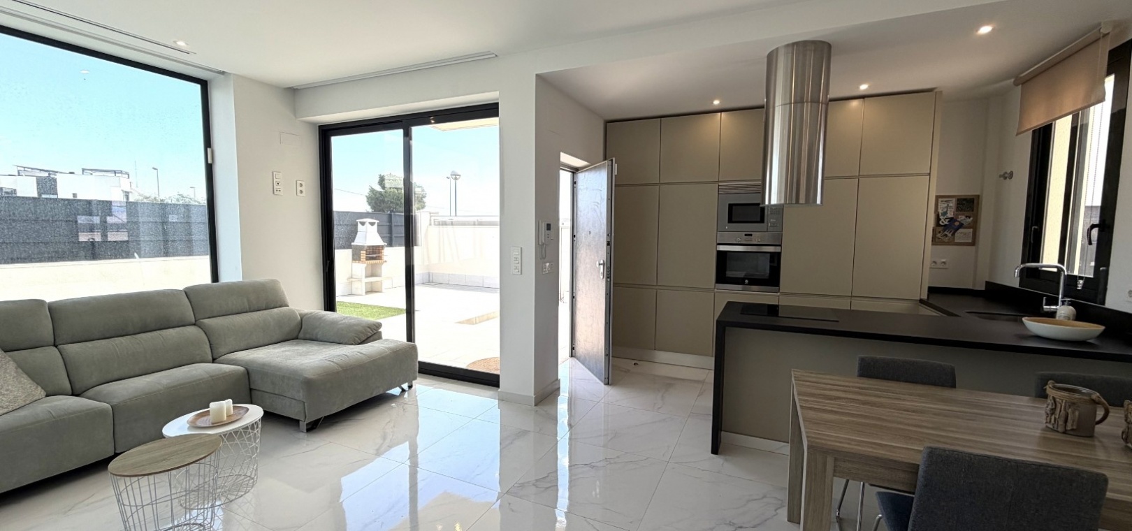 This modern-style three-bedroom, two-bathroom detached villa is located in the highly desirable area of Doña Pepa, within Ciudad Quesada, offering a blend of contemporary design and comfortable living.