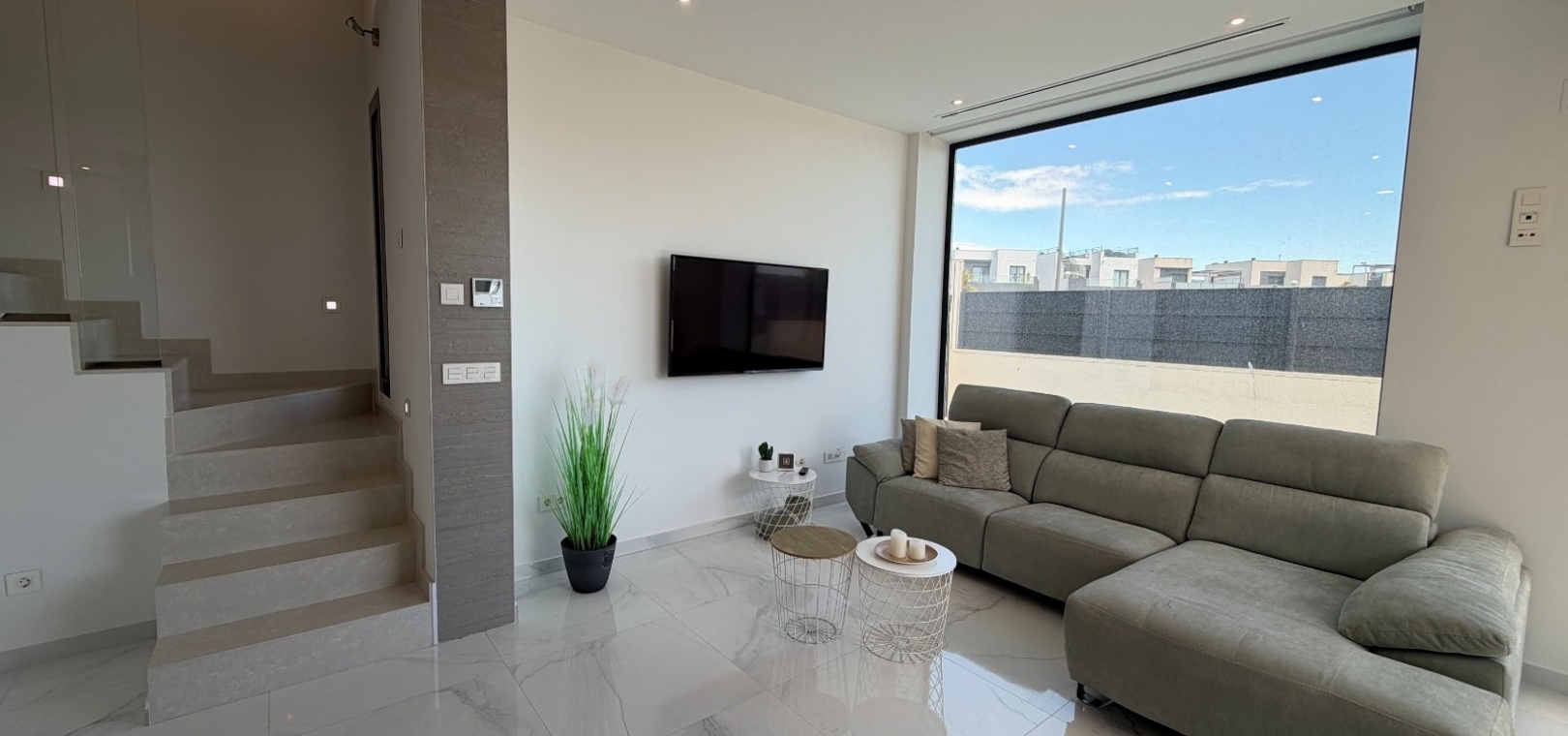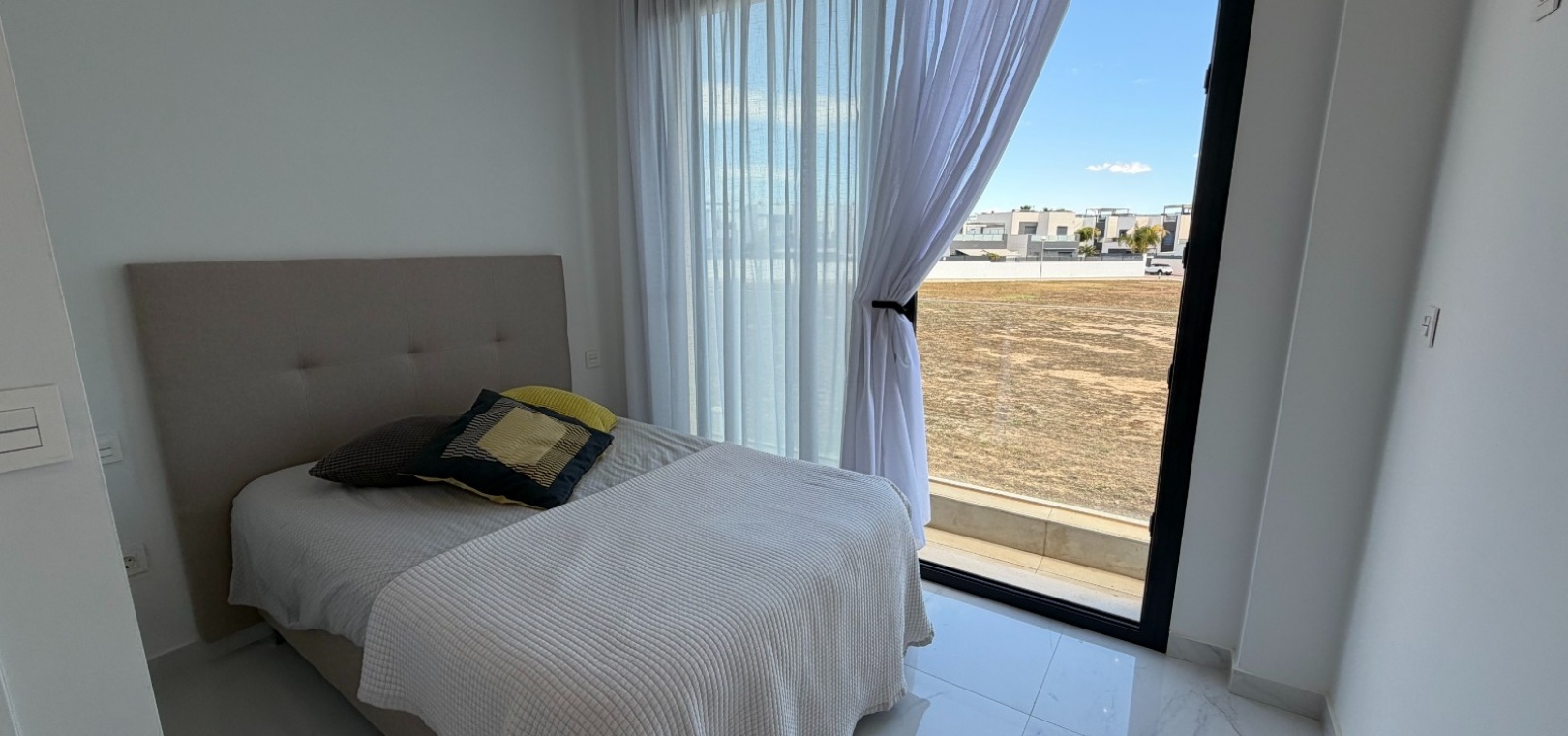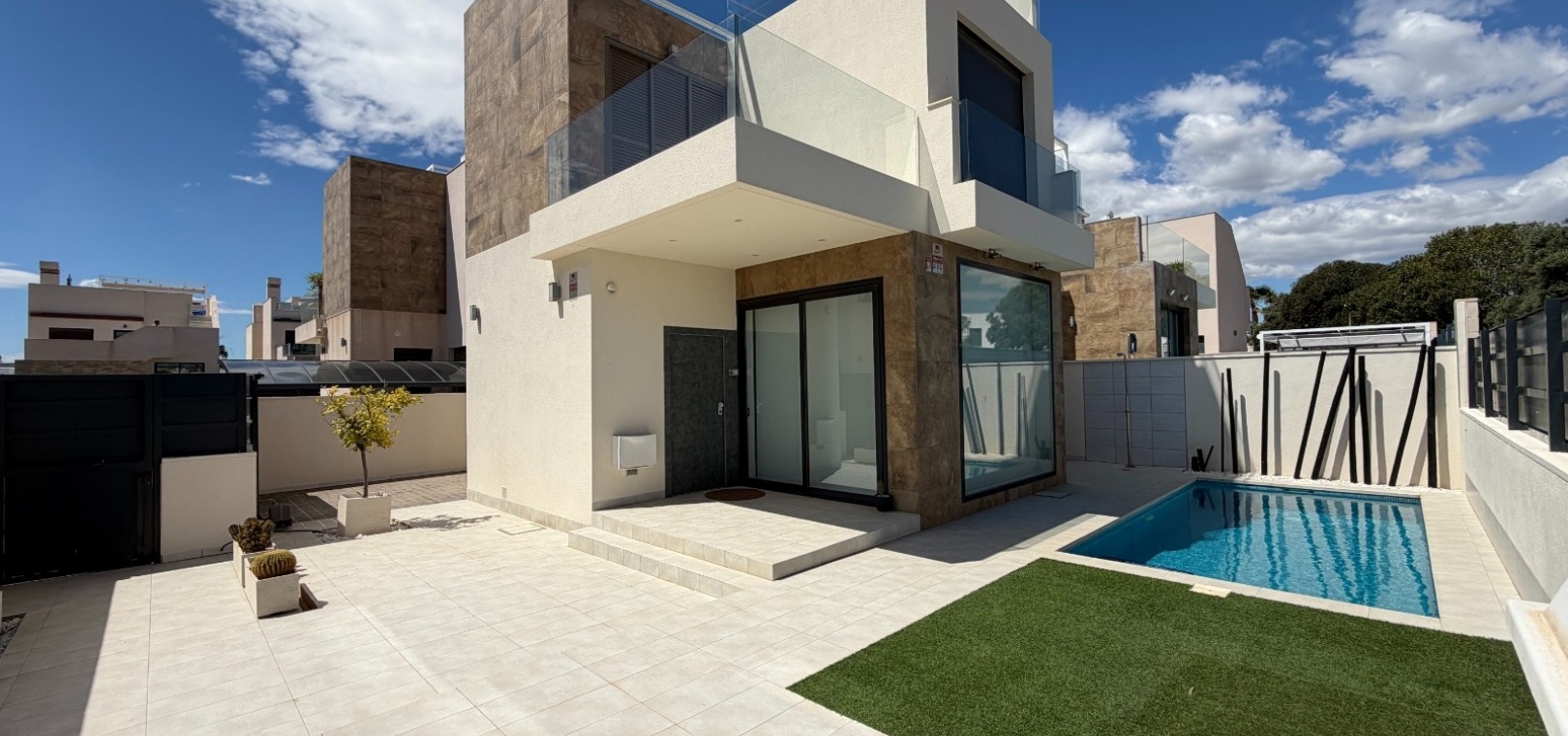 This modern-style three-bedroom, two-bathroom detached villa is located in the highly desirable area of Doña Pepa, within Ciudad Quesada, offering a blend of contemporary design and comfortable living.