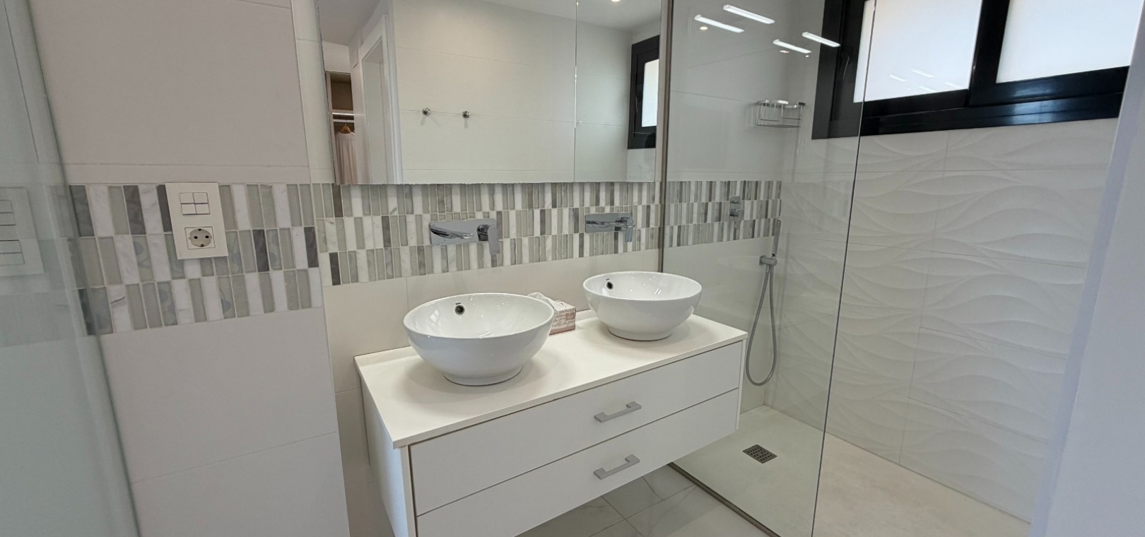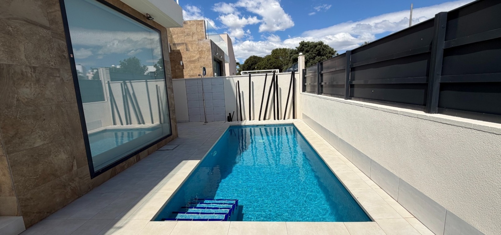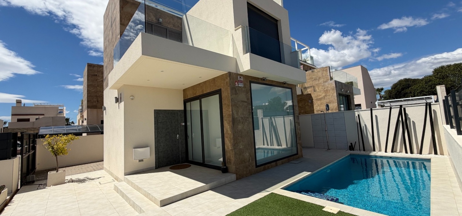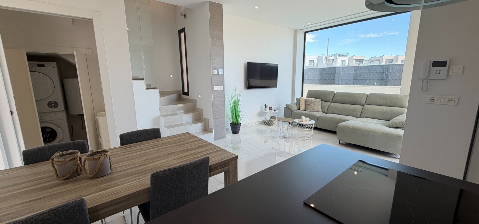 This modern-style three-bedroom, two-bathroom detached villa is located in the highly desirable area of Doña Pepa, within Ciudad Quesada, offering a blend of contemporary design and comfortable living.