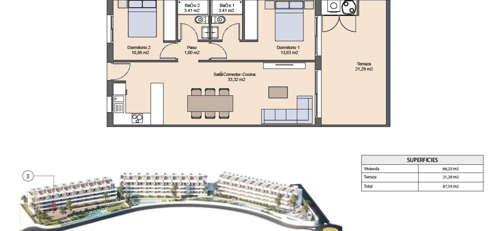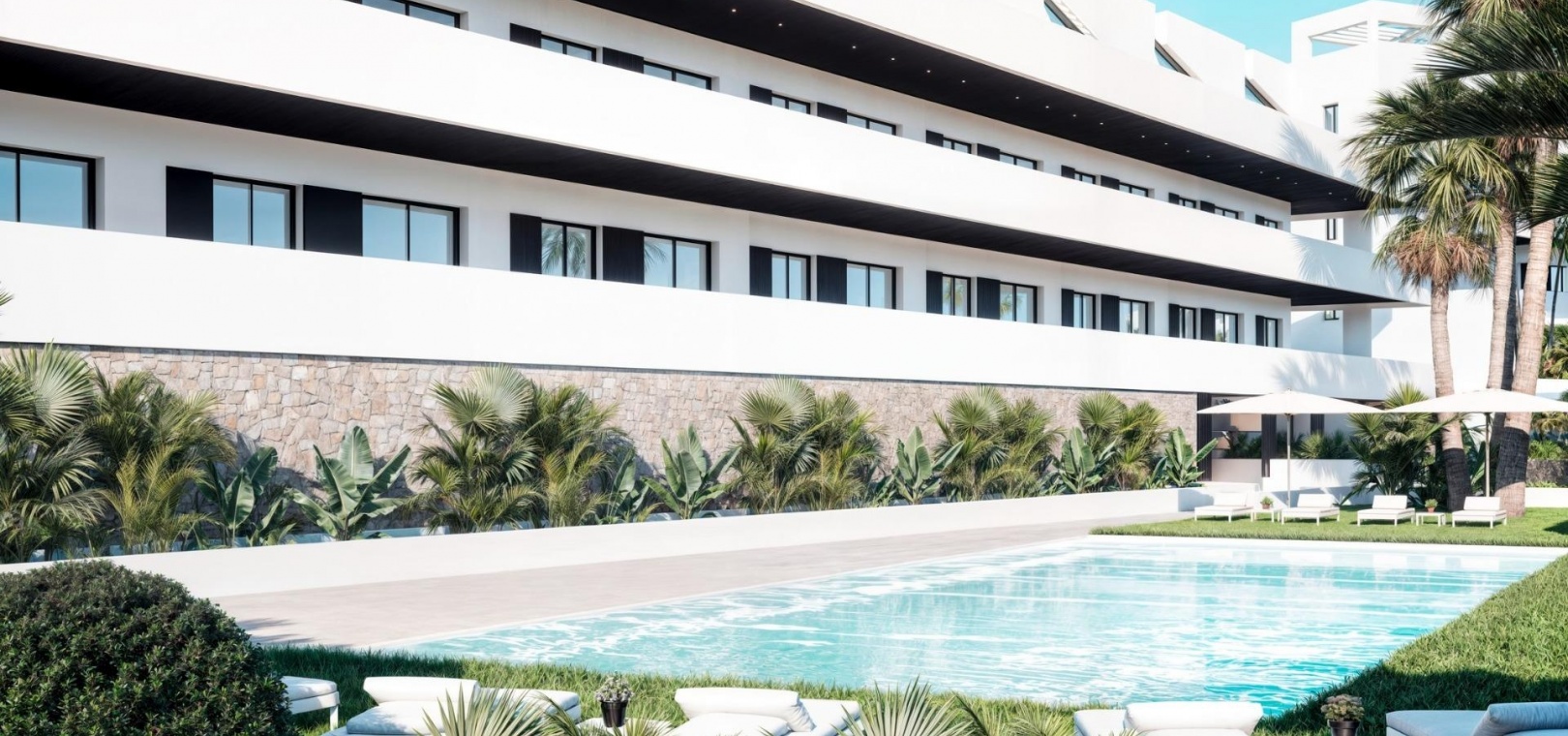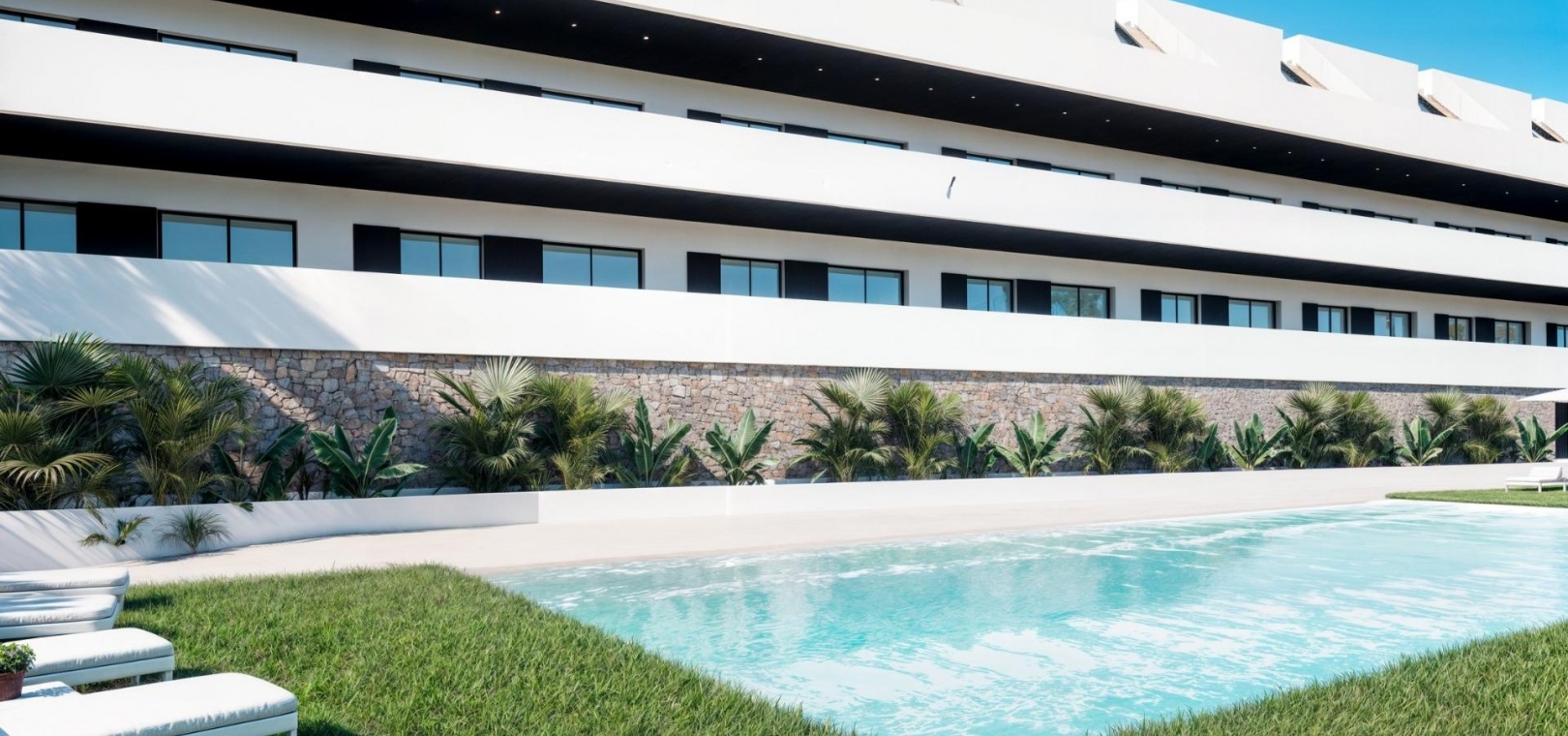 Discover a unique and luxurious new development in Finestrat, Alicante, offering an exclusive lifestyle on the Costa Blanca. This gated residential complex features 99 modern apartments with 2 bedrooms and 2 bathrooms, just 2.3 km from the beaches of Benidorm, with breathtaking views of the Mediterranean Sea and the city skyline.