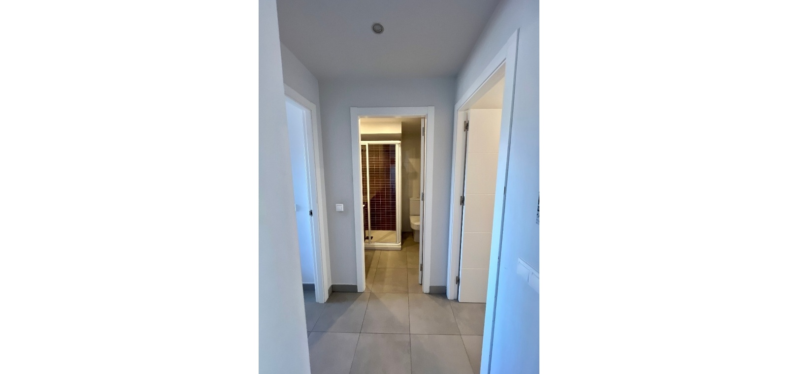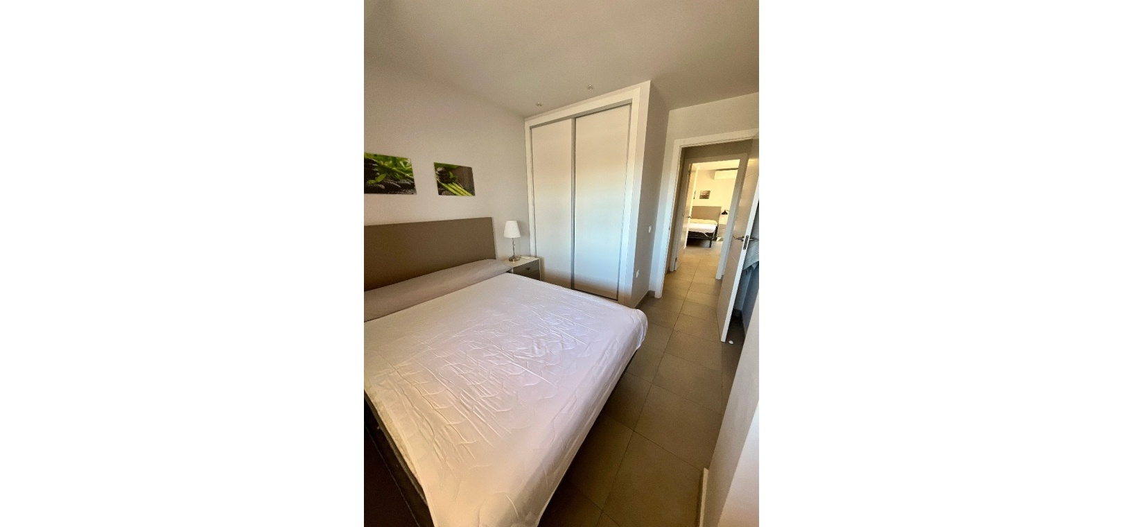 Accessed via a private entrance, the property opens into a welcoming hallway leading to two double bedrooms, including a master with en-suite bathroom, as well as a separate family bathroom. The layout flows into a bright open-plan kitchen, dining, and living area, designed for comfortable everyday living.