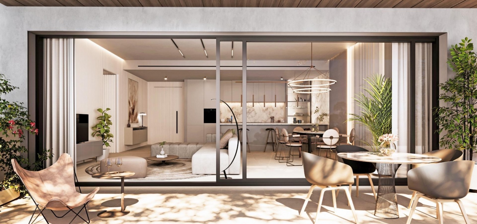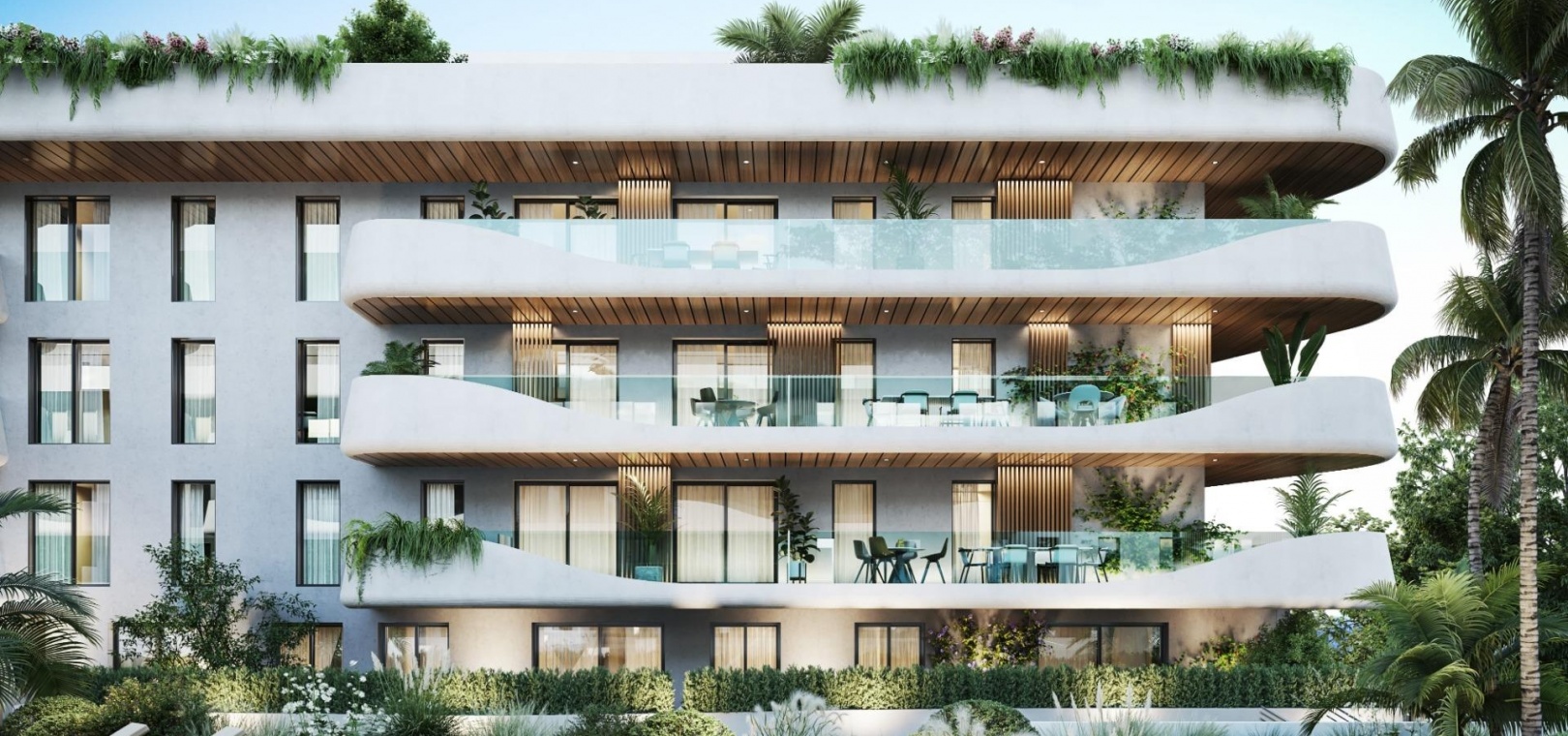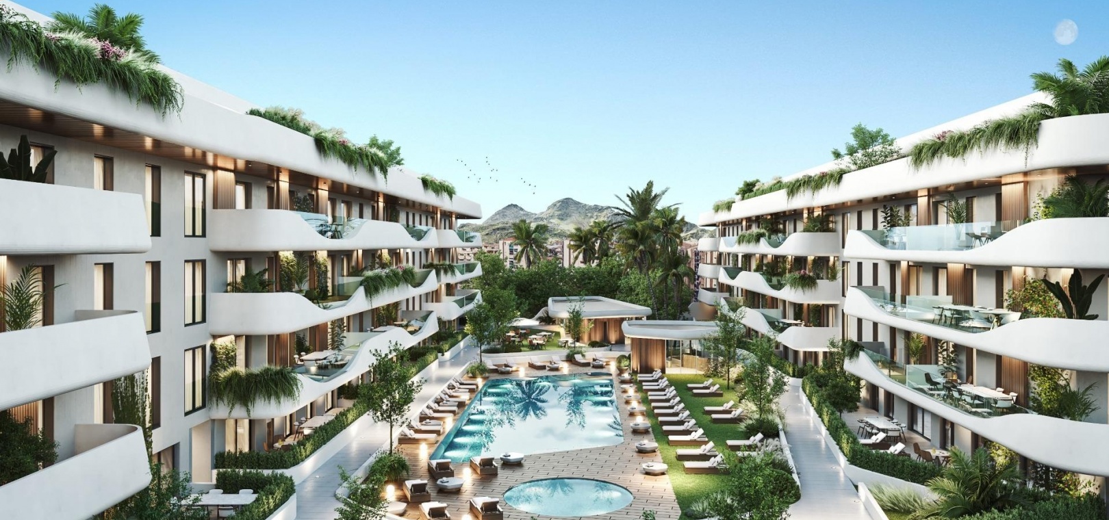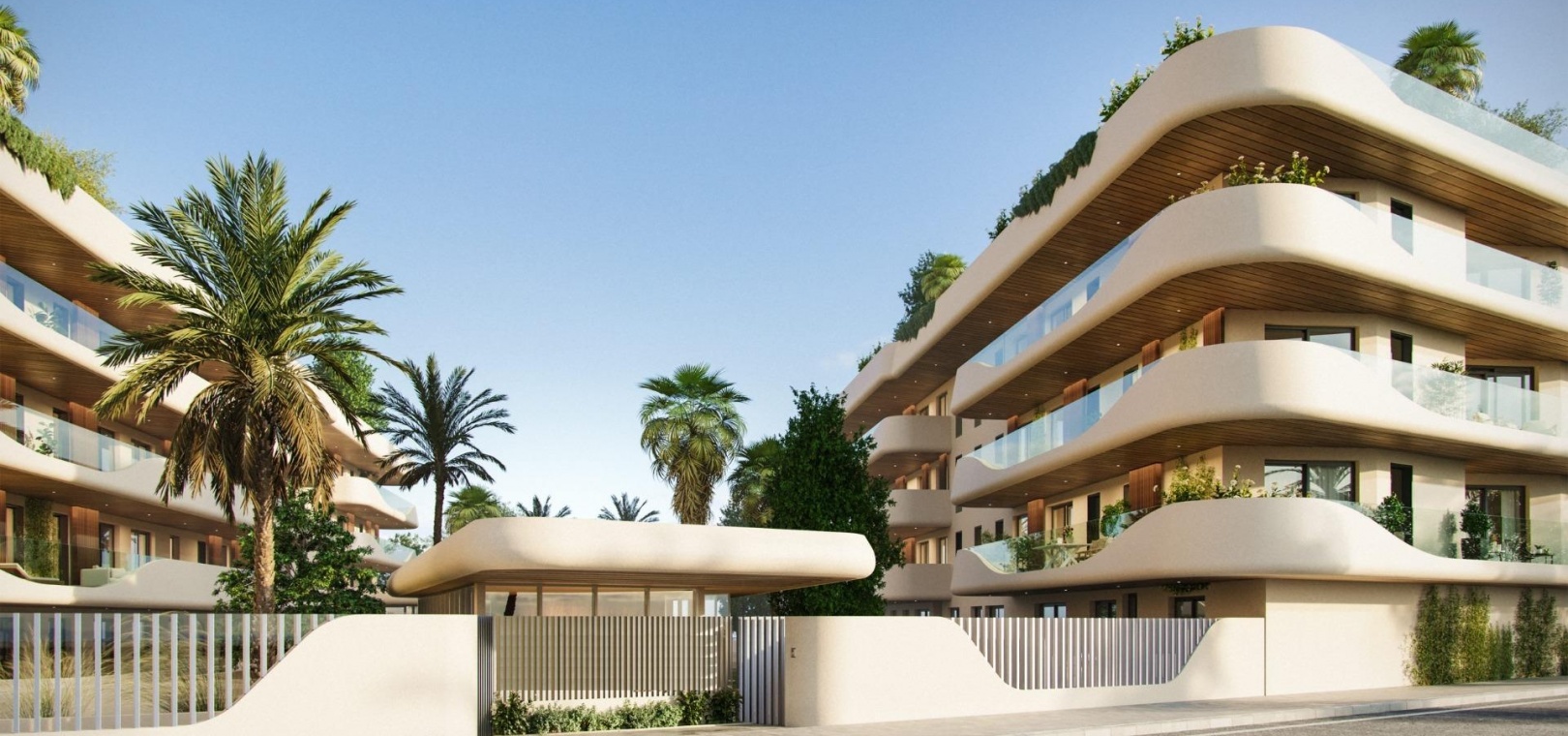 Exclusive complex of luxury flats. Flats and penthouses from 2 to 4 bedrooms, with spacious interiors of up to 195 m2 and fabulous terraces of up to 189 m2. Air conditioning by aerothermal heating, fitted kitchens, built-in wardrobes, generous dressing areas, spacious bedrooms with floor-to-ceiling windows leading to the terraces, so that your new home will be flooded with Mediterranean light. Homes that combine luxury and functionality, exemplifying excellence and a healthy, relaxed lifestyle.