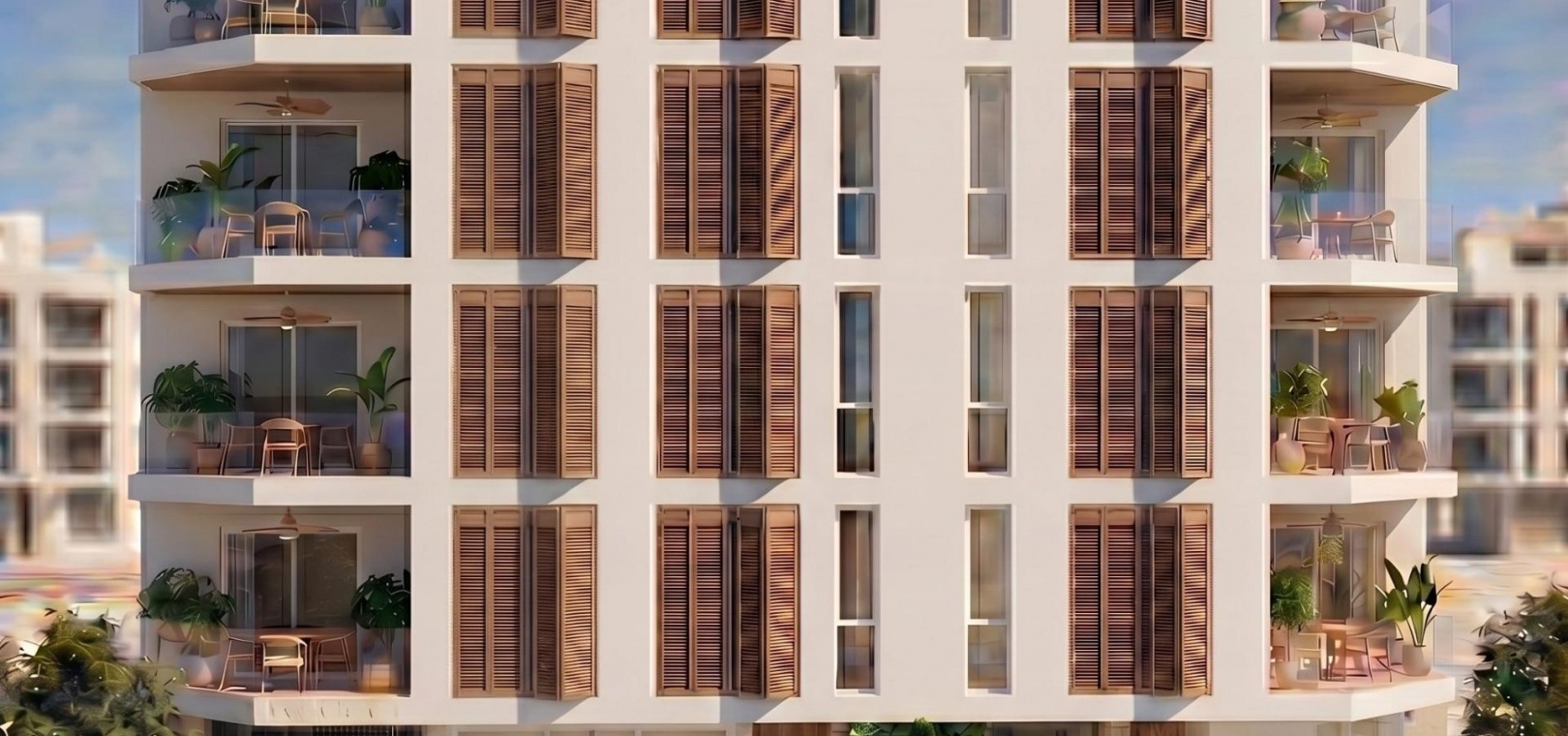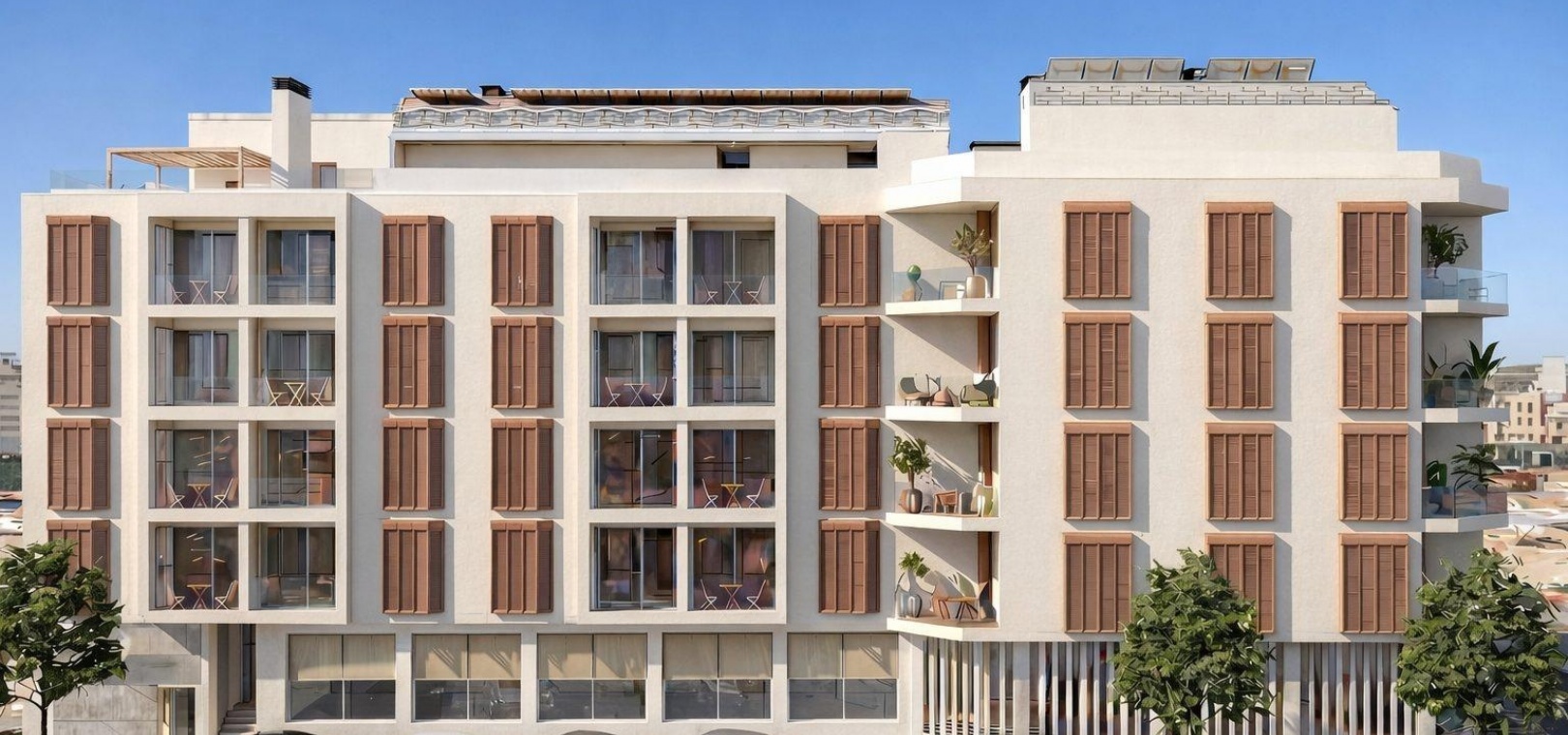 The development offers a variety of layouts to suit different needs. Buyers can choose between spacious studio apartments with 1 bathroom and terrace, or larger units with 2 bedrooms and 2 bathrooms, including an ensuite, all with private outdoor terraces. Each apartment has been carefully designed to maximize comfort, functionality and natural light.