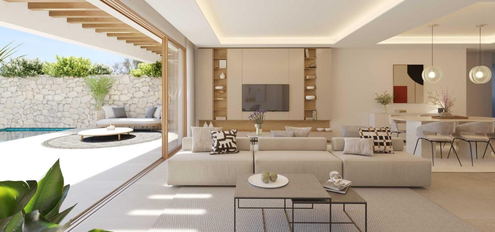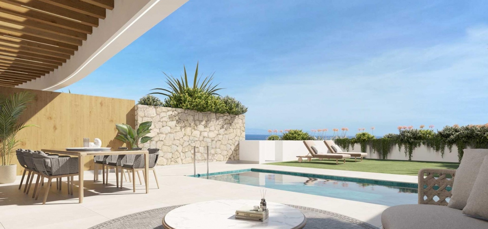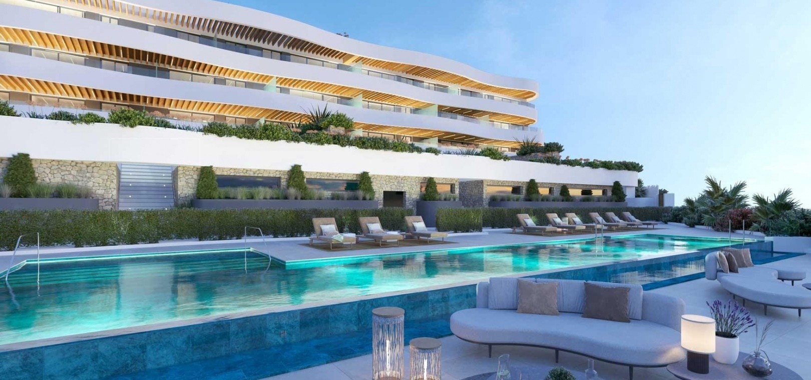 Exclusive project of 22 flats of 2 and 3 bedrooms. Its elevated position allows you to enjoy perfect views of the Mediterranean Sea. Penthouses with large terraces, and ground floor apartments with private garden and swimming pool. Large windows flood the interiors with natural light, equipped kitchen, home automation, air conditioning, air renewal system in all the homes, individual temperature regulation in each room, and underfloor heating powered by aerothermal energy.