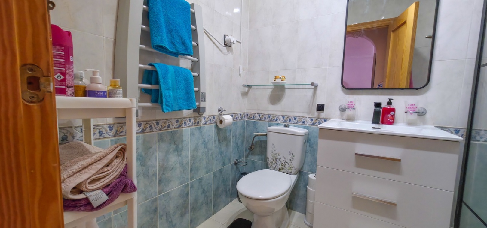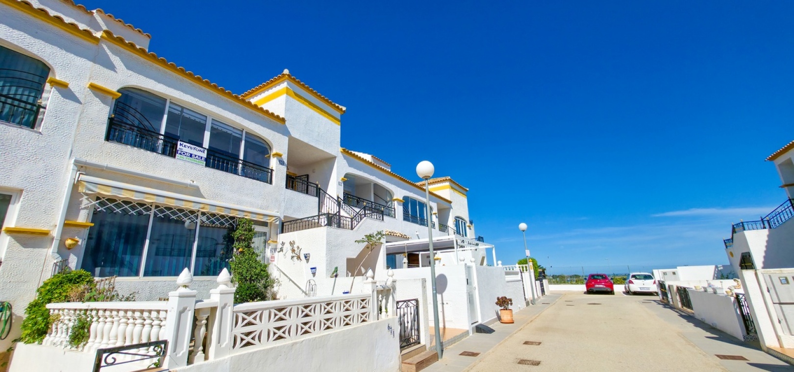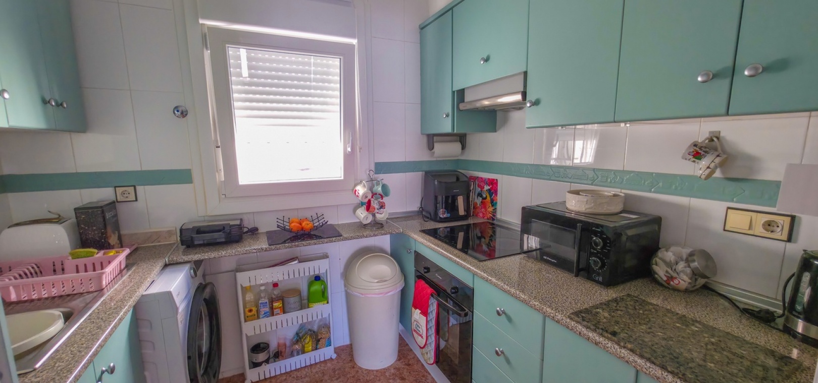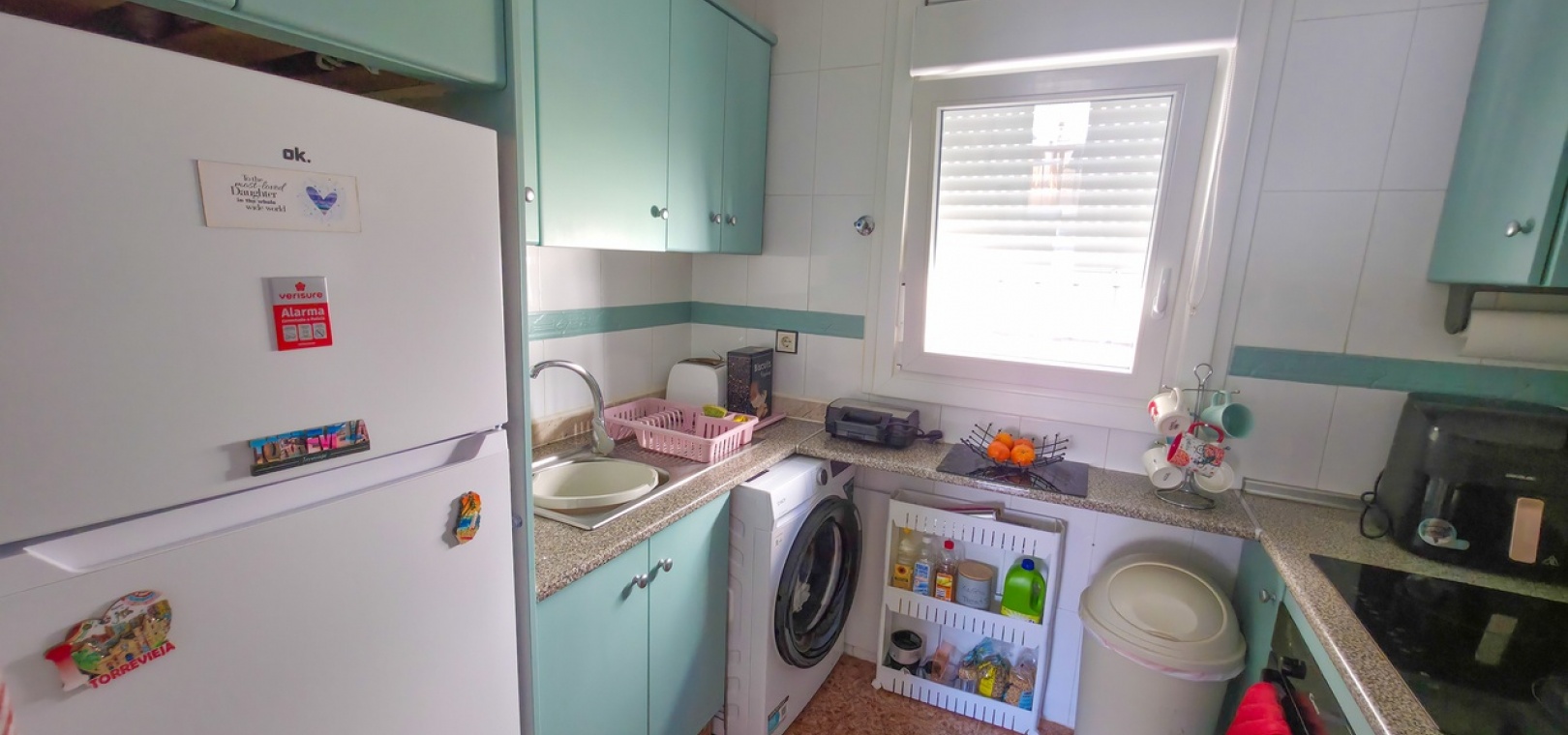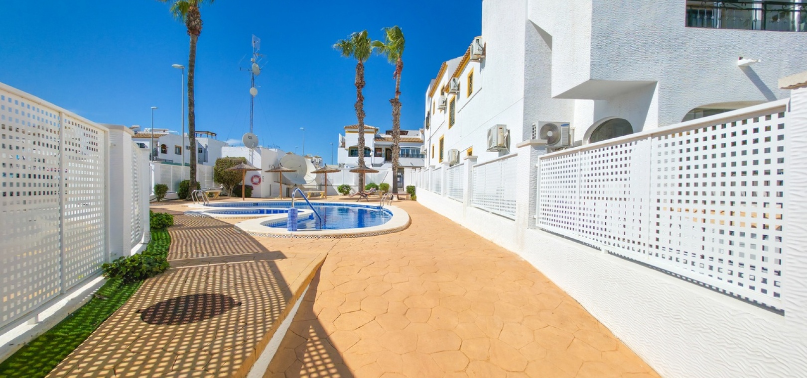 The standout feature is the private rooftop solarium, accessed via internal stairs from the terrace. This generous outdoor space offers open panoramic views and is perfect for sunbathing, entertaining, or unwinding after a day on the nearby Vistabella Golf Course. The solarium also includes a useful storage room and some outdoor furniture.