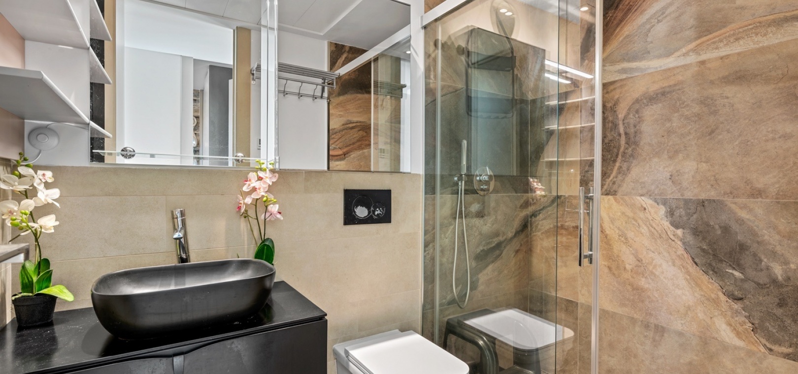 The property enjoys a privileged position with five ტერaces and balconies oriented in two directions, allowing for both sun and shade throughout the day. Its layout has been carefully designed to maximise light, functionality, and indoor-outdoor living.
