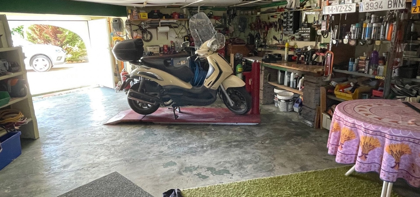 Underneath the house, you can drive your car into the spacious garage with workshop and storage areas!