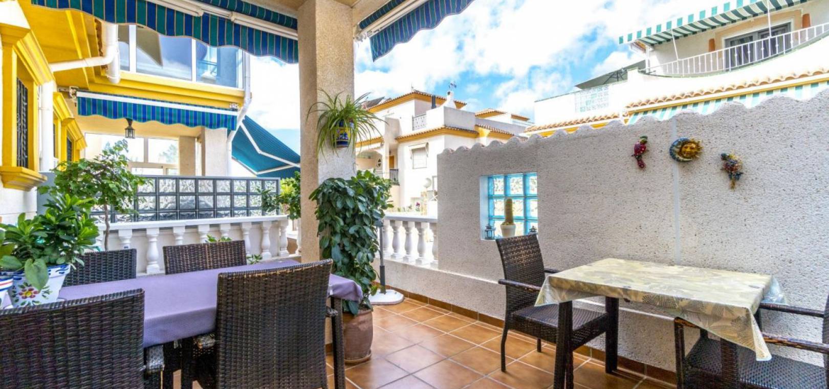 A South West facing 2 bed 1.5 bath quad house with a private rooftop solarium located in Res. Vistamar I, Playa Flamenca, Costa Blanca.