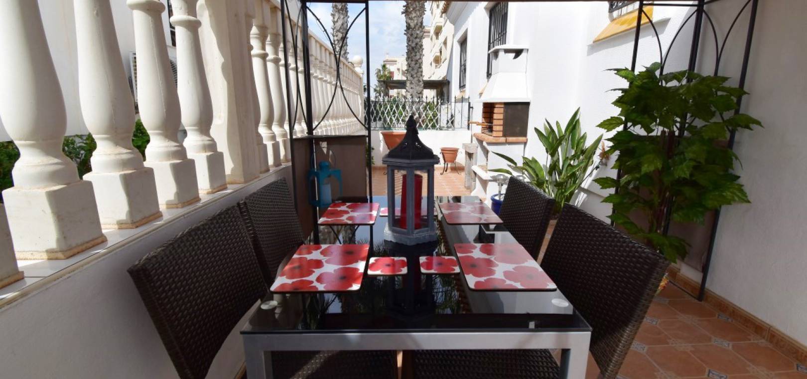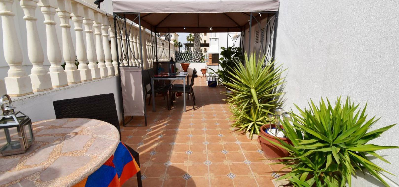 An East facing 2 bed 2 bath quad house with a private rooftop solarium located in Res Jumilla II, Playa Flamenca, Costa Blanca.