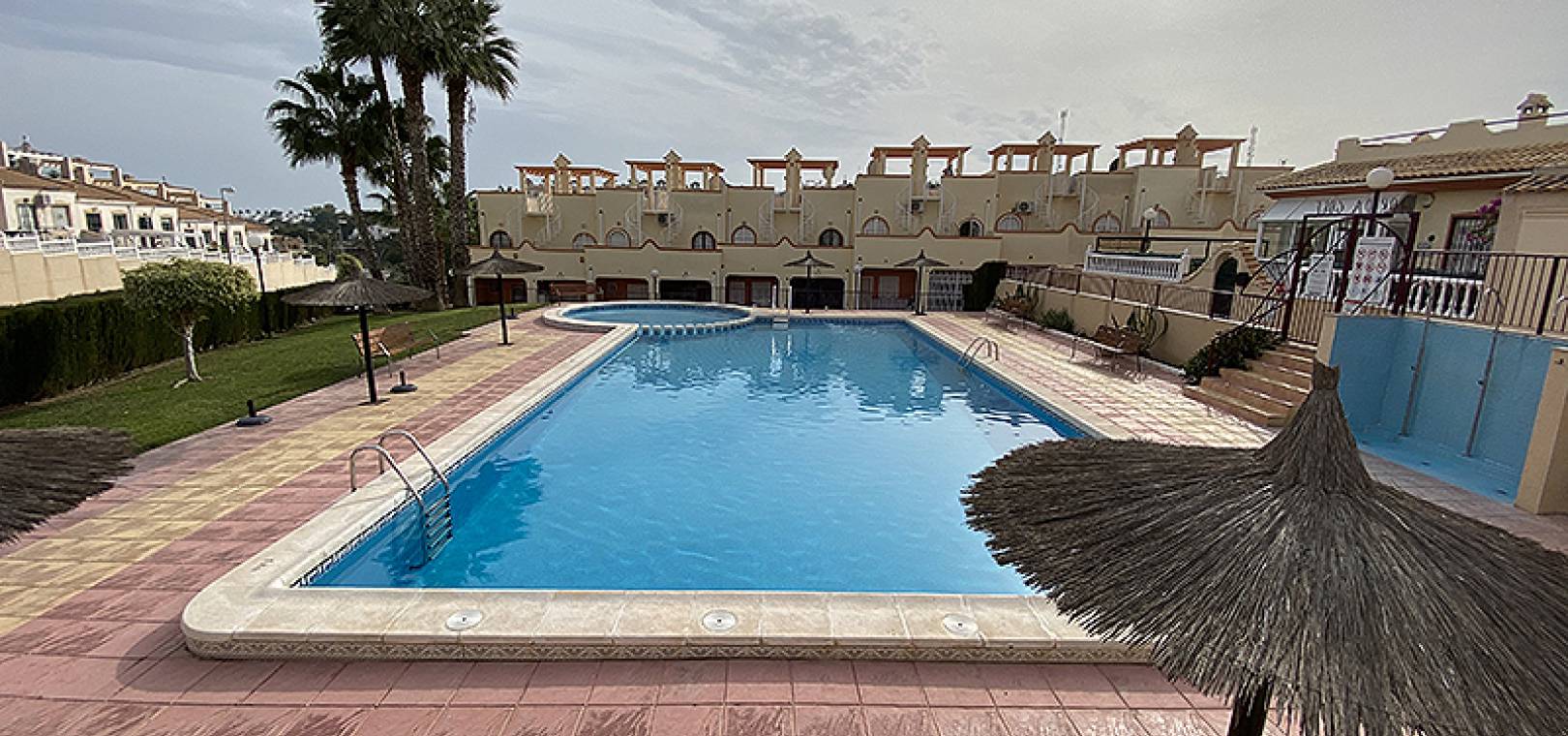A South West facing 2 bed 1.5 bath town house with a private rooftop solarium located in Res. Florida Golf, Villamartin, Costa Blanca.