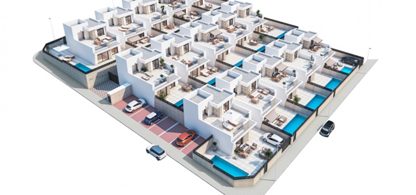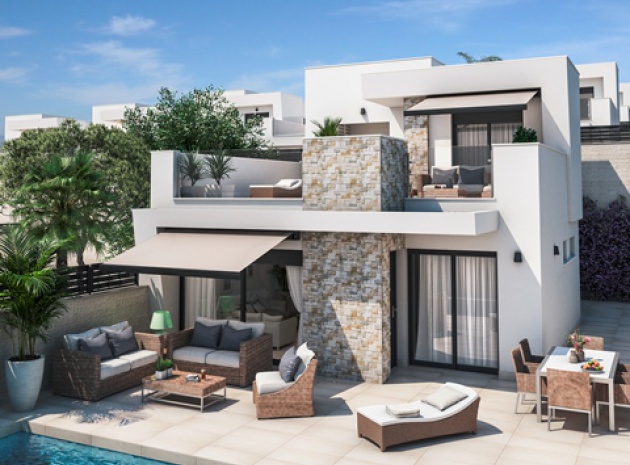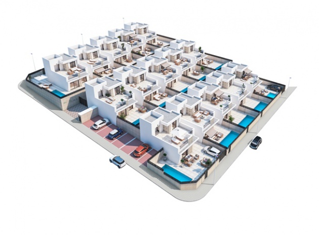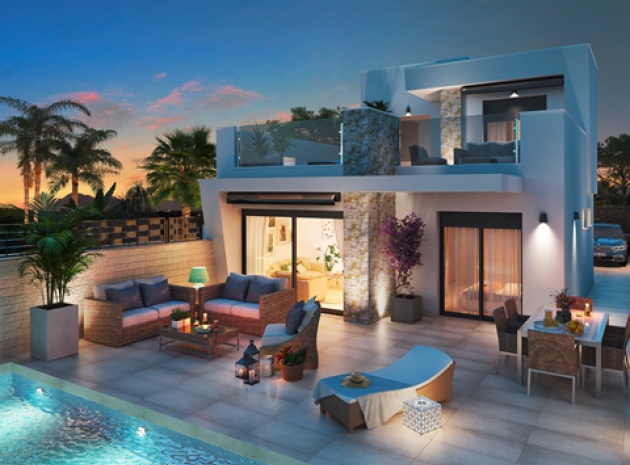 New Build Ultra Modern Design 3 bedroom, 2.5 bathroom semi detached Villas with private swimming pool located in Res. Marabu Lagoon, Dona Papa, Quesada, Costa Blanca.