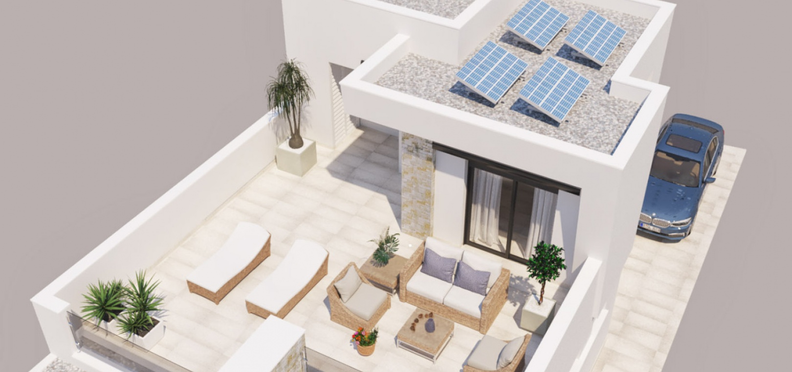 Lounge / diner, open plan modern fully fitted kitchen with extractor fan, 3 x bedrooms, 2 x bathrooms, 1 x W/C, private garden with driveway for off road parking, optional private swimming pool for 8,500 euros, private rooftop solarium, hot and cold A/C, interior & exterior lighting, solar panels for hot water, electric shutters, fully fitted bathrooms with shower screens & much more.