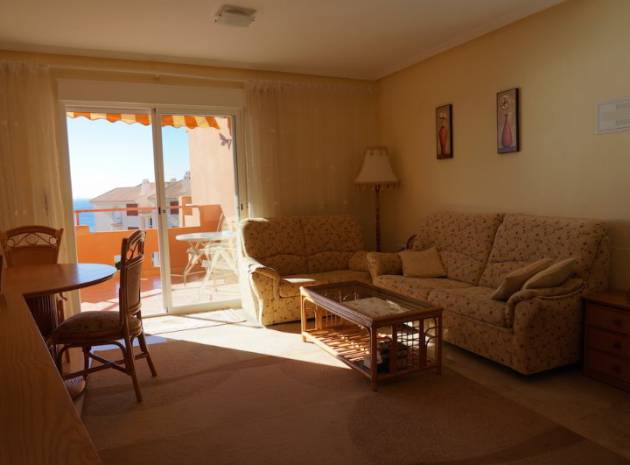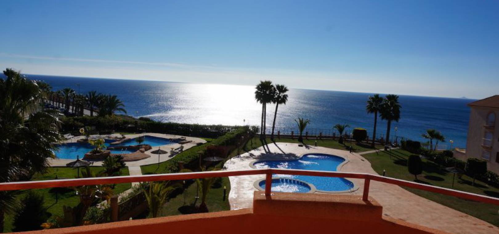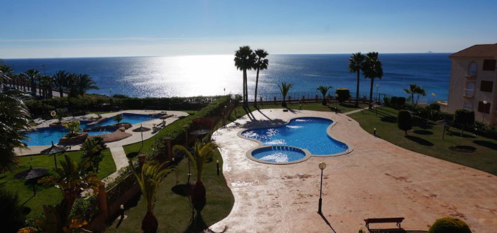 An East facing 2 bed 2 bath apartment with direct sea views located in Res. Las Calitas, Cabo Roig, Costa Blanca.