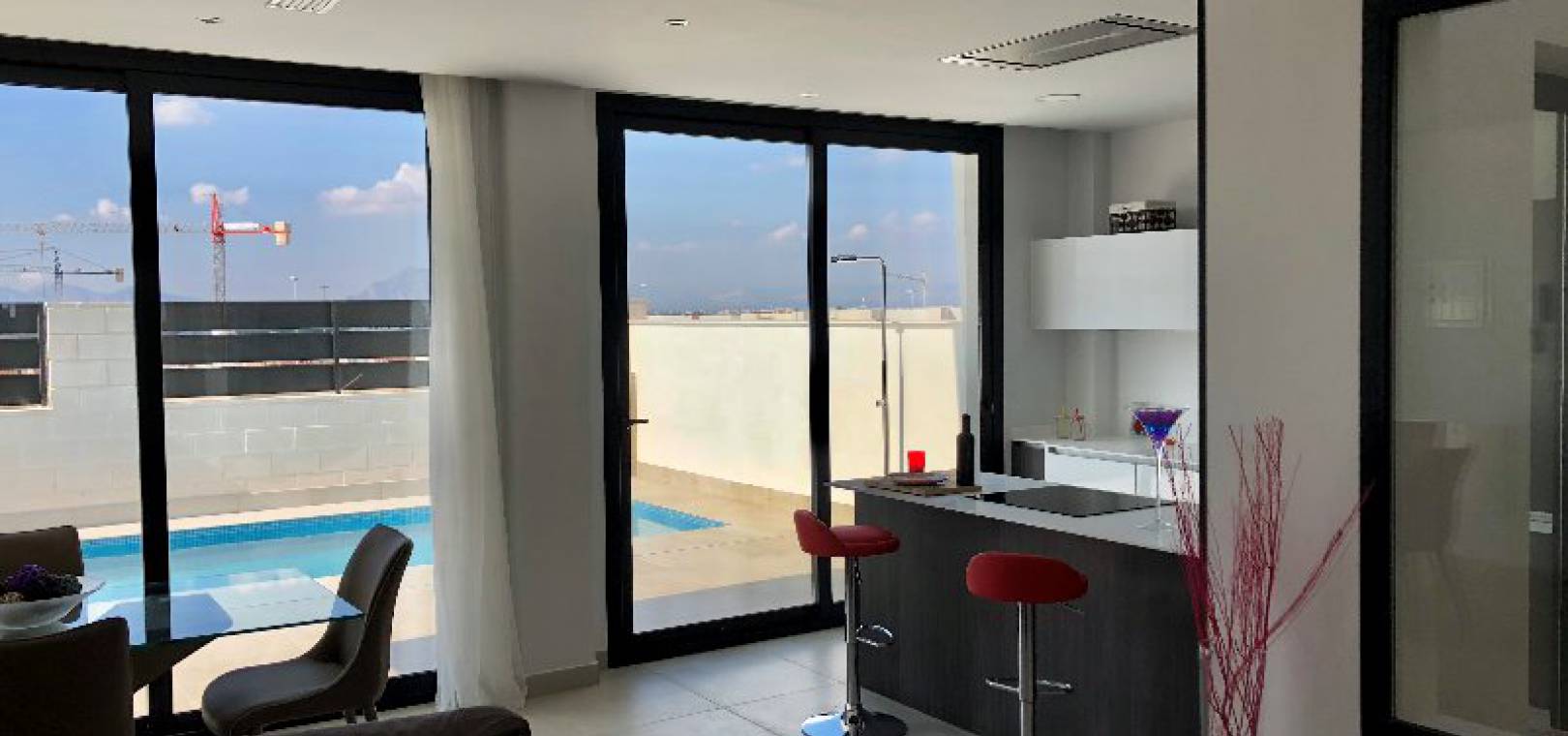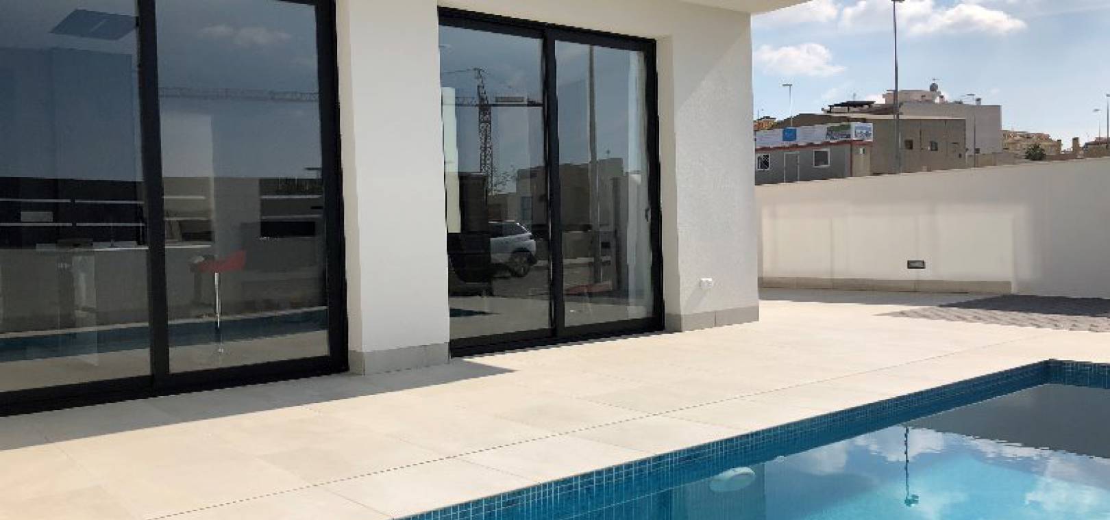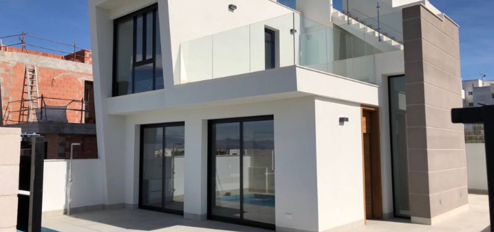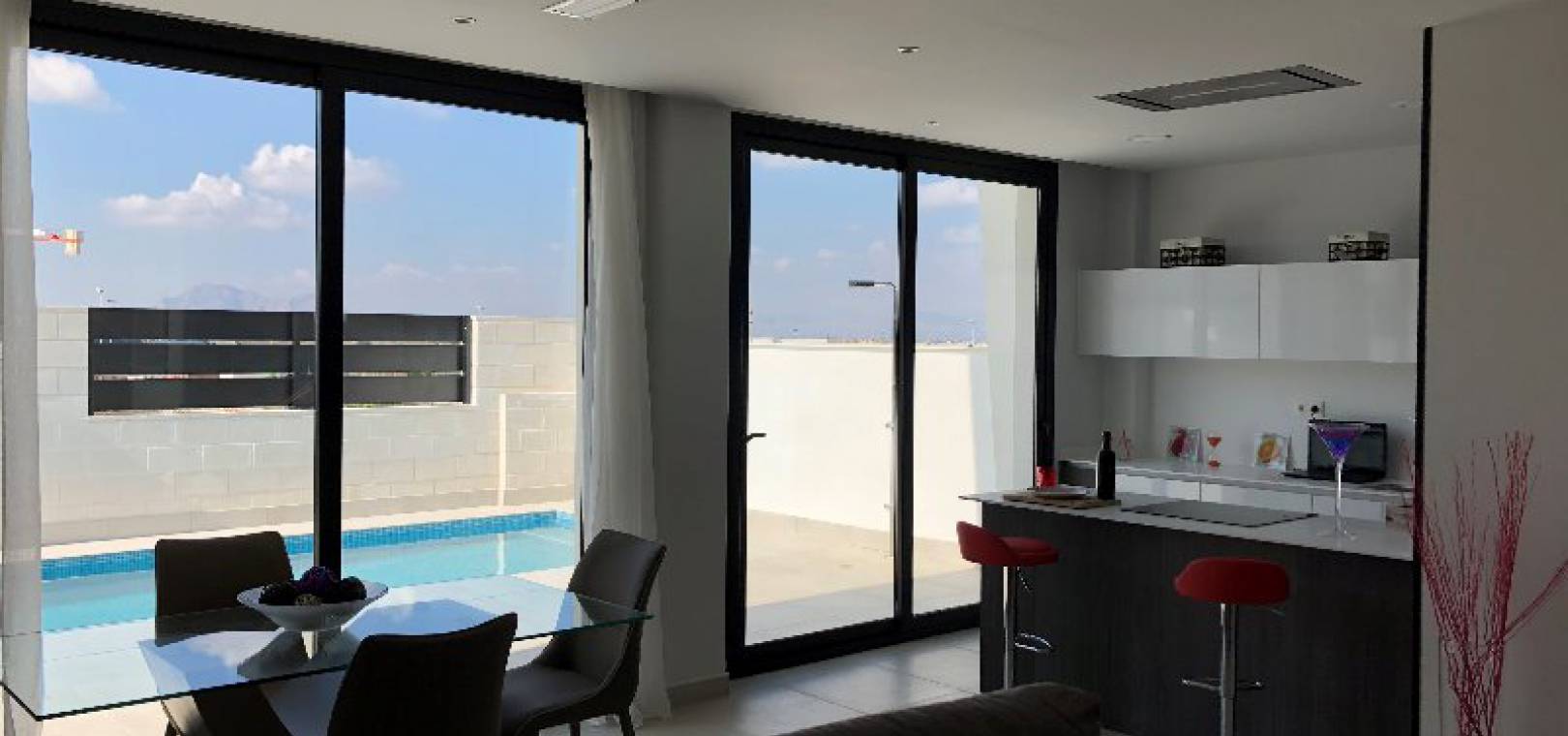 New build modern style 3 bed 2.5 bath detached villas with private swimming pools located in Res. Entre Olivos, situated on the edge of Benijofar village, Costa Blanca.