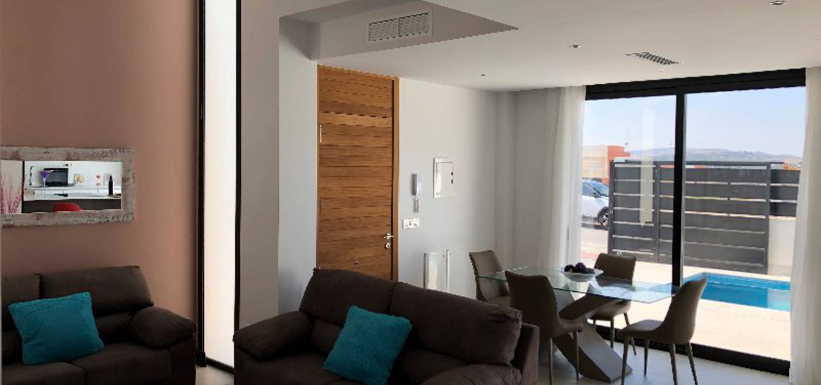 Lounge / diner, open plan fitted kitchen with white goods, 3 x double bedrooms, 2 x bathrooms, 1 x W/C, garden, private solarium, driveway for off road parking, private swimming pool, LED light package, hot & cold A/C & much more.