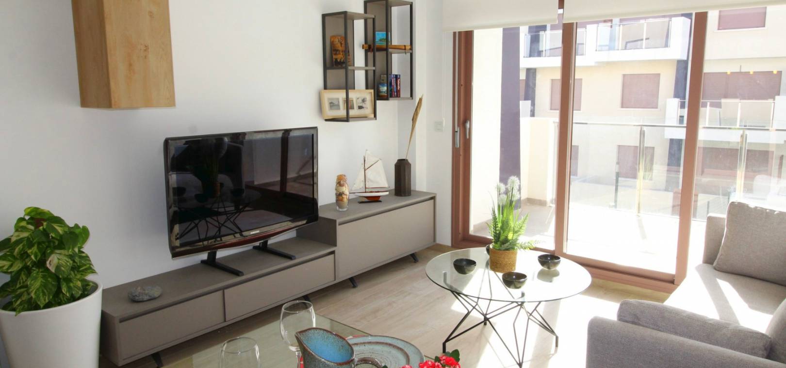 En ultramodern 2 sovrum 2 badrum 1: a våningen hörn lägenhet belägen i Res. Bianca Beach, Mil Palmeras, Costa Blanca. Virtuell visning tillgänglig på denna fastighet! Denna härliga fastighet ligger bara några minuters promenad från stranden och består mycket kort av följande:- Res. Bianca Beach består av totalt 104 lägenheter. Inbyggda block med 3 nivåer och varje block har hiss. Denna fastighet stod klar i december 2020 och har aldrig bott i så säljs i utmärkt skick och fullt möblerad. Det finns en ljus och luftig solstol/matsal, öppen planlösning med fullt utrustat kök, 2 x dubbelrum med inbyggda garderober, 2 x duschrum , norrläge främre terrass, söderläge bakre terrass med utsikt över den härliga gemensamma poolen och trädgårdarna, barnparken och mycket mer. Denna fastighet ligger bara några minuters promenad till stranden och lokala barer, butiker och restauranger. Denna fastighet ligger bara 30 minuters bilresa från Corveras flygplats och 50 minuters bilresa från Alicantes flygplats. * Alla möbler eller elektriska föremål (inklusive luftkonditioneringsenheter) som ingår i rean säljs som begagnade föremål utan garanti. All information ges endast som vägledning *