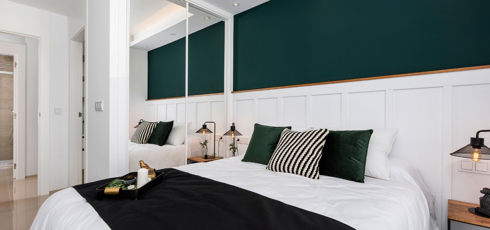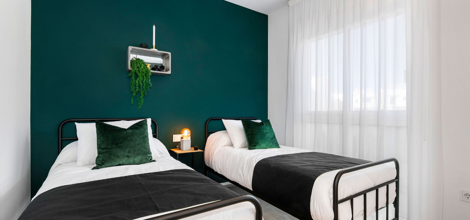 4 lägenheter på översta våningen och 4 lägenheter på bottenvåningen. De främre bottenvåningslägenheterna har en uppfart för off-road parkering och de bakre lägenheterna har utsikt över den gemensamma poolen.