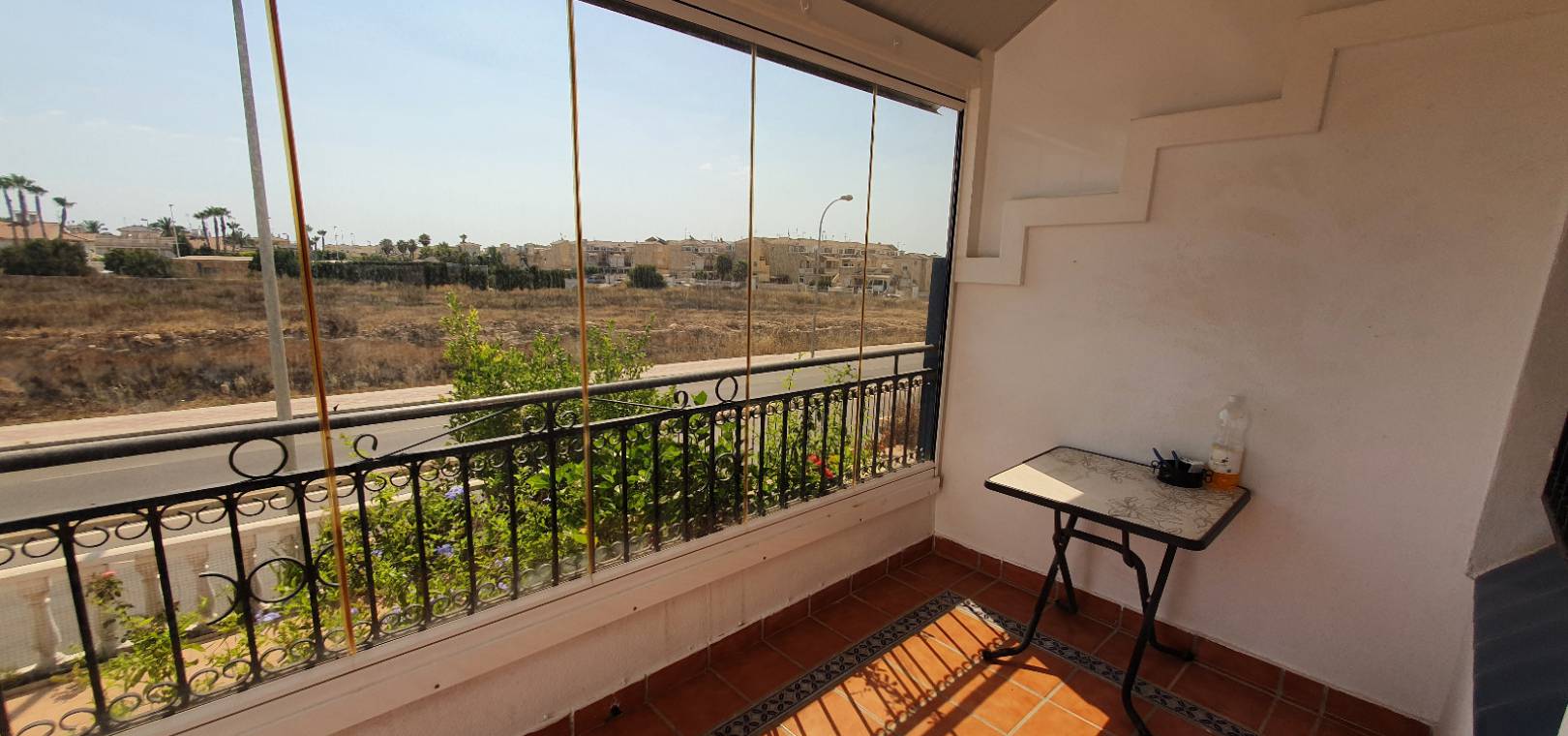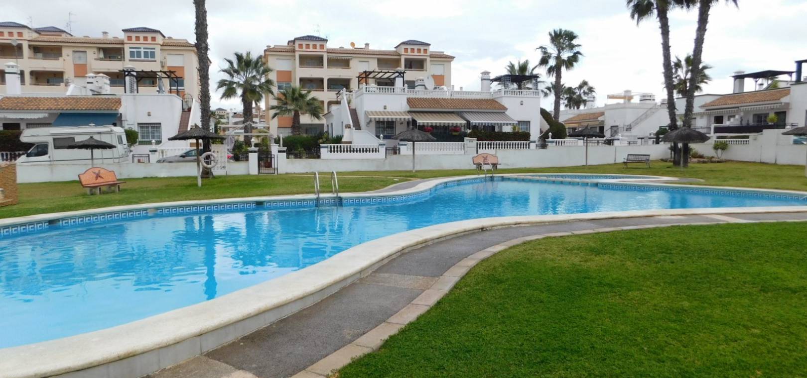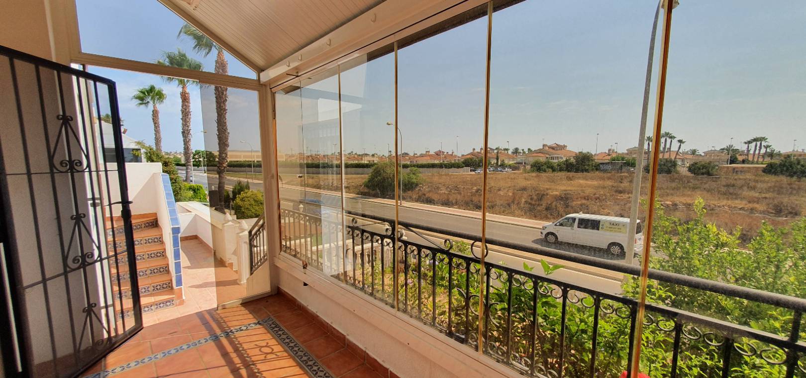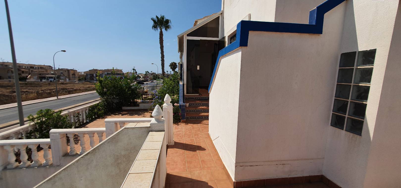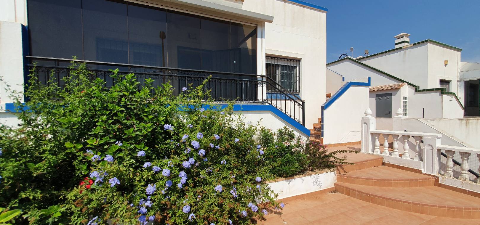 En österläge 2 sovrum 2 badrum Lola stil bungalow med en privat takterrass ligger i Res Jumilla II, Playa Flamenca, Costa Blanca. Denna underbara fastighet erbjuds till salu i gott skick och består mycket kort av följande: - Vardagsrum / matrum med en öppen spis, varm och kall luftkonditionering, ett separat kök, 2 x dubbelrum med inbyggda garderober, det största sovrummet har eget duschrum och 1 x familjebadrum. Utanför finns en täckt och glaserad terrass, privat takterrass, helkaklat trädgård och sidoträdgård med bilport och en gemensam pool. Den här fastigheten ligger bara några minuters promenad från Playa Flamenca Commercial Center där du hittar många stormarknader, butiker, barer och restauranger etc. Vackra gyllene sandblå flaggstränder finns i närheten av Playa Flamenca-stranden och även vid Punta Prima, La Zenia och Cabo Roig. Det finns också en bra busservice (var 30: e minut), som länkar området med alla de viktigaste kustområdena som Torrevieja och Alicante till norr och Cartagena och Mar Menor i söder. Shopping: köpcentret Zenia boulevard ligger mindre än 5 minuters bilresa från fastigheten. Murcia International Corvera flygplats ligger 35 minuters bilresa och Alicante flygplats ligger 50 minuters bilresa.