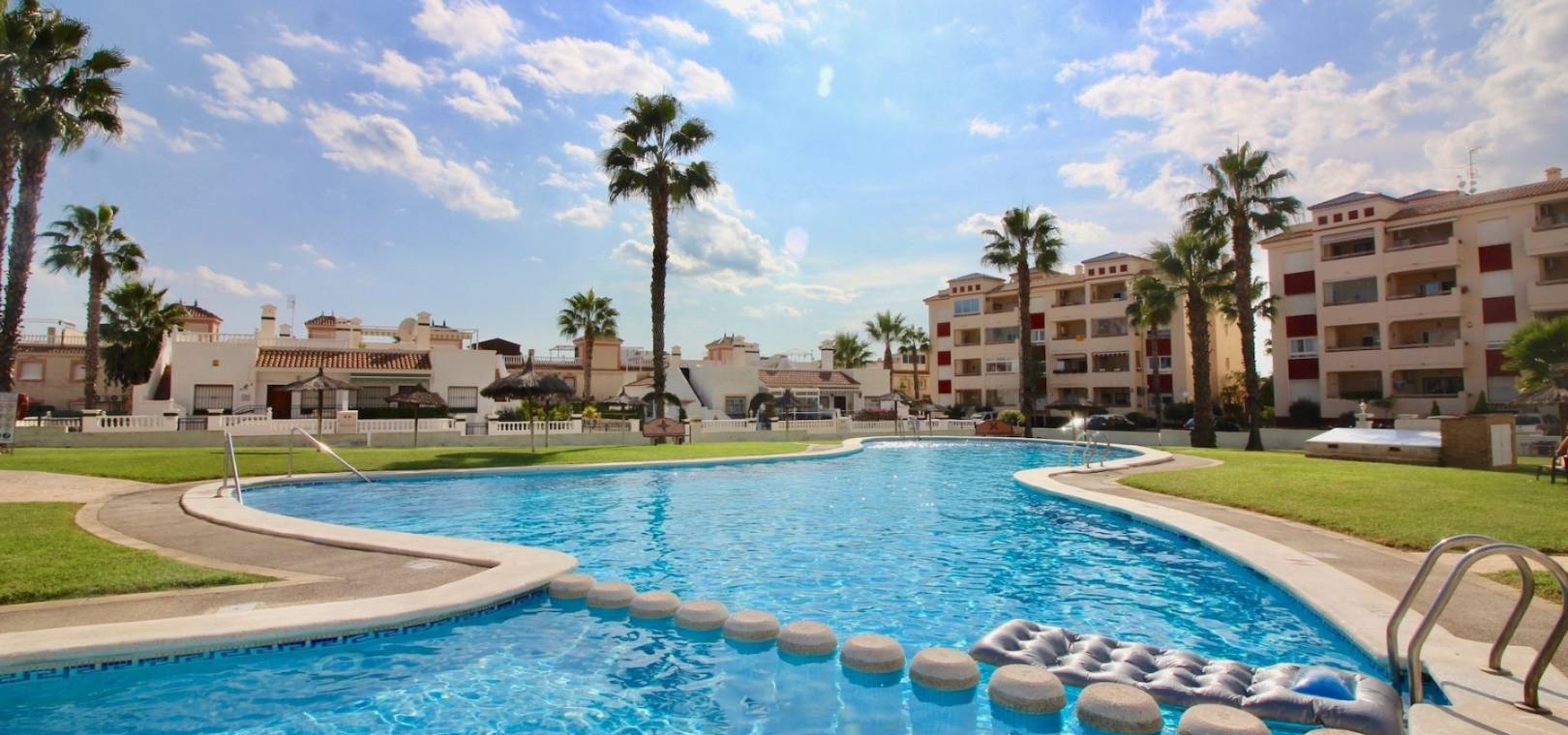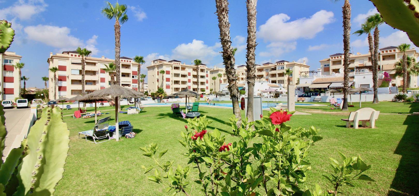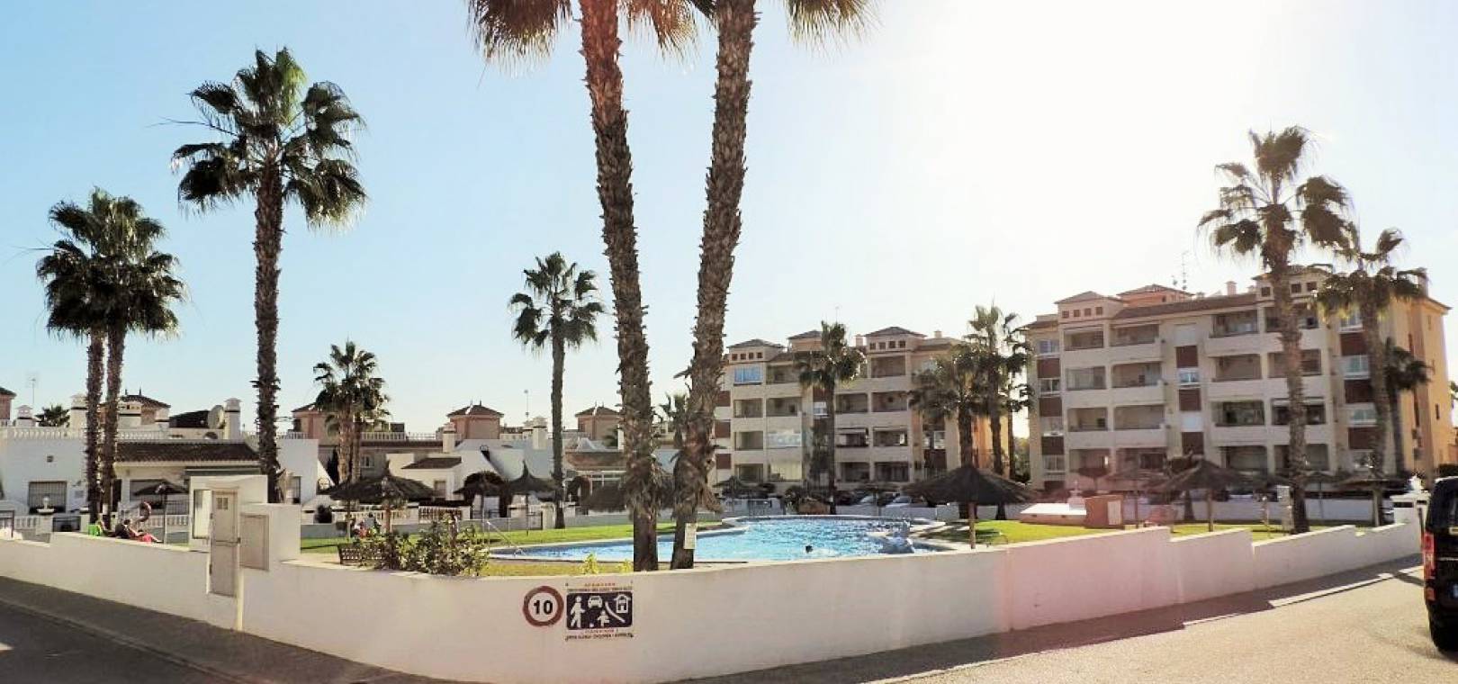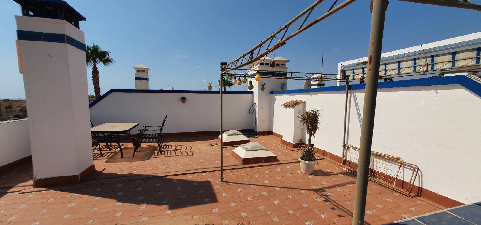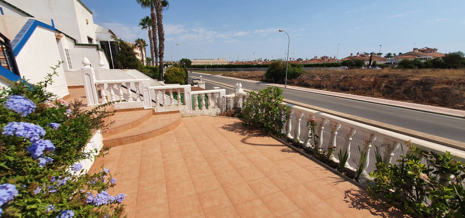 En österläge 2 sovrum 2 badrum Lola stil bungalow med en privat takterrass ligger i Res Jumilla II, Playa Flamenca, Costa Blanca. Denna underbara fastighet erbjuds till salu i gott skick och består mycket kort av följande: - Vardagsrum / matrum med en öppen spis, varm och kall luftkonditionering, ett separat kök, 2 x dubbelrum med inbyggda garderober, det största sovrummet har eget duschrum och 1 x familjebadrum. Utanför finns en täckt och glaserad terrass, privat takterrass, helkaklat trädgård och sidoträdgård med bilport och en gemensam pool. Den här fastigheten ligger bara några minuters promenad från Playa Flamenca Commercial Center där du hittar många stormarknader, butiker, barer och restauranger etc. Vackra gyllene sandblå flaggstränder finns i närheten av Playa Flamenca-stranden och även vid Punta Prima, La Zenia och Cabo Roig. Det finns också en bra busservice (var 30: e minut), som länkar området med alla de viktigaste kustområdena som Torrevieja och Alicante till norr och Cartagena och Mar Menor i söder. Shopping: köpcentret Zenia boulevard ligger mindre än 5 minuters bilresa från fastigheten. Murcia International Corvera flygplats ligger 35 minuters bilresa och Alicante flygplats ligger 50 minuters bilresa.