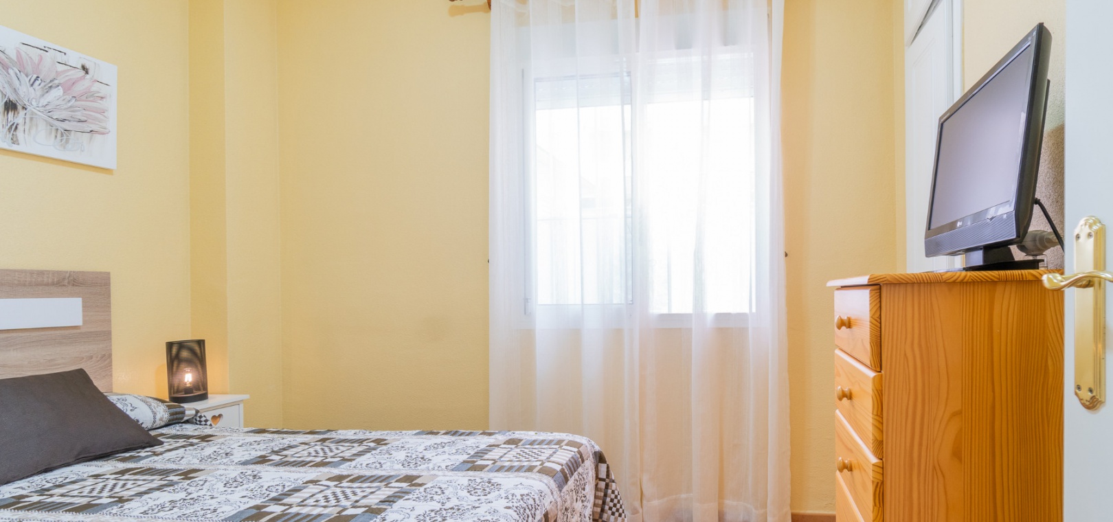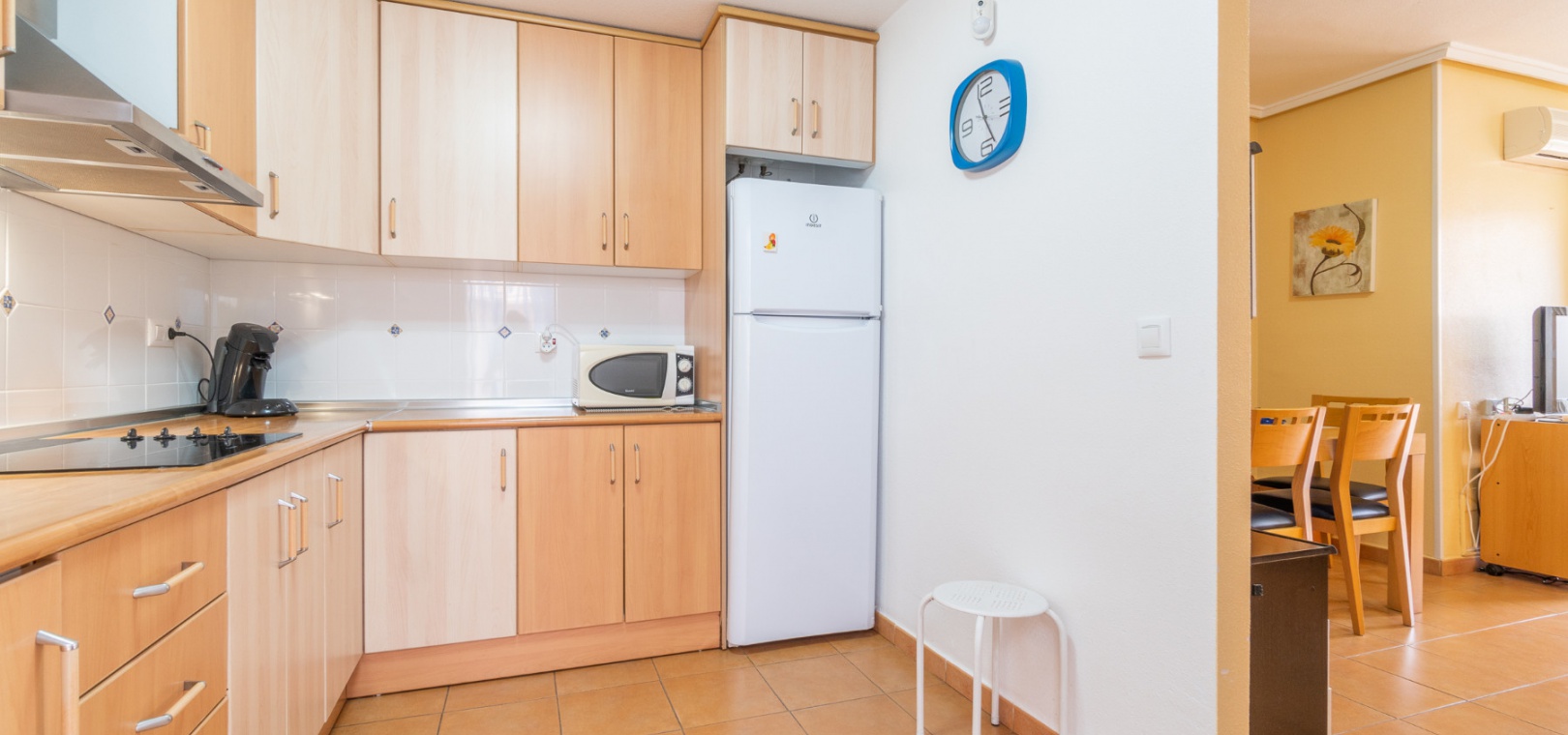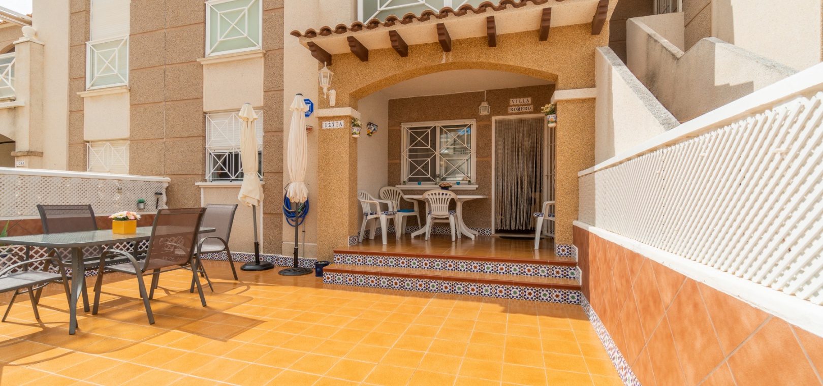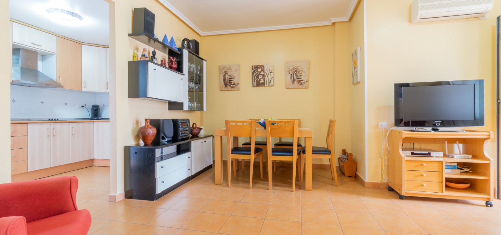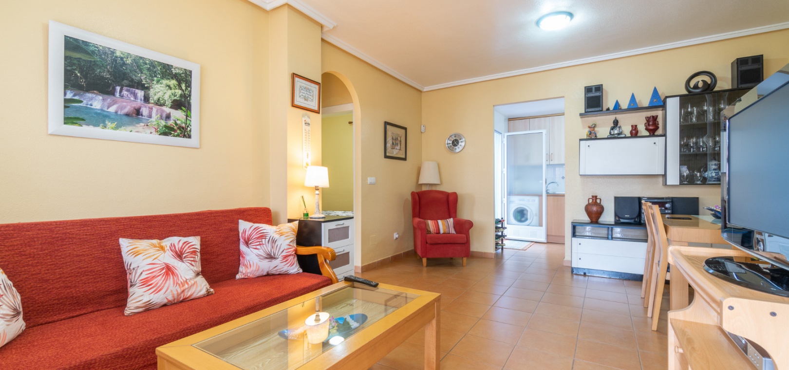 En lägenhet med 2 sovrum och 1 badrum på bottenvåningen i Altos de la Bahia, Torrevieja, Costa Blanca Denna fastighet erbjuds till salu i mycket gott skick. Det säljs möblerat och består mycket kort av följande:- Lounge/matrum med varm och kall A/C, separat fullt utrustat kök, bakre bruksutrymme, 2 x dubbelrum med inbyggda garderober, 1 x familjebadrum, terrass , trädgård, gemensam pool, gemensam parkering och mycket mer. Denna fastighet ligger cirka fem minuters bilresa till en blå flaggstrand med barer och restauranger. Köpcentret Habaneras och Carrefour ligger mindre än 10 minuters bilresa bort och det går regelbunden buss till centrala Torrevieja och La Mata. Alicante flygplats ligger cirka 35 minuters bilresa bort.