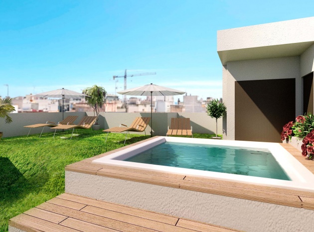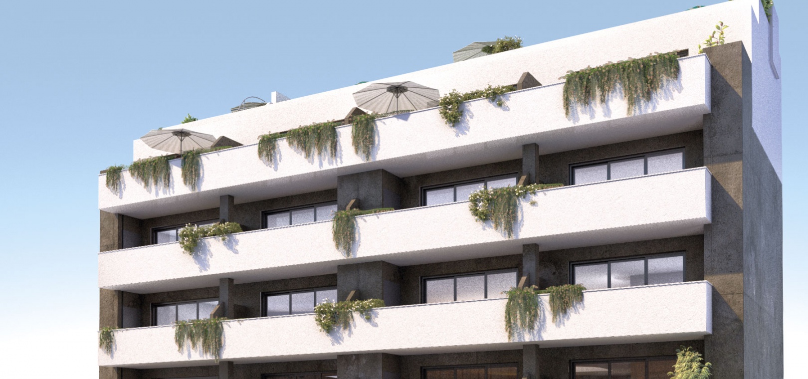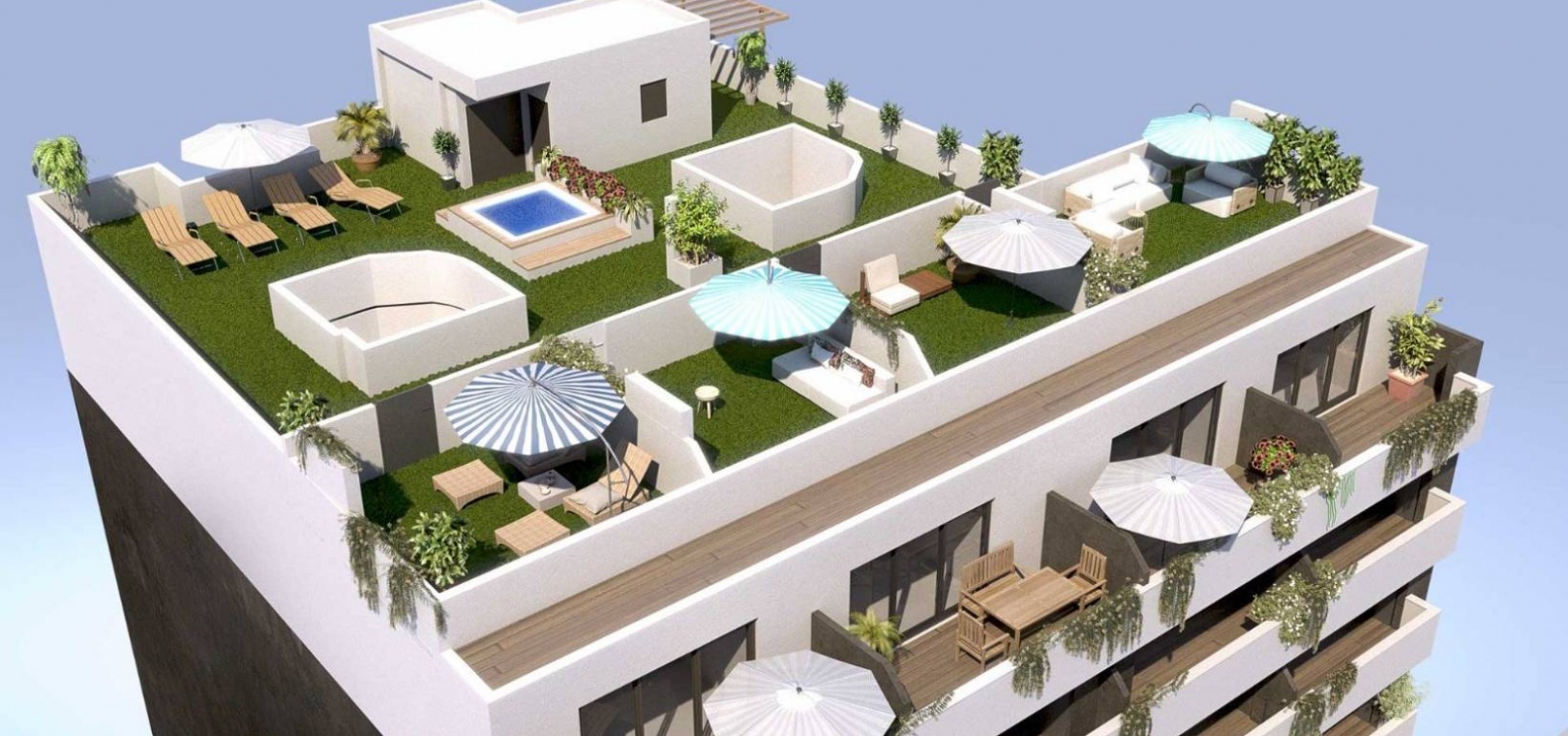 Helt nya ultramoderna 3 sovrum 2 badrum lägenheter bara 300 meter från havet i Torrevieja, Costa Blanca.