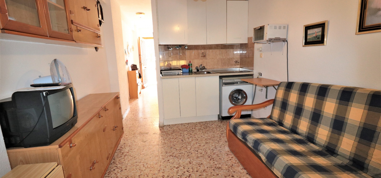 En lägenhet i söderläge med 1 sovrum och 1 badrum bara 100 meter från stranden i Cabo Cervera, La Mata, Costa Blanca. Denna fastighet säljs i gott skick, möblerad och består mycket kort av följande:- Vardagsrum/matrum, kök i öppen planlösning, 1 x dubbelrum, 1 x familjebadrum, inglasad balkong utanför loungen och mycket mycket mer. Denna underbara fastighet ligger 100 meter från den fantastiska La Mata -stranden och bara några minuters promenad till lokala barer och restauranger. Alicante flygplats ligger cirka 30 minuters bilresa bort.
