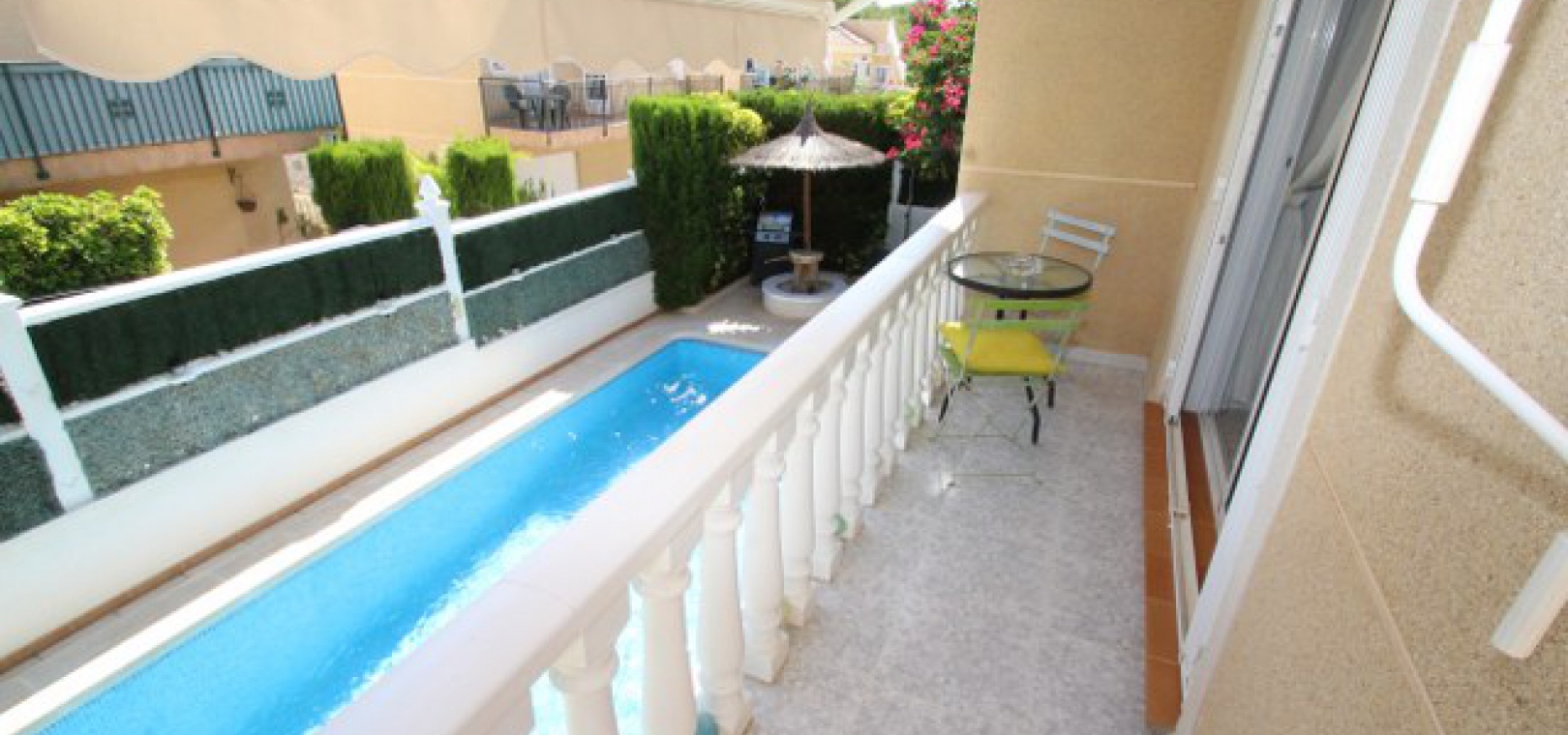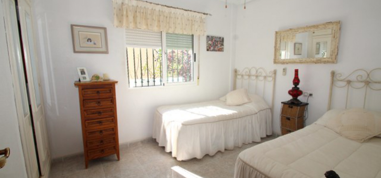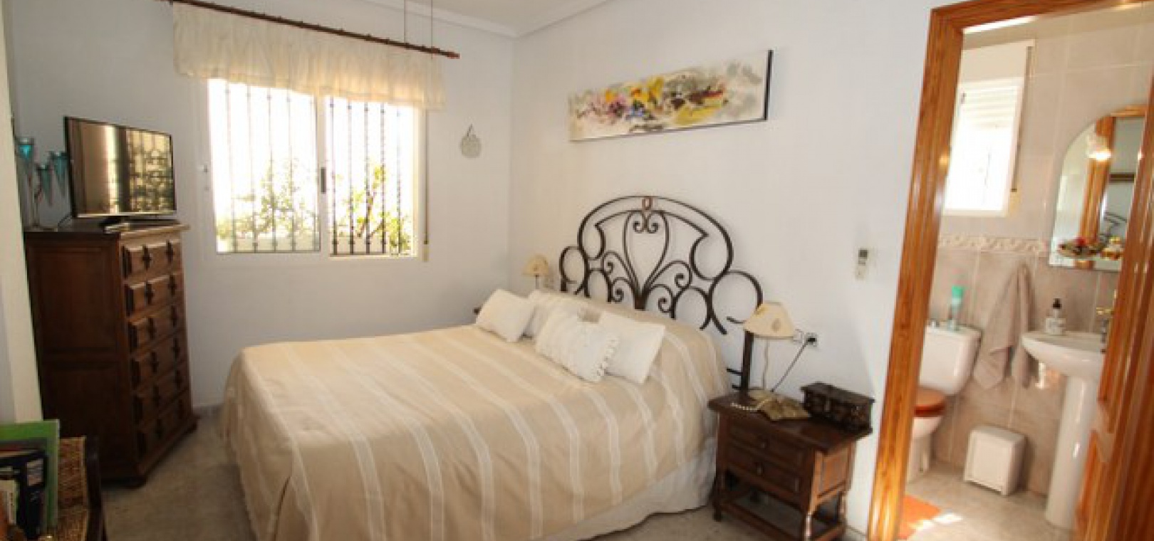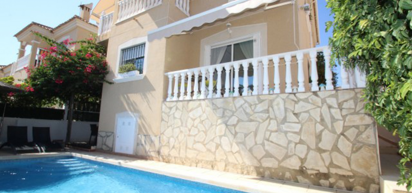 En villa i söderläge med 3 sovrum och 3 badrum med privat pool i Monte Golf, Villamartin, Costa Blanca. Denna härliga fastighet säljs i gott skick, säljs möblerad och består mycket kort av följande:- På bottenvåningen finns en underbyggnad med vardagsrum/matrum med 2 x takfläktar, öppet kök, 1 x sovrum med inbyggda garderober, varm och kall A/C & en takfläkt & 1 x duschrum. Byggnaden har sin egen privata åtkomst, vilket gör den idealisk för gäster eller uthyrningsmöjligheter. På första våningen finns ett vardagsrum/matrum med 2 x takfläktar och en brännare, separat kök, separat tvättstuga, 2 x dubbelrum med inbyggda garderober och takfläktar, det stora sovrummet har ett eget duschrum och 1 x gästbadrum. Utanför finns en täckt terrass på första våningen, bakre terrassen utanför köket med trappor upp till ett privat takterrass, en stor trädgård med en liten privat pool och mycket mer. Denna fastighet har tillgång till den härliga gemensamma poolen som ligger en kort promenad från fastigheten. Den här fastigheten ligger bara en kort promenad till alla bekvämligheter, 5 minuter med bil till La Zenia -stranden eller så kan du hoppa på lokalbussen, mindre än 5 minuter med bil till 4 golfbanor. 50 minuter till Alicante flygplats.