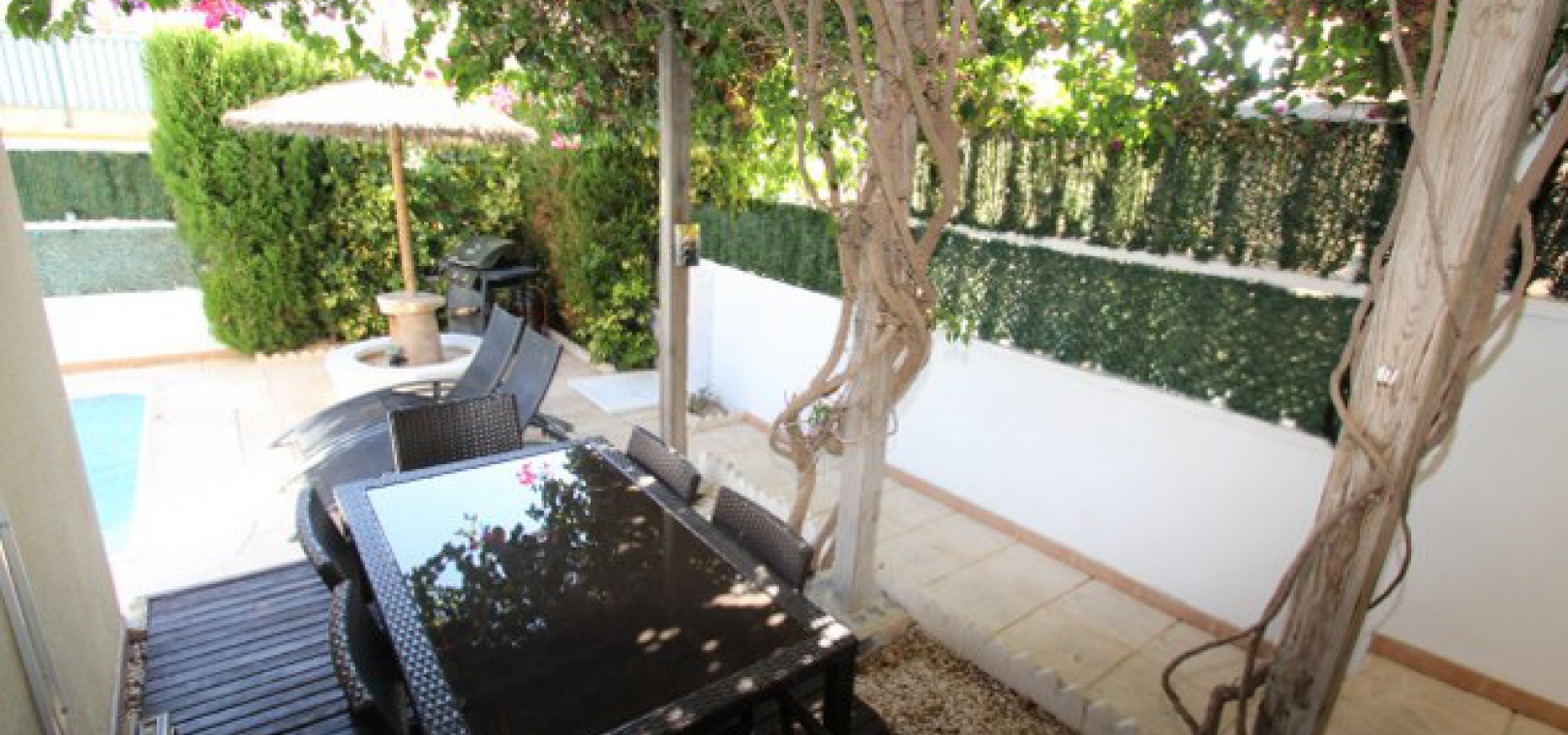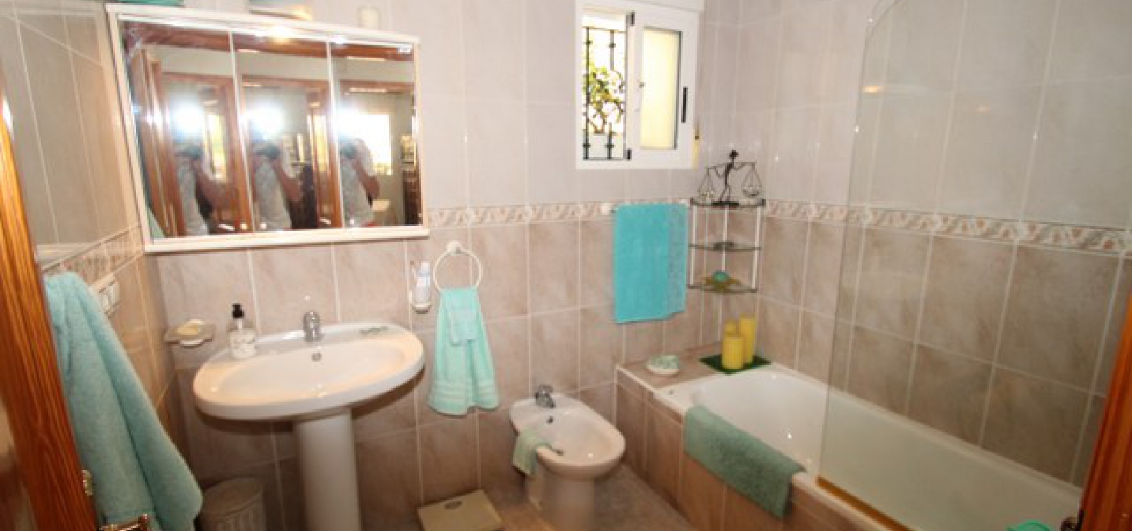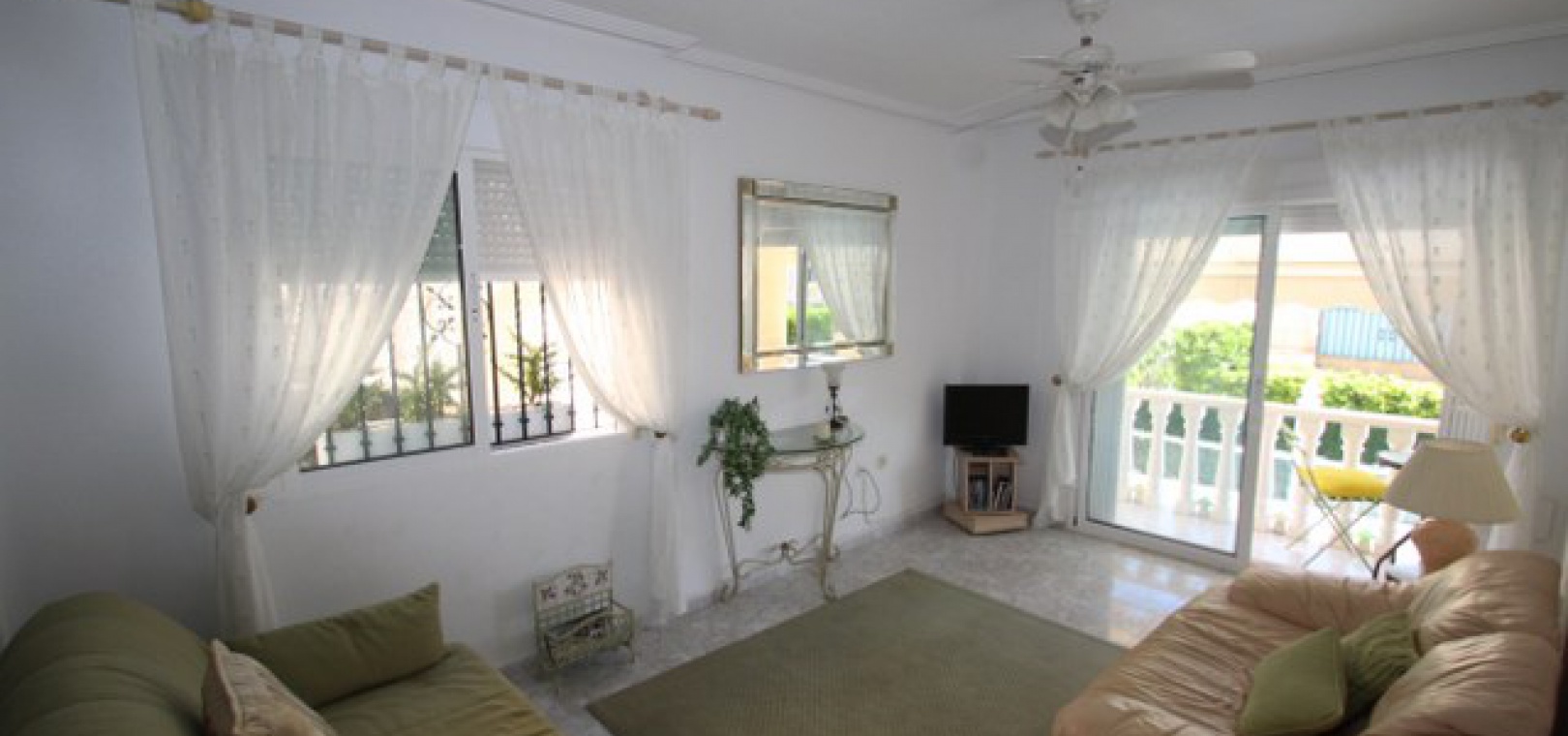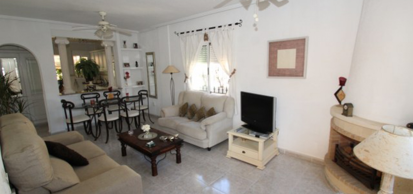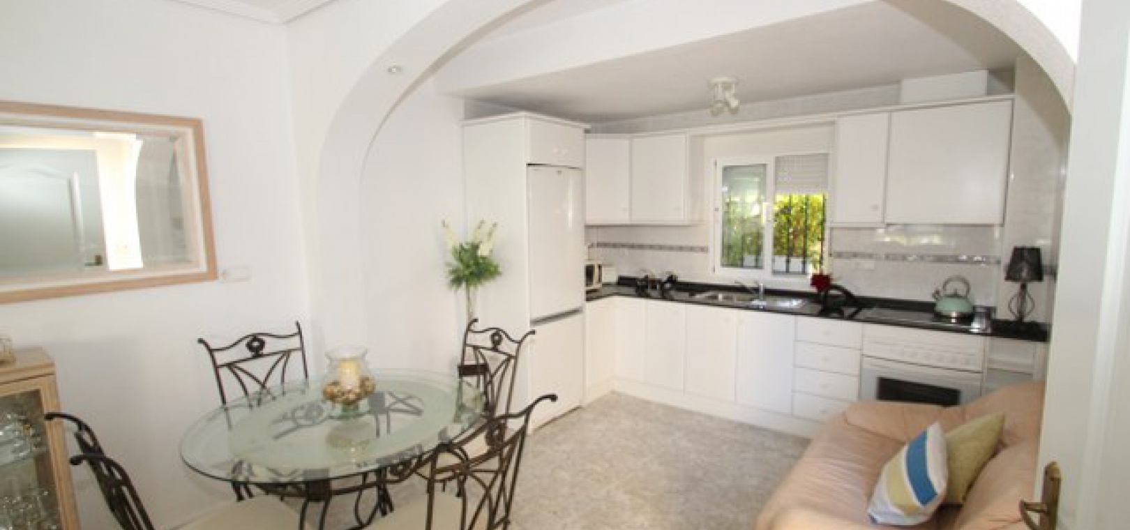 En villa i söderläge med 3 sovrum och 3 badrum med privat pool i Monte Golf, Villamartin, Costa Blanca. Denna härliga fastighet säljs i gott skick, säljs möblerad och består mycket kort av följande:- På bottenvåningen finns en underbyggnad med vardagsrum/matrum med 2 x takfläktar, öppet kök, 1 x sovrum med inbyggda garderober, varm och kall A/C & en takfläkt & 1 x duschrum. Byggnaden har sin egen privata åtkomst, vilket gör den idealisk för gäster eller uthyrningsmöjligheter. På första våningen finns ett vardagsrum/matrum med 2 x takfläktar och en brännare, separat kök, separat tvättstuga, 2 x dubbelrum med inbyggda garderober och takfläktar, det stora sovrummet har ett eget duschrum och 1 x gästbadrum. Utanför finns en täckt terrass på första våningen, bakre terrassen utanför köket med trappor upp till ett privat takterrass, en stor trädgård med en liten privat pool och mycket mer. Denna fastighet har tillgång till den härliga gemensamma poolen som ligger en kort promenad från fastigheten. Den här fastigheten ligger bara en kort promenad till alla bekvämligheter, 5 minuter med bil till La Zenia -stranden eller så kan du hoppa på lokalbussen, mindre än 5 minuter med bil till 4 golfbanor. 50 minuter till Alicante flygplats.