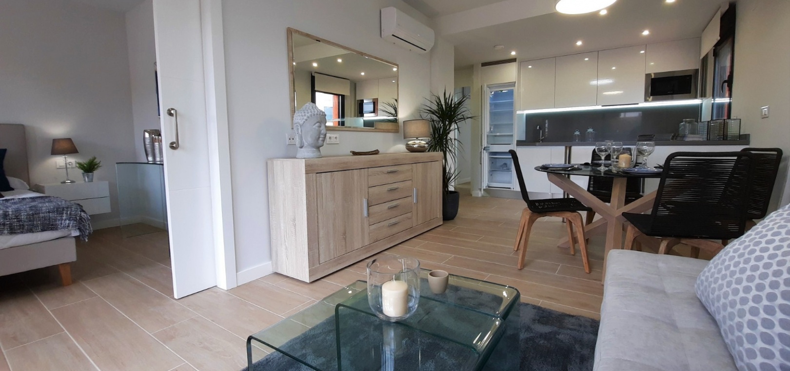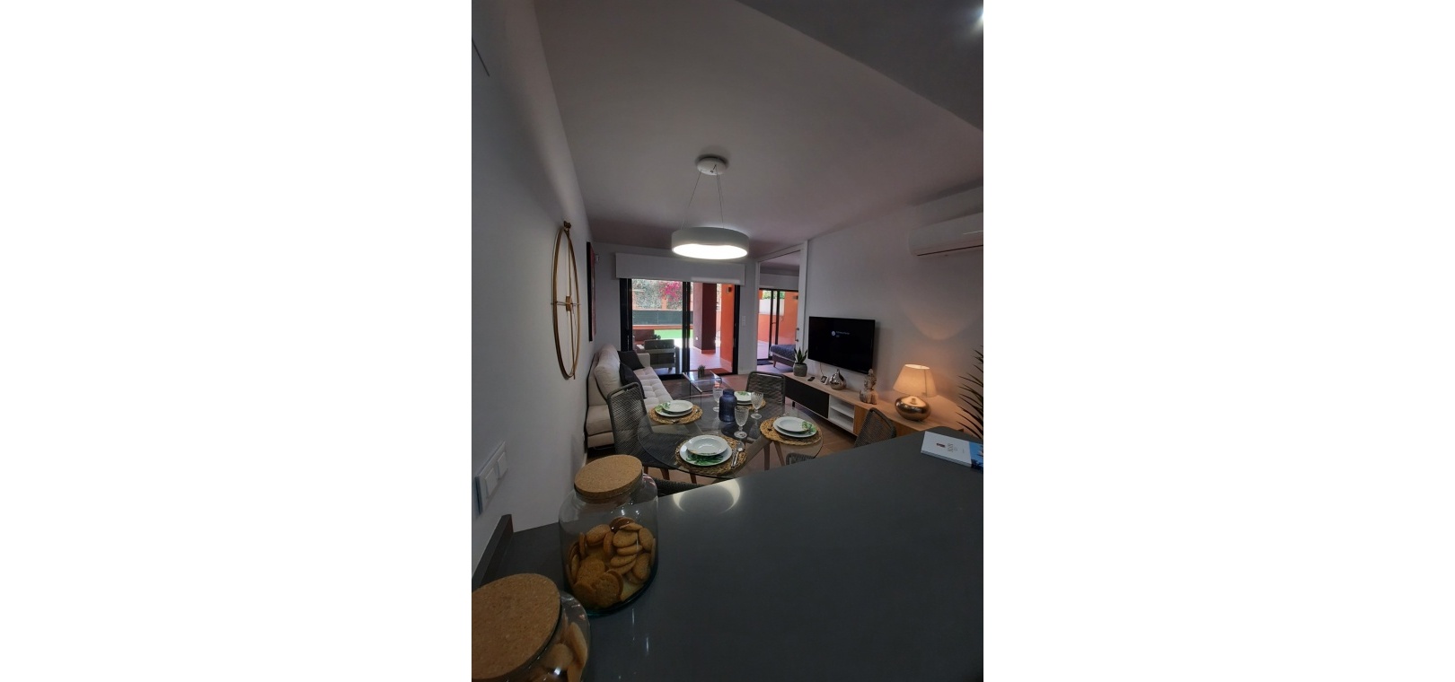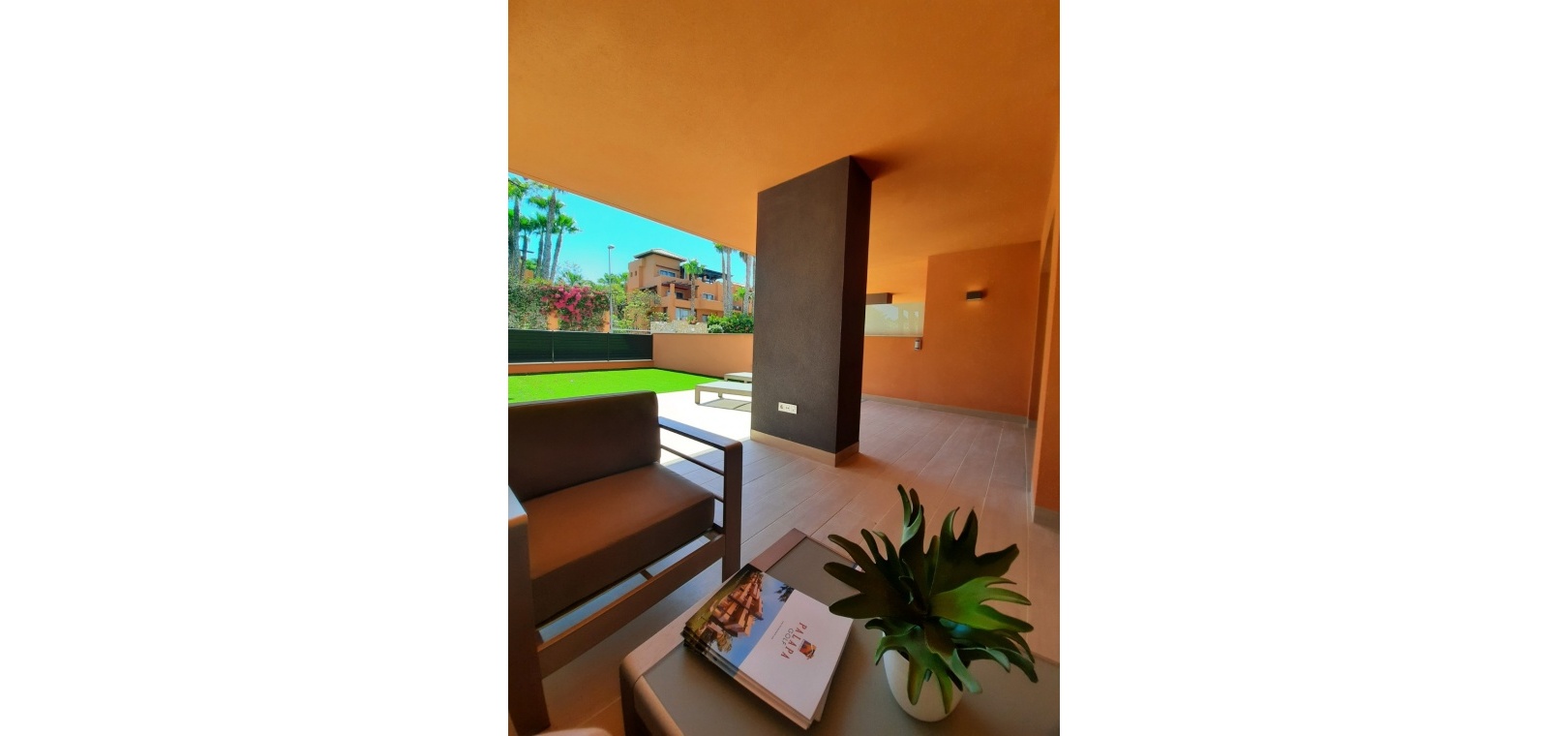 Stort vardagsrum / matsal, kök i öppen planlösning, 2 x dubbelrum, master har ett eget duschrum, 1 x gästduschrum, täckt terrass på framsidan, 300m2 trädgård med en uppfart för terrängparkering, byggmaterial av högsta kvalitet, gemensam pool & trädgårdar, underjordisk parkeringsplats, förinstallerad varm och kall A/C och mycket mer.